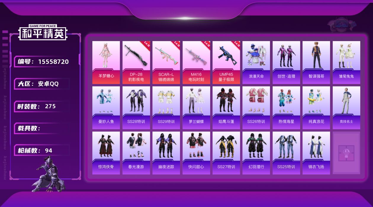 【303000】【不可二次】【安卓QQ】M416-电玩时刻 SCAR-L-锦绣绵绵 龟仙人 UMP45-量子极限 浪漫天命 AKM-奇异狩猎者