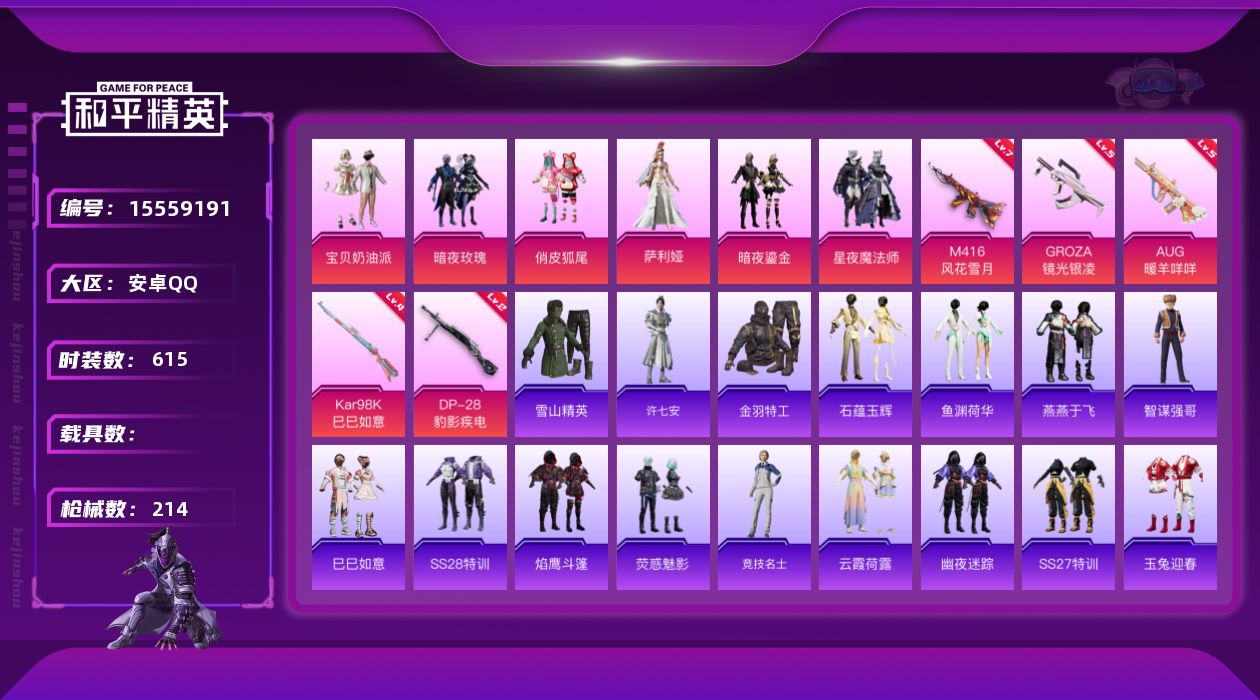 游戏区服:和平精英 / 安卓系统 / QQ账号