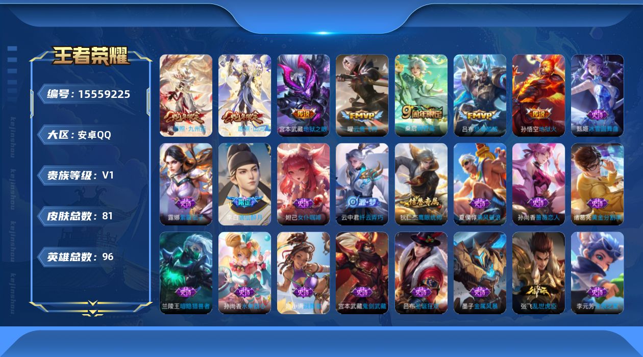 游戏区服:王者荣耀 / 安卓系统 / QQ账号