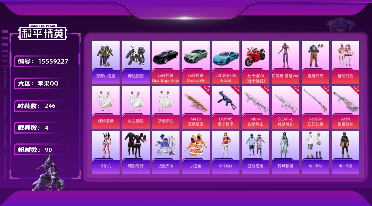 【303082】【可二次】【苹果QQ】M416-至情至圣 UMP45-量子极限 怪诞乔克 萌兔起飞 深海小丑鱼 SCAR-L-纯梦嫁纱 馨动时刻 迈凯伦570S 天际蓝 浪漫天命 暗影哥特 纯梦嫁纱飞行翼 胖达团团
