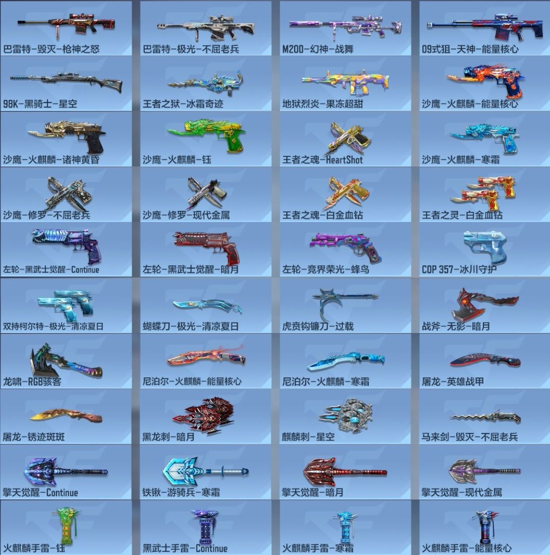 【303232】[15560164]x1226 VIP8,王者武器9,英雄级武器195,万化400,角色47 【王者武器】:王者之怒/王者之蝶/王者之影/王者之翼/王者之魄-冠军珍藏/M12S-雷霆王者/王者之魂/王者之心/王者之狱 ;【热门皮肤】:AK47-沙漠领主-邪神/巴雷特-毁灭-暗月/战斧-无影-暗月/沙鹰-火麒麟-诸神黄昏/火麒麟烟雾弹-寒霜/黑武士烟雾弹-Continue/地狱烈炎