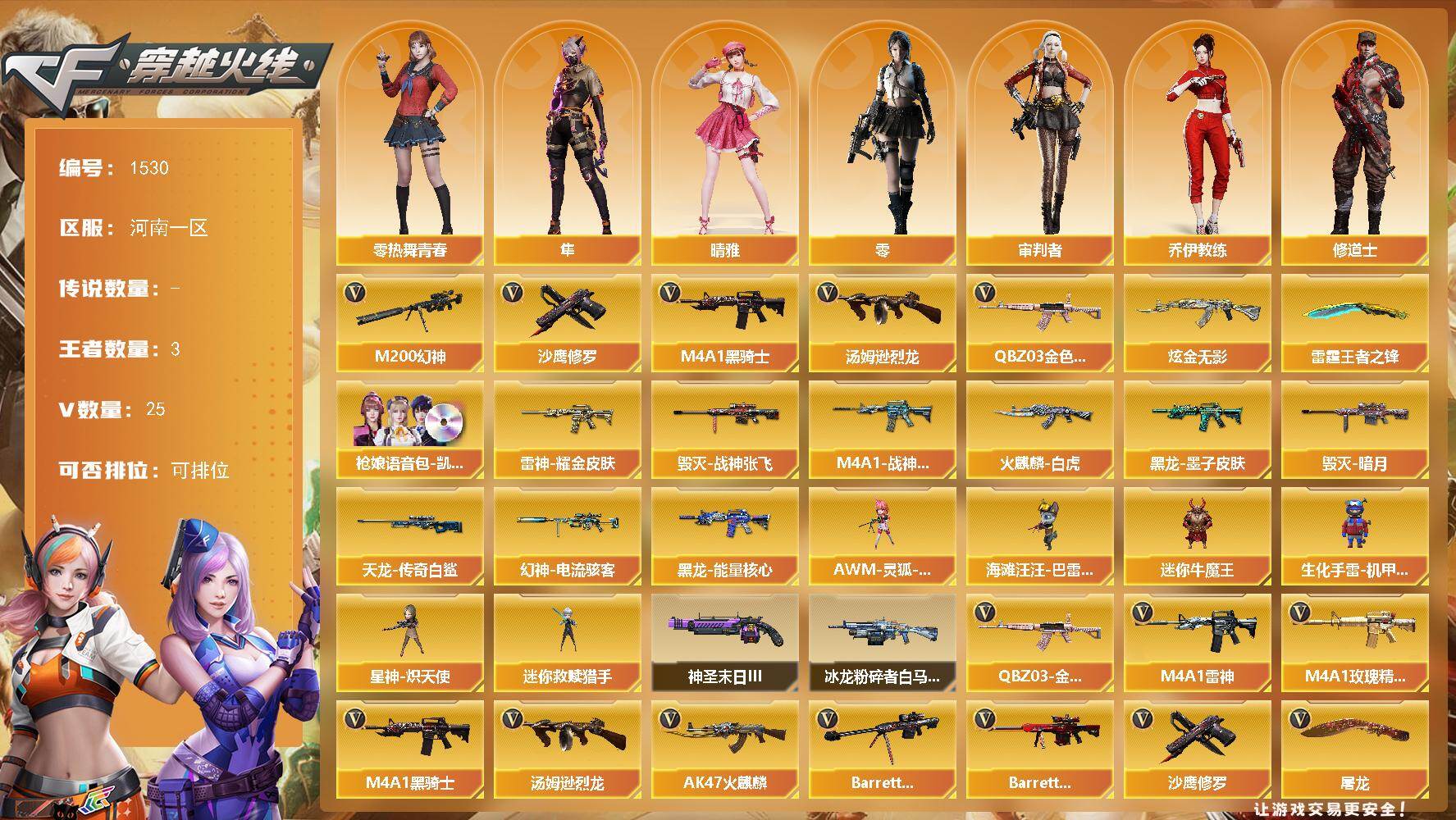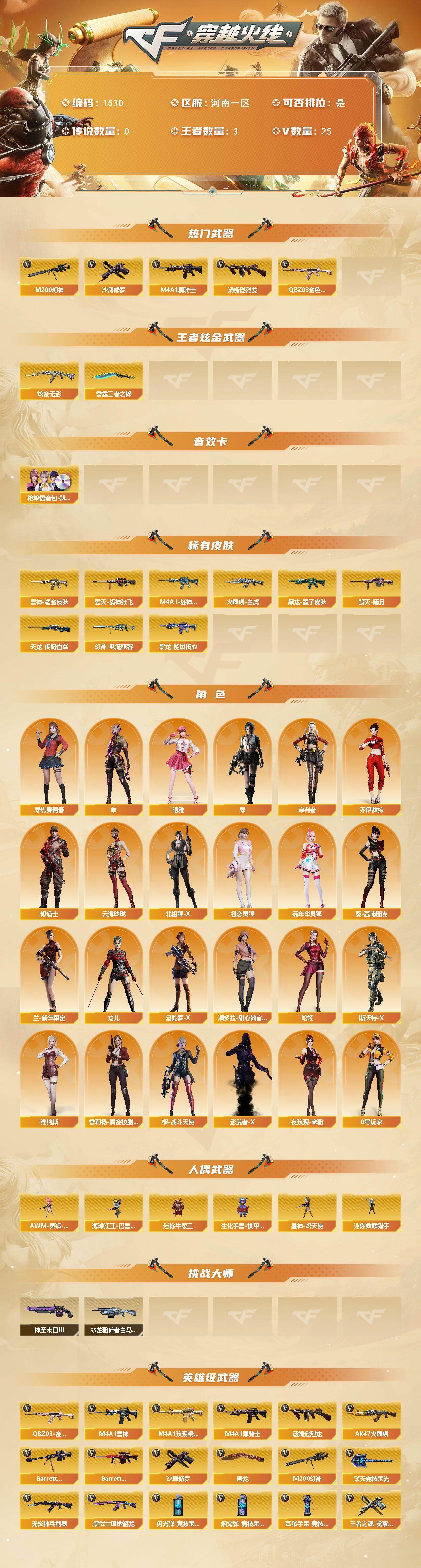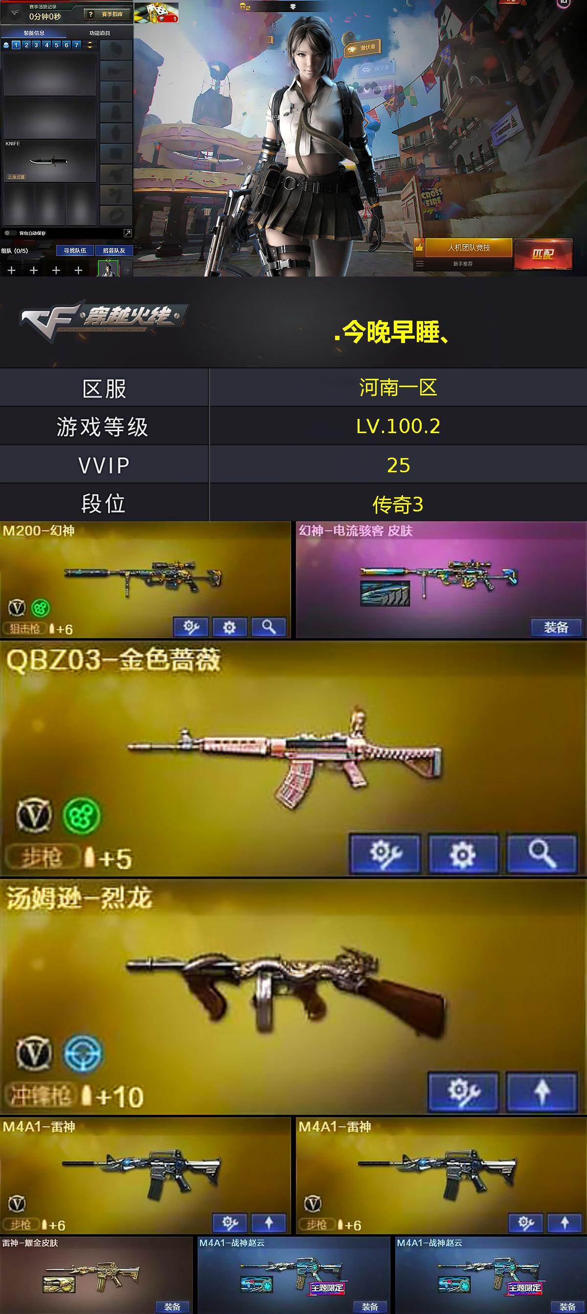 【303389】【303389】[15560967]河南一区-25V-3王者-1炫金【热门武器】:QBZ03-金色蔷薇,M200-幻神,M4A1-黑骑士,汤姆