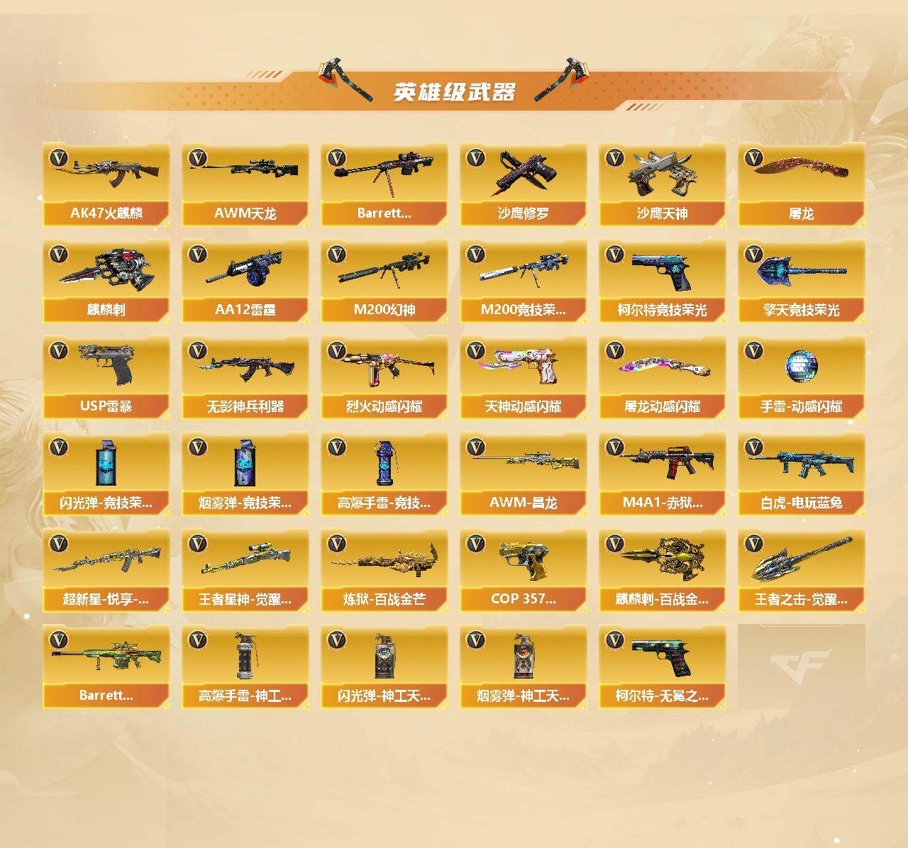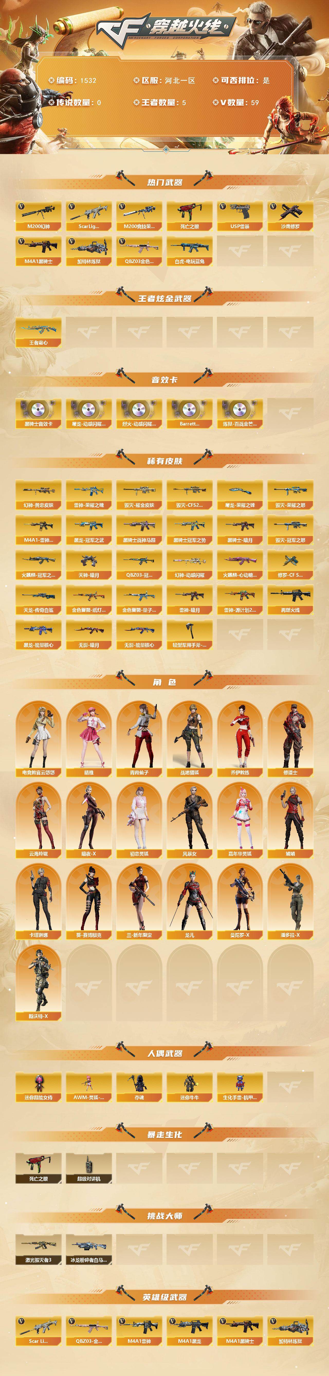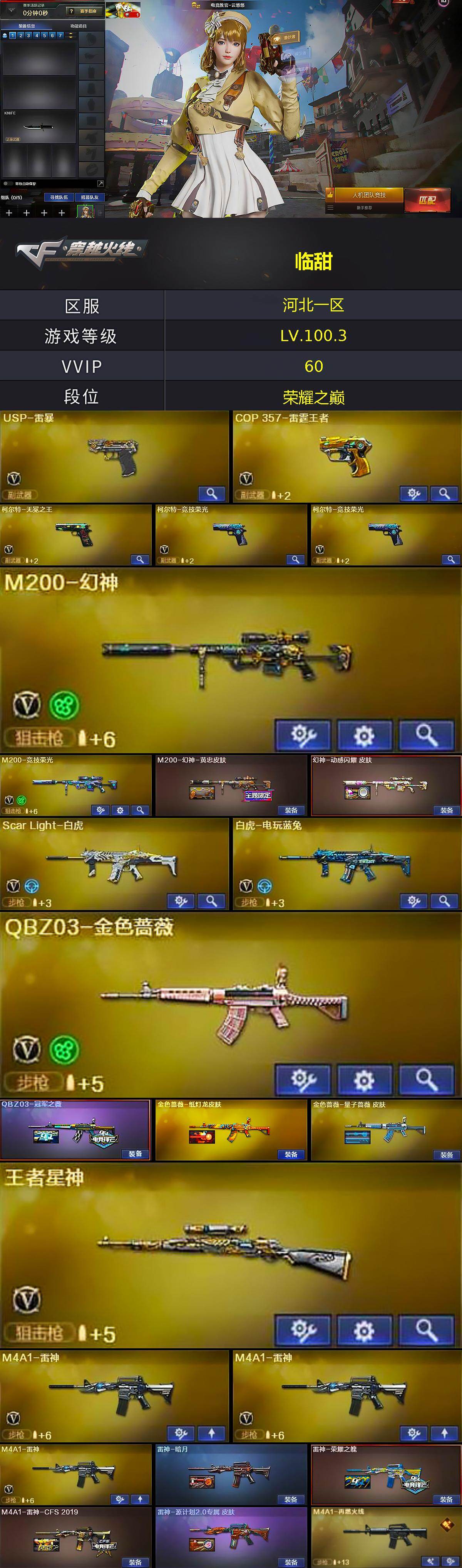 【303410】【303410】[15561153]河北一区-59V-5王者-0炫金【热门武器】:QBZ03-金色蔷薇,Scar Light-白虎,M200-