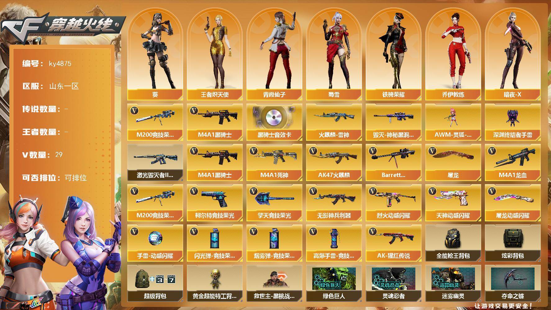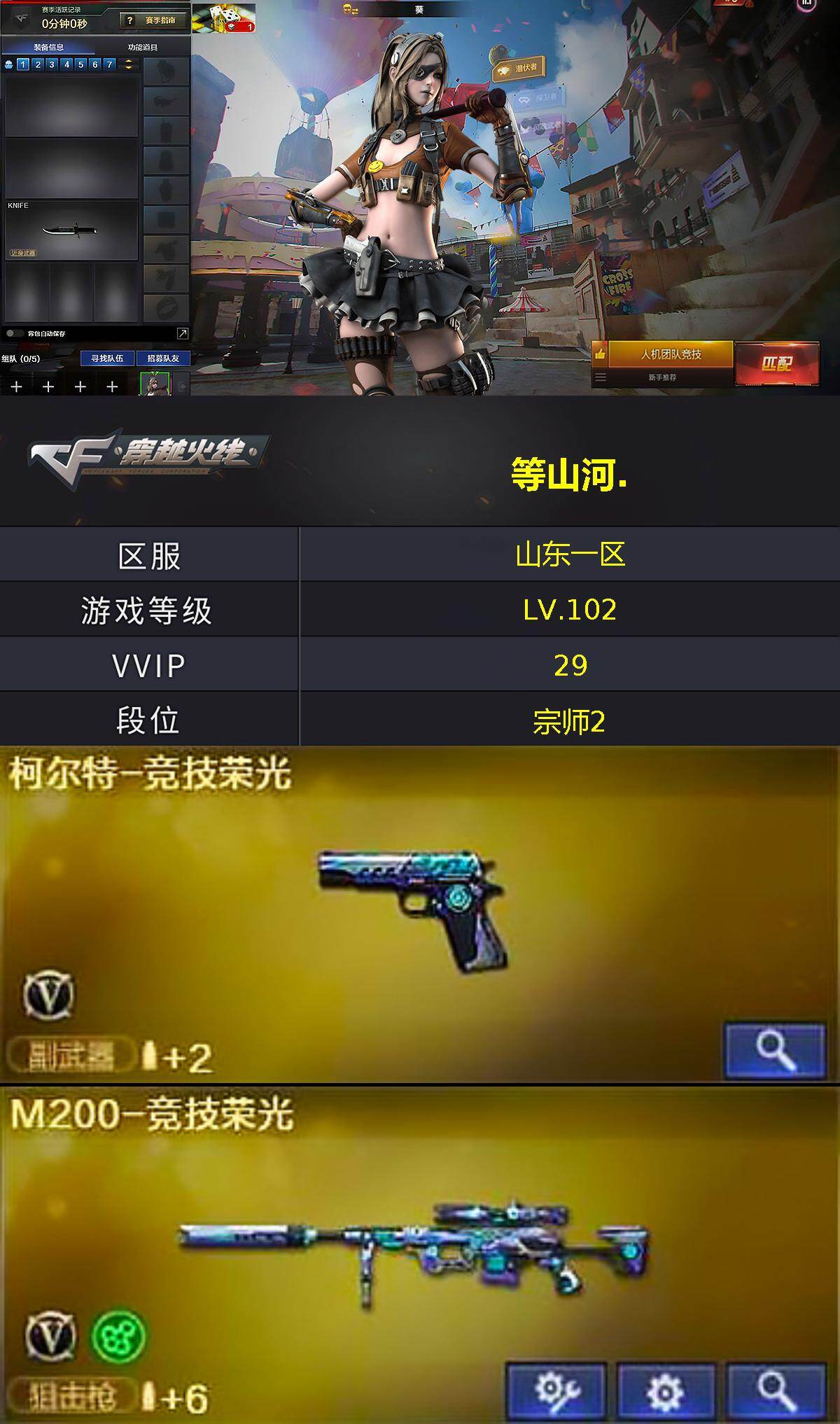 【303461】【303461】山东一区-29V-0王者-0炫金【热门武器】:M200-竞技荣光,M4A1-黑骑士【音效卡】:M4A1-黑骑士音效卡【皮肤】: