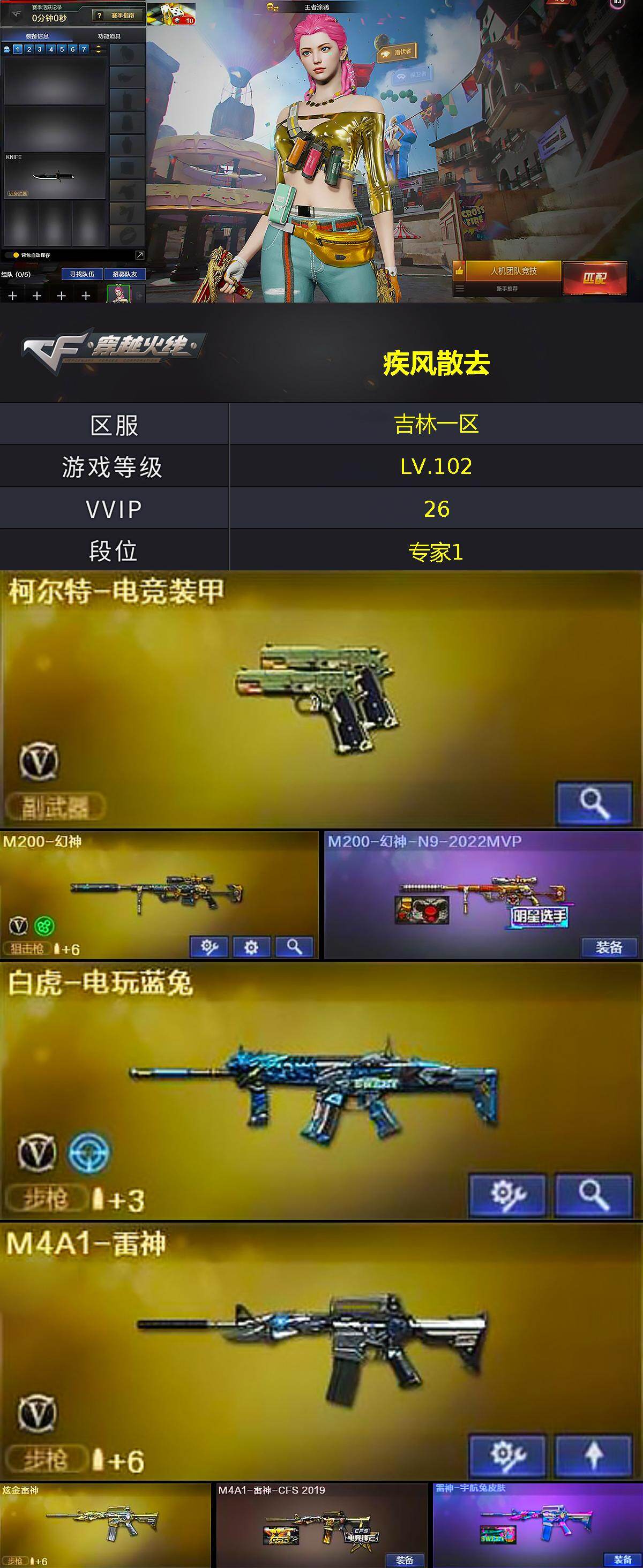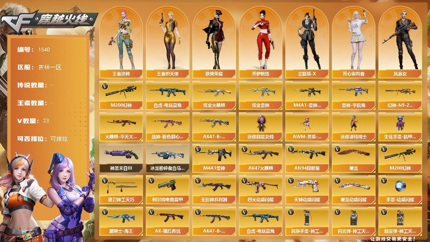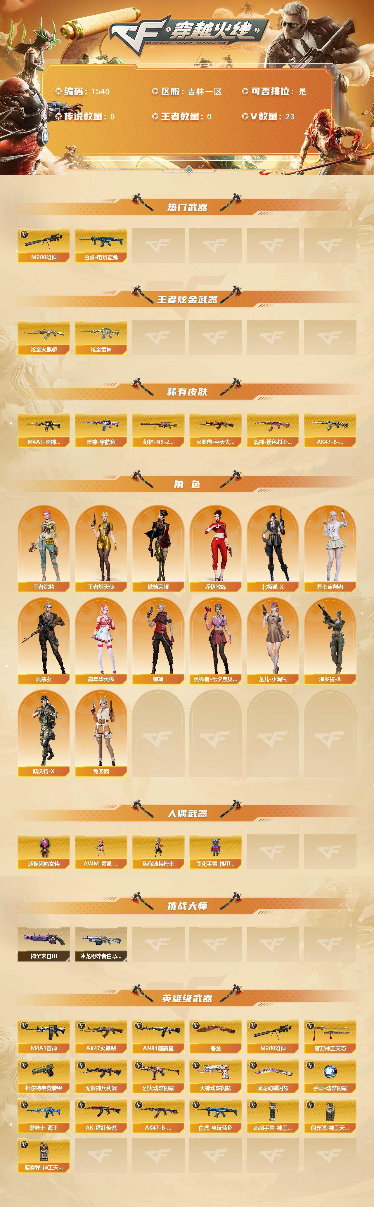 【303630】【303630】[15562543]吉林一区-23V-0王者-2炫金【热门武器】:M200-幻神,白虎-电玩蓝兔【王者炫金武器】:炫金火麒麟,
