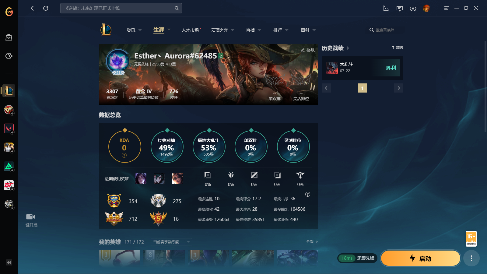 游戏区服:英雄联盟 / 网通 / 无畏先锋