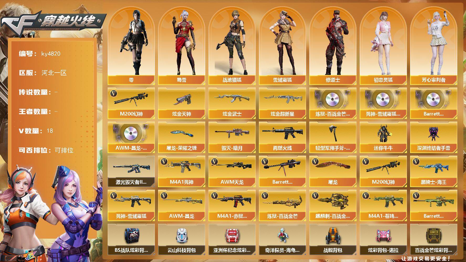 【304381】【304381】[15566319]河北一区-18V-0王者-3炫金【热门武器】:M200-幻神【王者炫金武器】:炫金武士,炫金超新星,炫金天