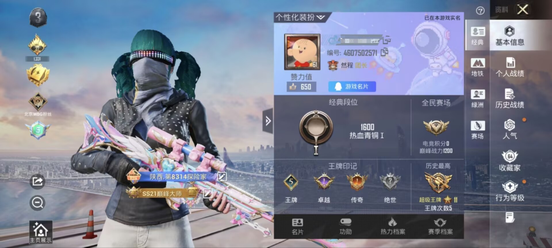 游戏区服:和平精英 / 安卓系统 / QQ账号