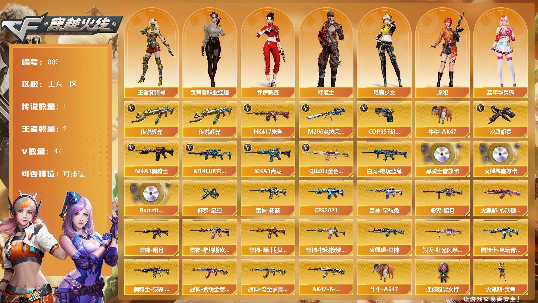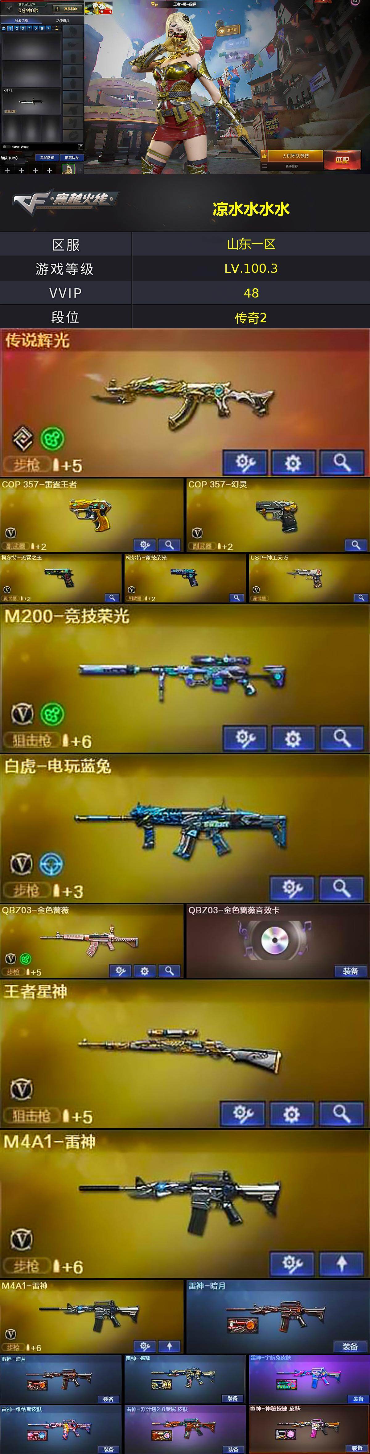 【305274】【305274】[15570436]山东一区-47V-2王者-0炫金【传说武器】:传说辉光【热门武器】:传说辉光,QBZ03-金色蔷薇,M14