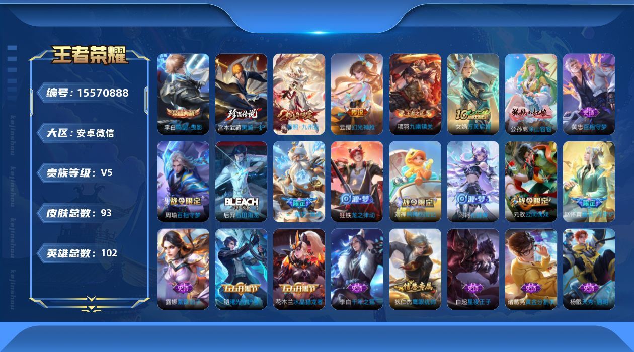 【305362】【可二次】【微信(安卓)】乱世虎臣 鹰眼统帅 水晶猎龙者 白执事 圣诞恋歌 星夜王子 街头霸王 命运角斗场 紫霞仙子 御霄 朔风刀 死亡骑士 龙腾万里 缤纷独角兽 万事如意 茶境仙 异域舞娘 三太子 御銮 孤猎 疑决卦 逆浪荇歌 丁香结 赵云 阴阳师 忍·炎影 谧流熔炉 星航指挥官 兔女郎 破局者 海滩派对 第七人偶 御旌 弈星混沌棋 不知火舞 海军大将 皇家上将 海滩丽影 白色