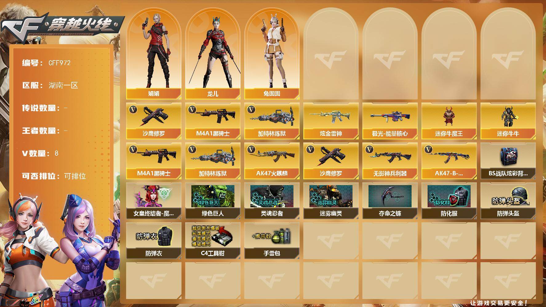 【305835】【305835】【CFF972】8V/79级/将帅/1炫金/M4A1-黑骑士/加特林-炼狱/沙鹰-修罗/炫金雷神/极光-能量核心/娟娟/龙儿/
