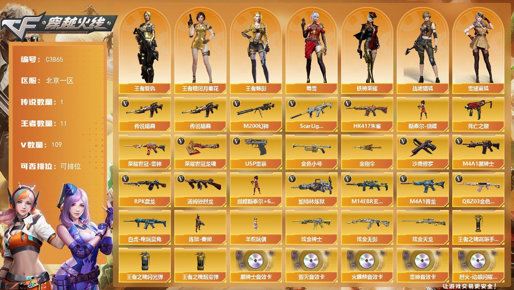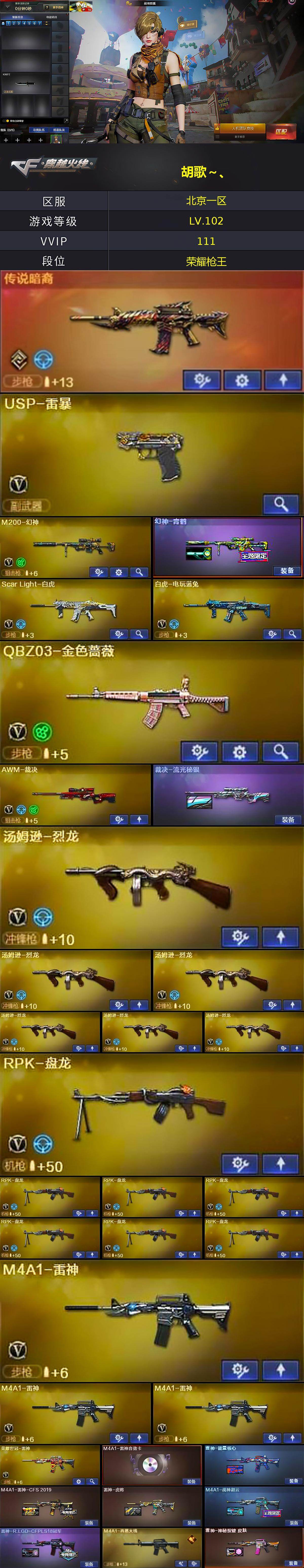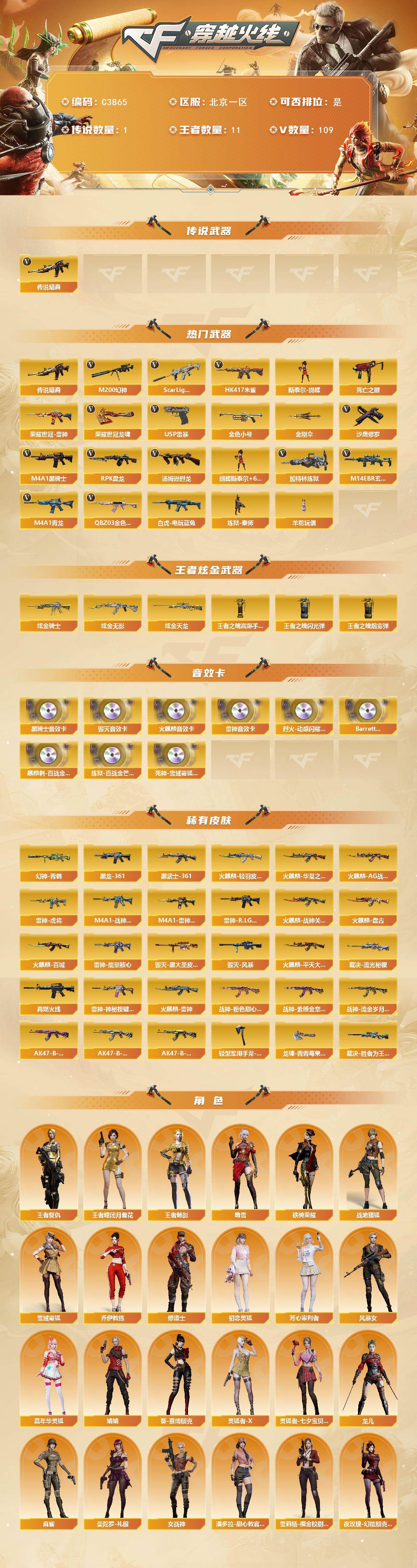 【306081】【306081】【C3865】北京一区-109V-11王者-3炫金【传说武器】:传说暗裔【热门武器】:传说暗裔,QBZ03-金色蔷薇,M14E