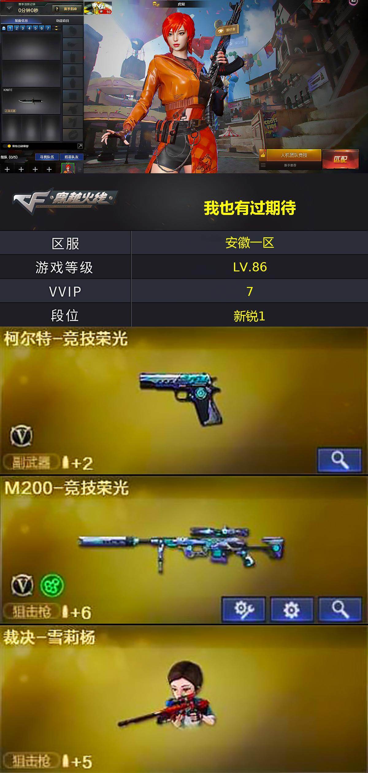 游戏区服:穿越火线 / 东部战区 / 安徽一区互 通