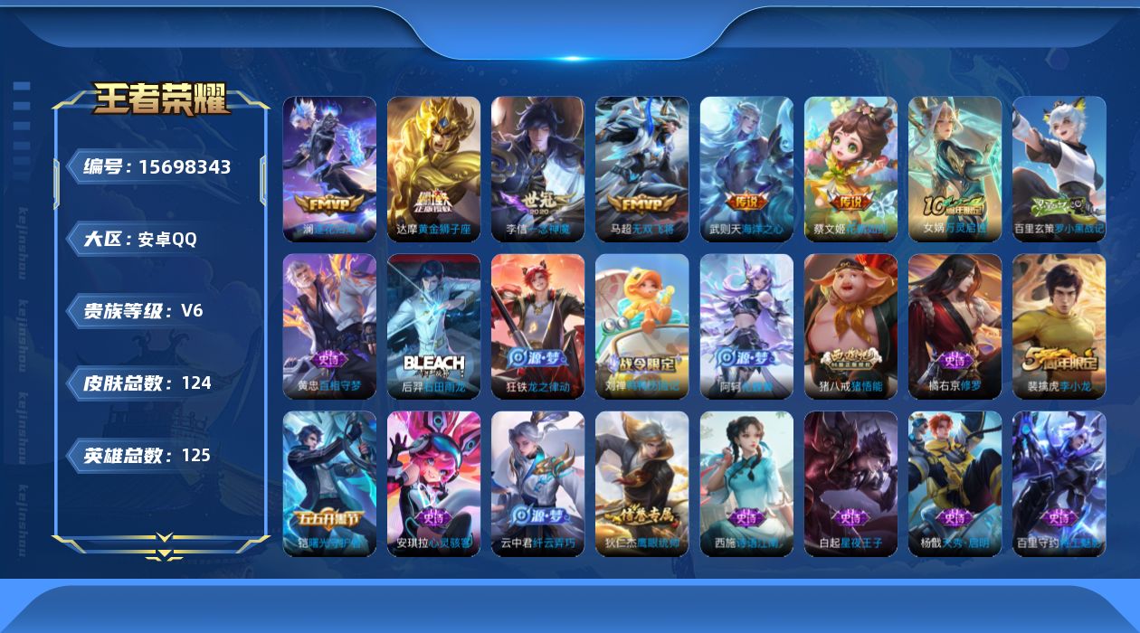 游戏区服:王者荣耀 / 安卓系统 / QQ账号