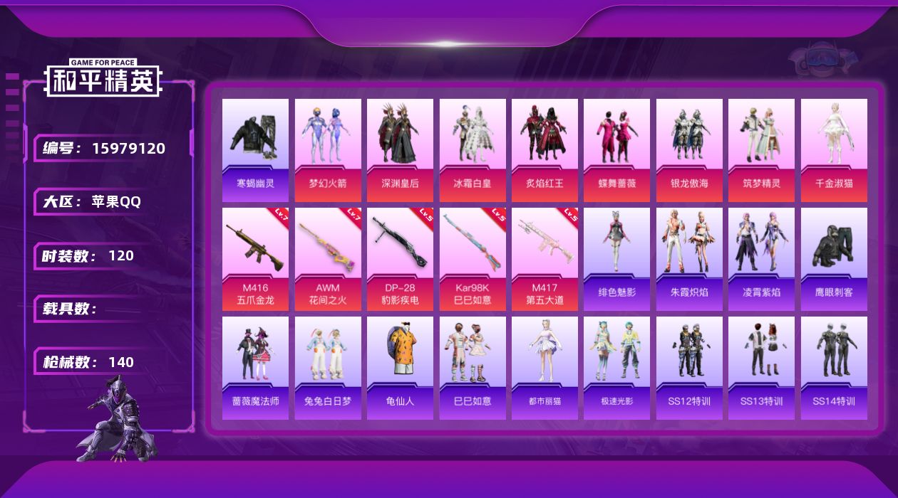 【363968】【可二次】【苹果QQ】银龙傲海 蝶舞蔷薇 梦幻火箭 深渊皇后 M416-五爪金龙 M417射手步枪