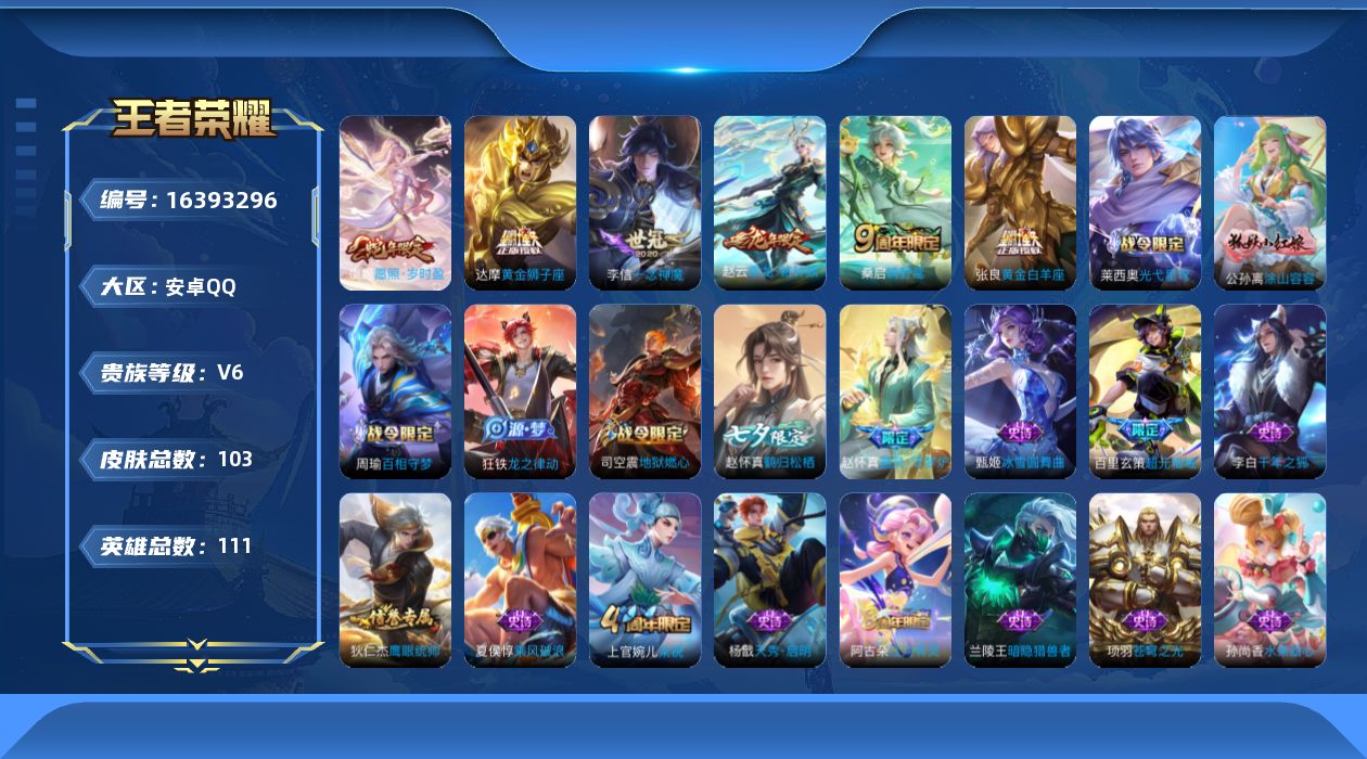 游戏区服:王者荣耀 / 安卓系统 / QQ账号