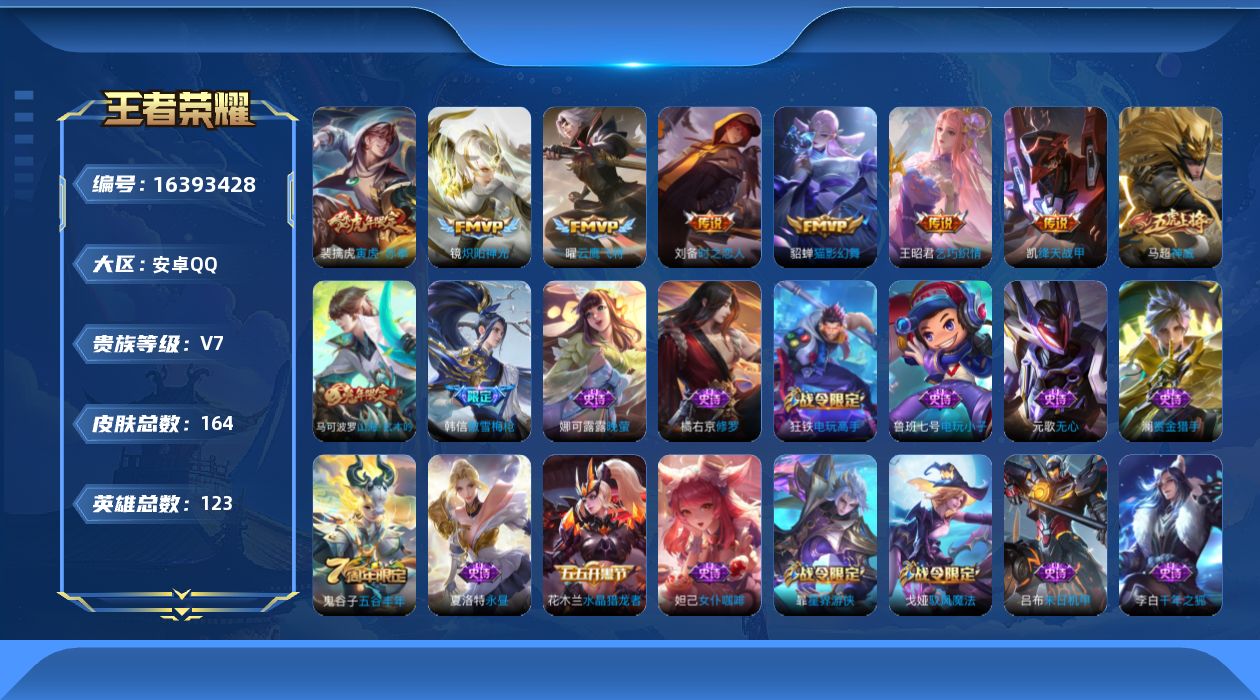游戏区服:王者荣耀 / 安卓系统 / QQ账号