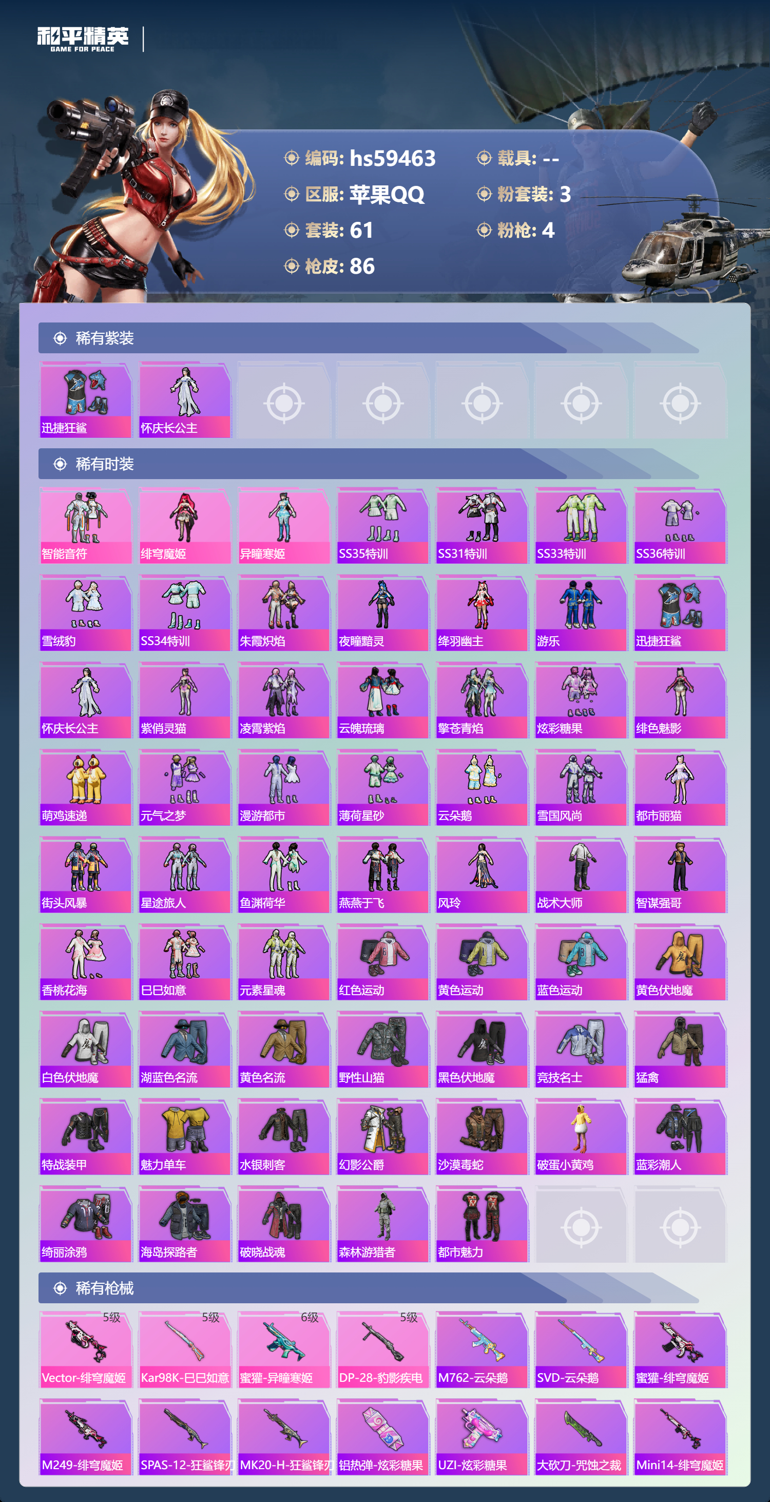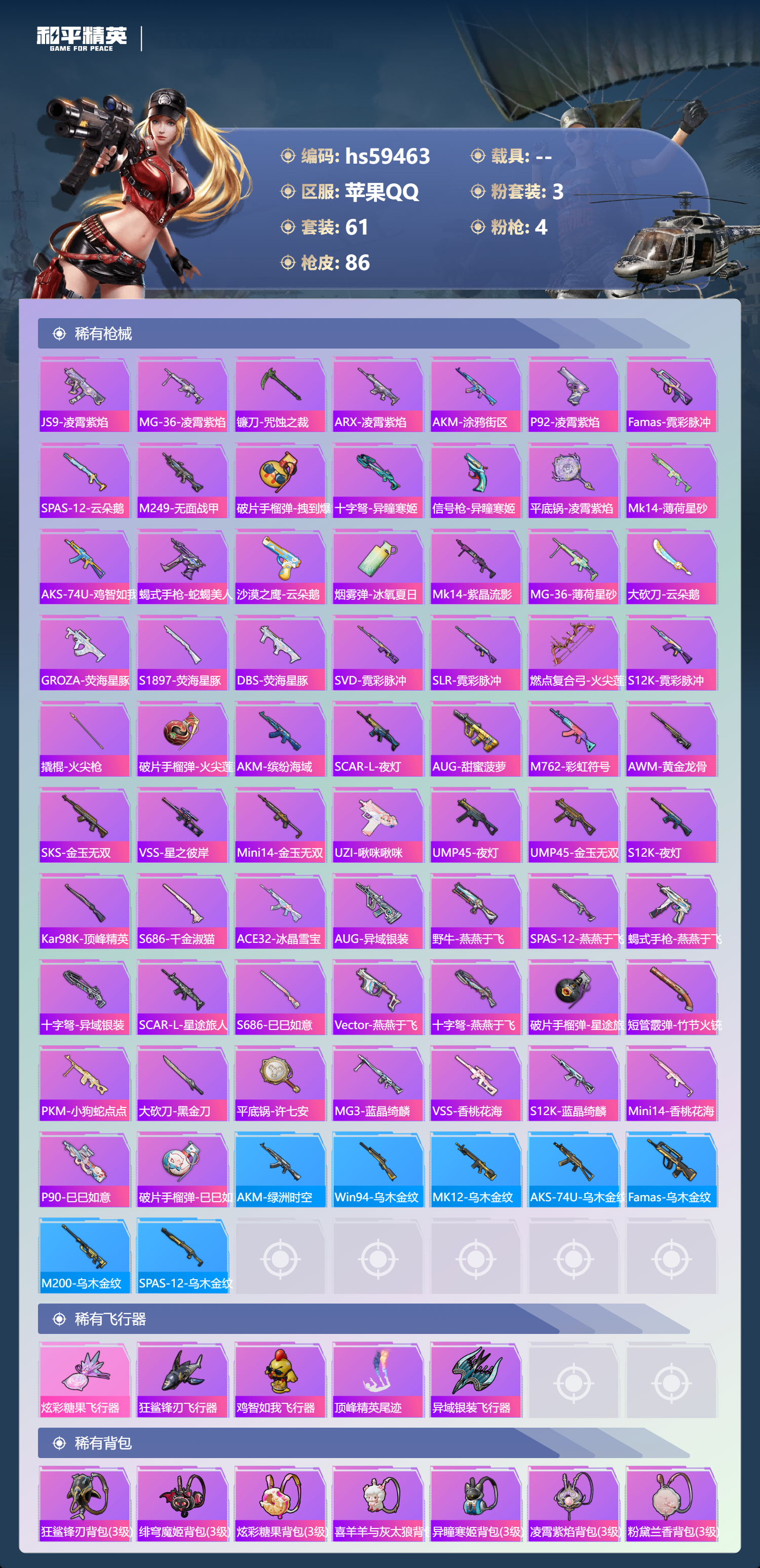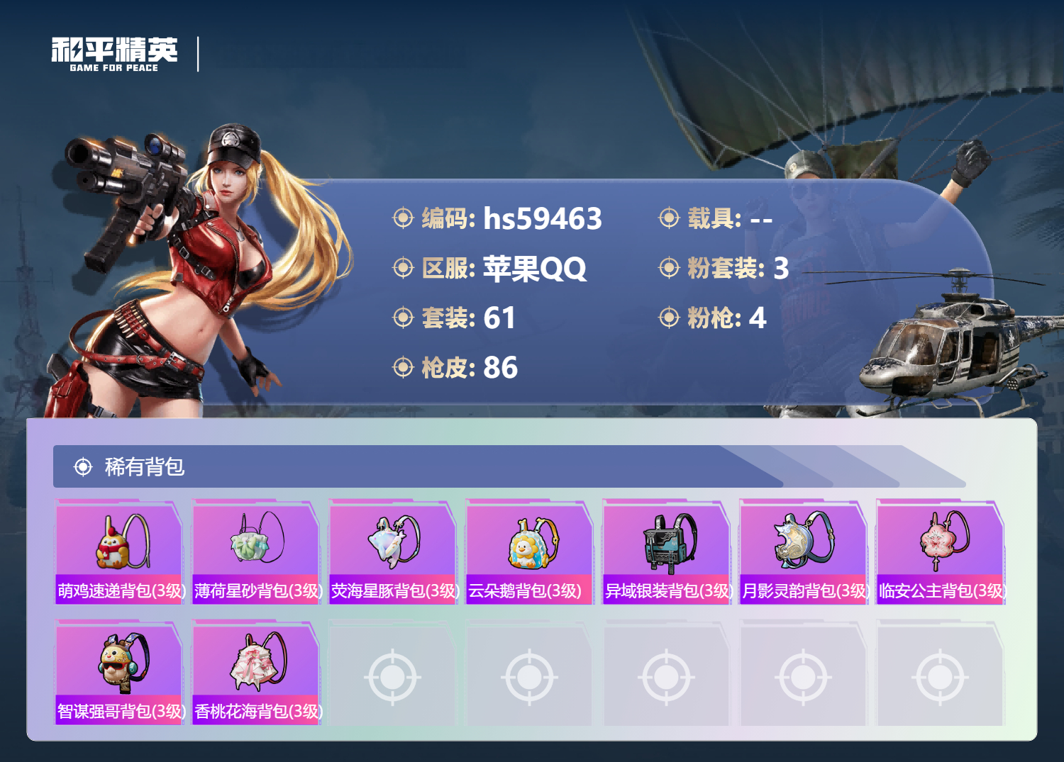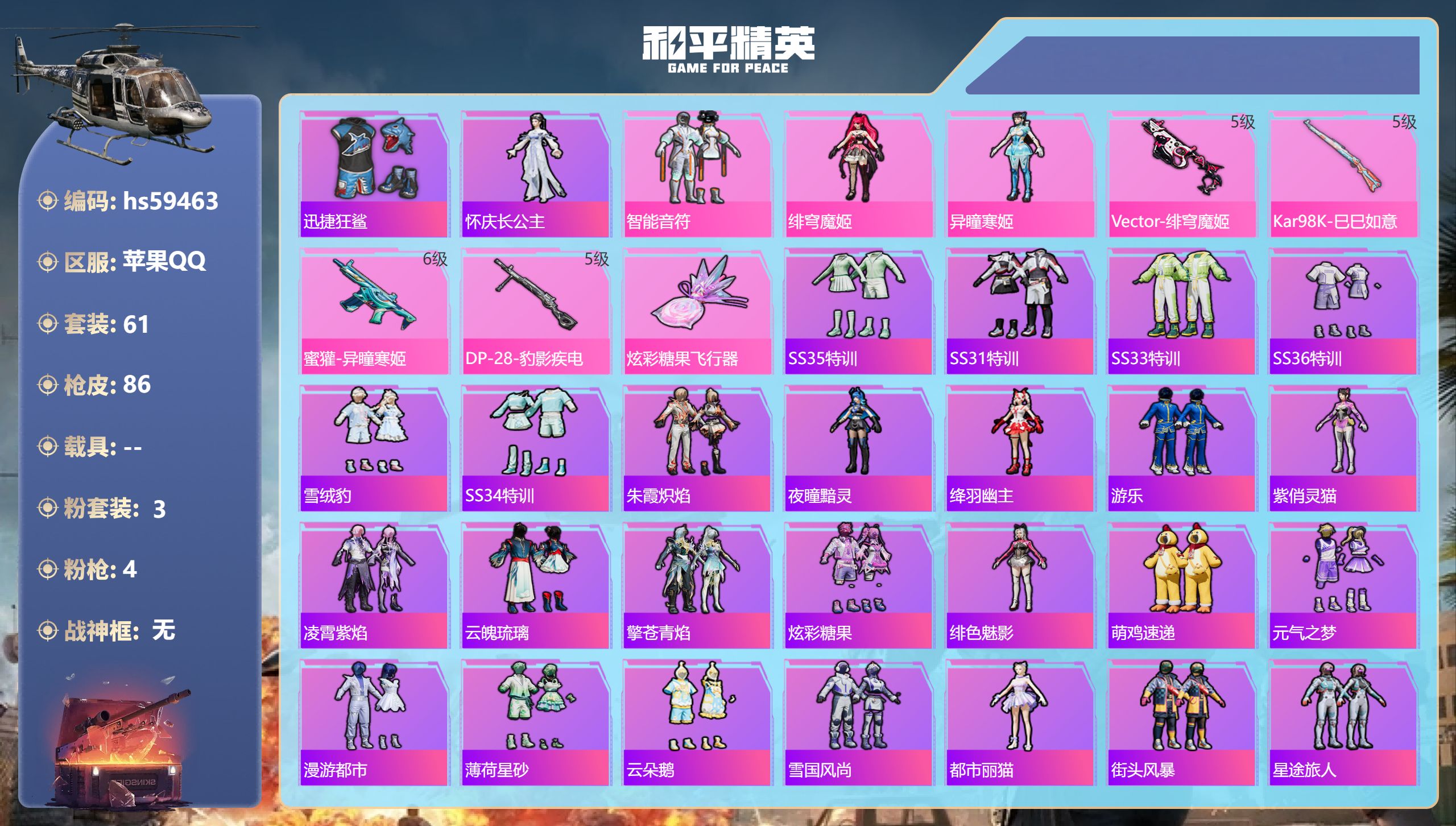 游戏区服:和平精英 / 苹果系统 / QQ帐号