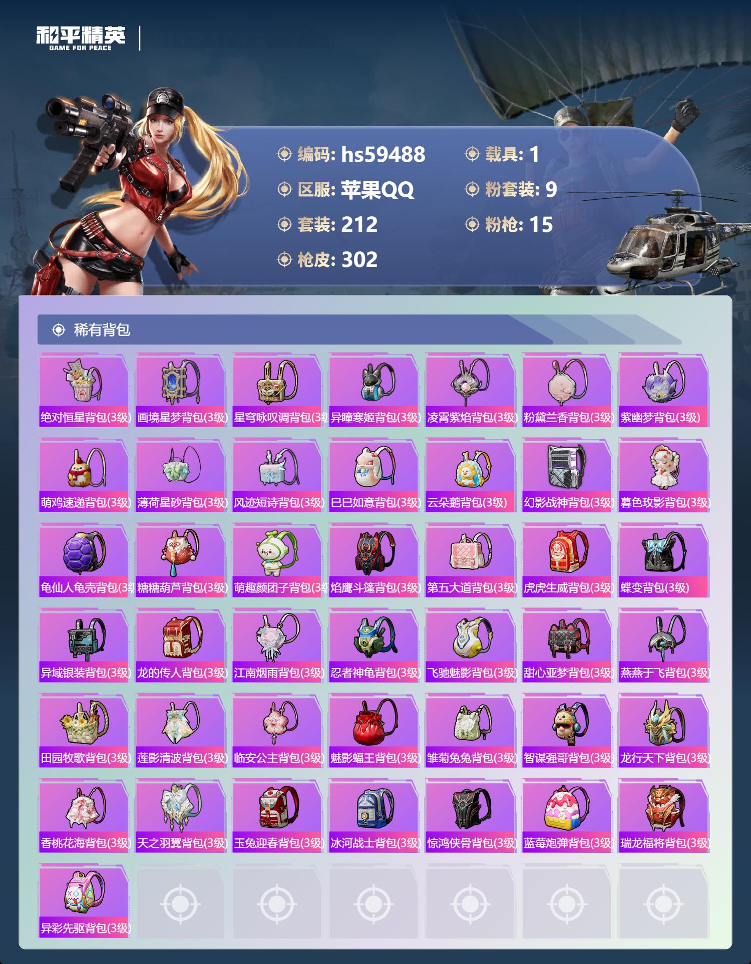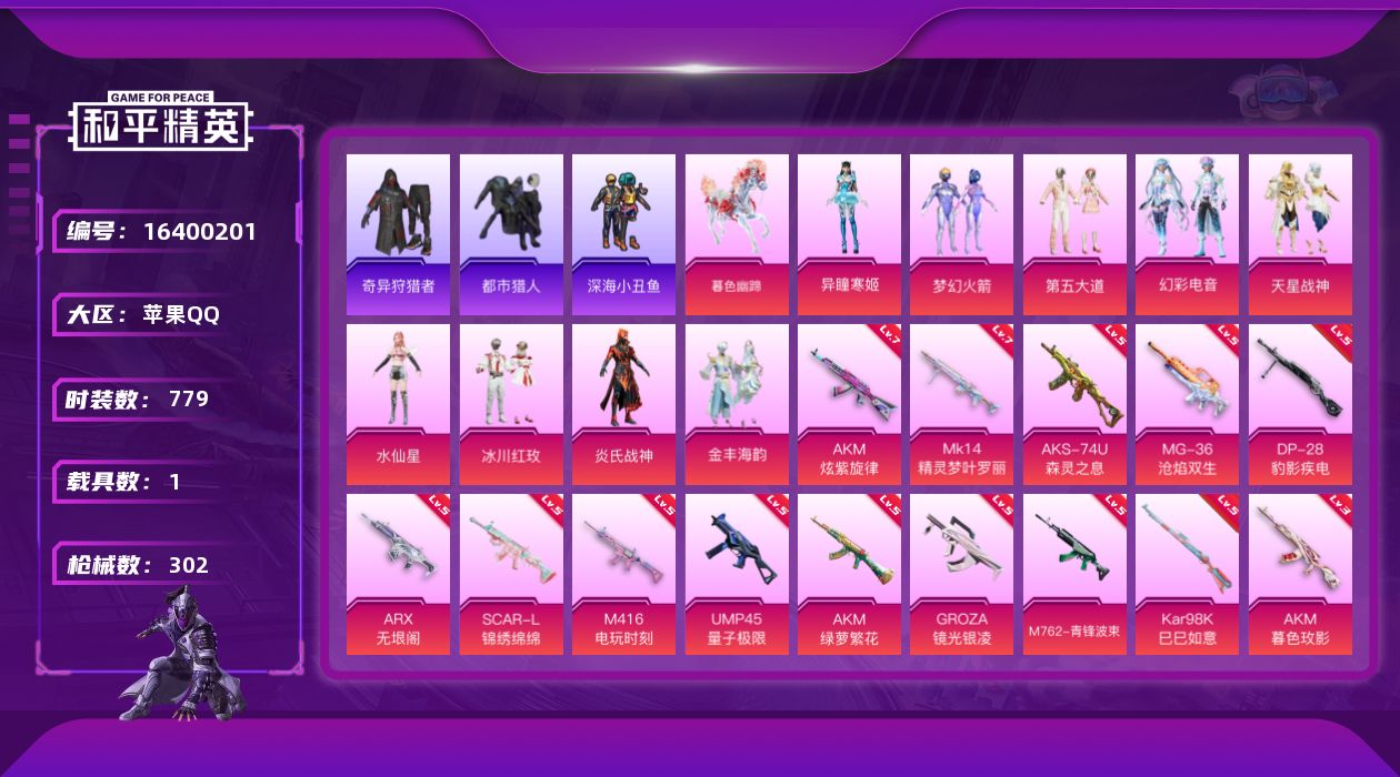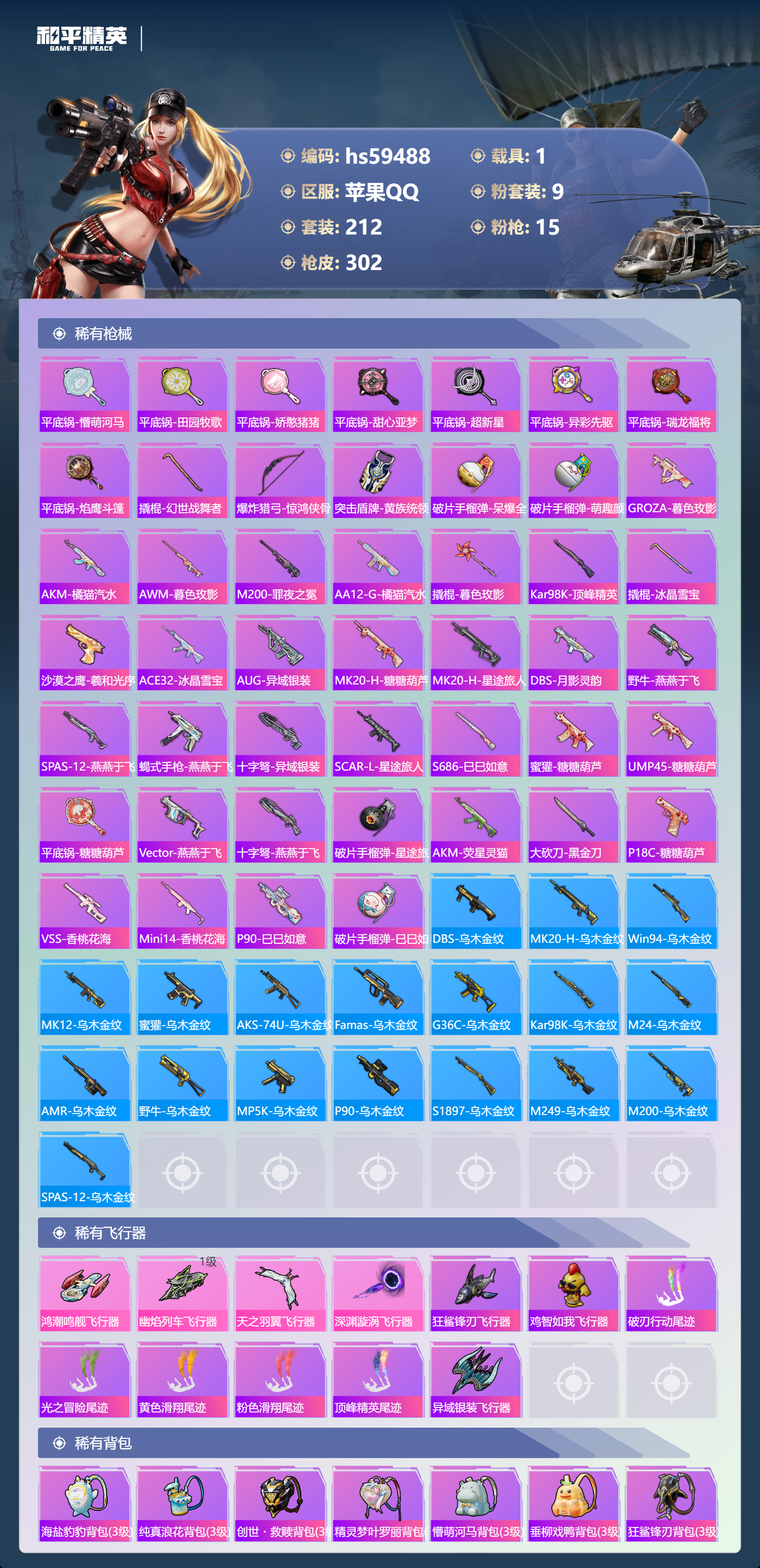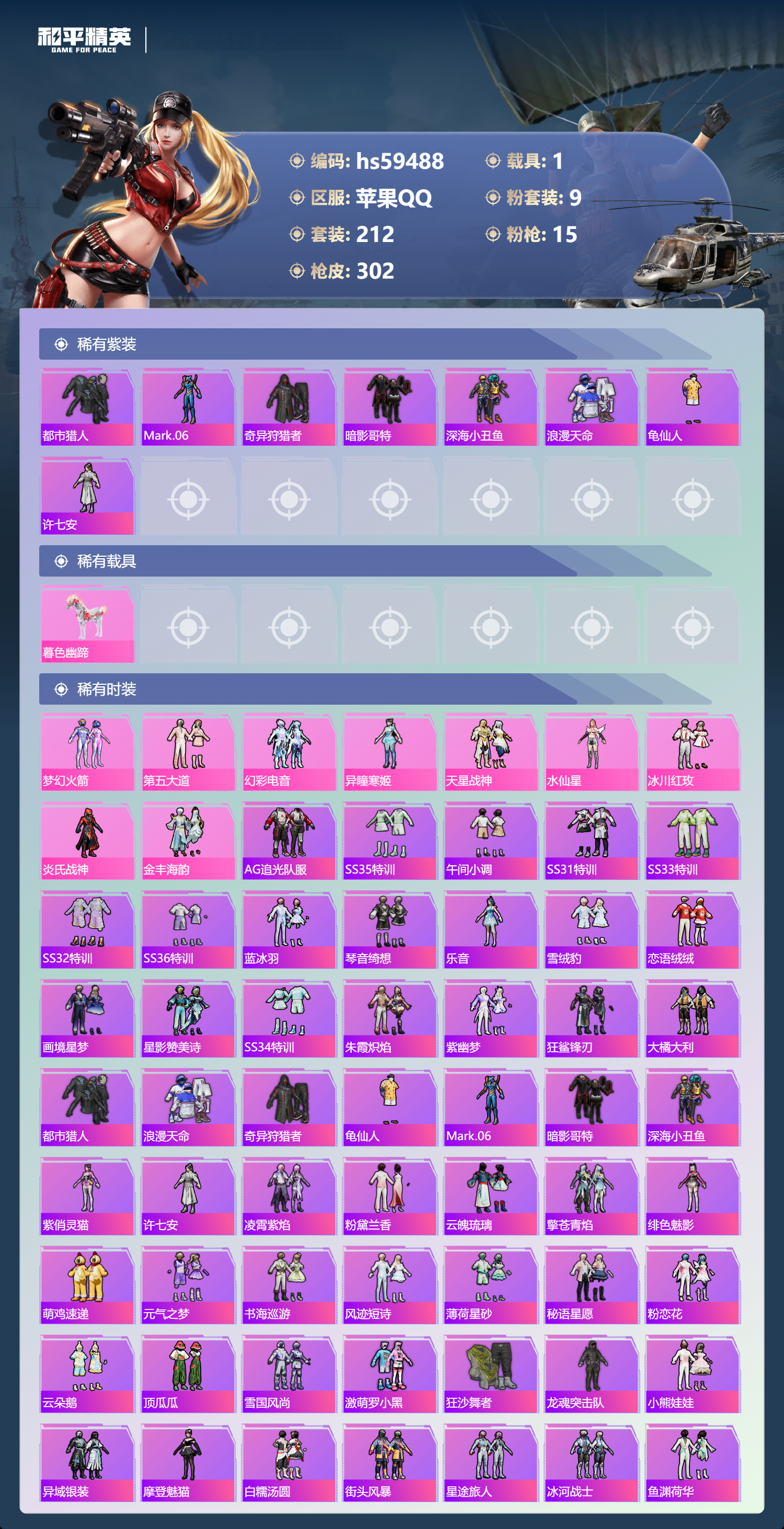 【422632】【不可二次】【苹果QQ】龟仙人 AKM-绿萝繁花 MK14-精灵梦叶罗丽 M762-青锋波束 漫步者 都市猎人 梦起落英 M416-电玩时刻 UMP45-量子极限 深海小丑鱼 瑞龙福将 浪漫天命 激萌罗小黑 团圆交子 奇异狩猎者 M762-瑞龙福将 M417射手步枪 狂沙舞者 SCAR-L-锦绣绵绵 AKM-炫紫旋律 梦幻火箭 粉红小猪 天之羽翼飞行器 M417-第五大道 暗影哥特