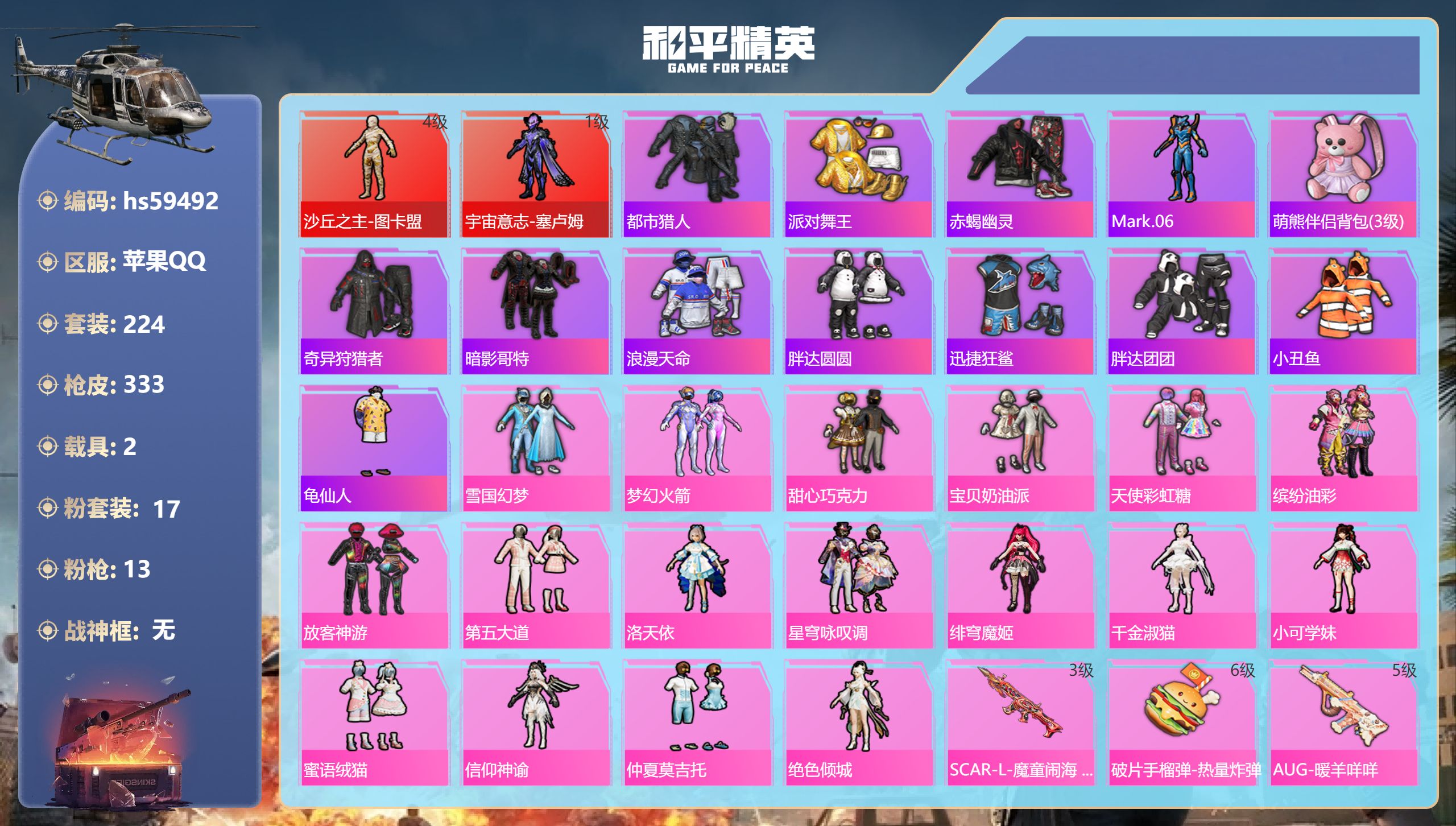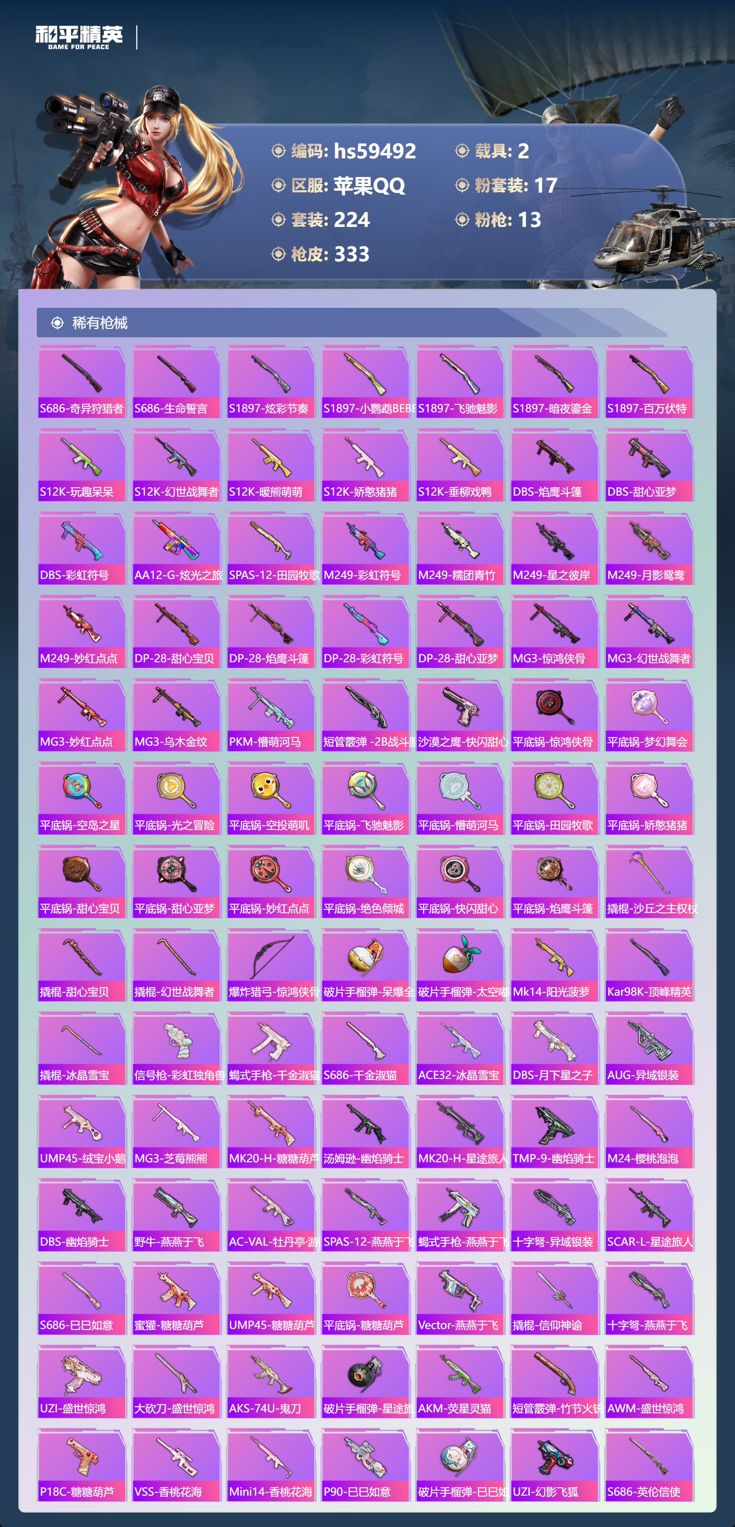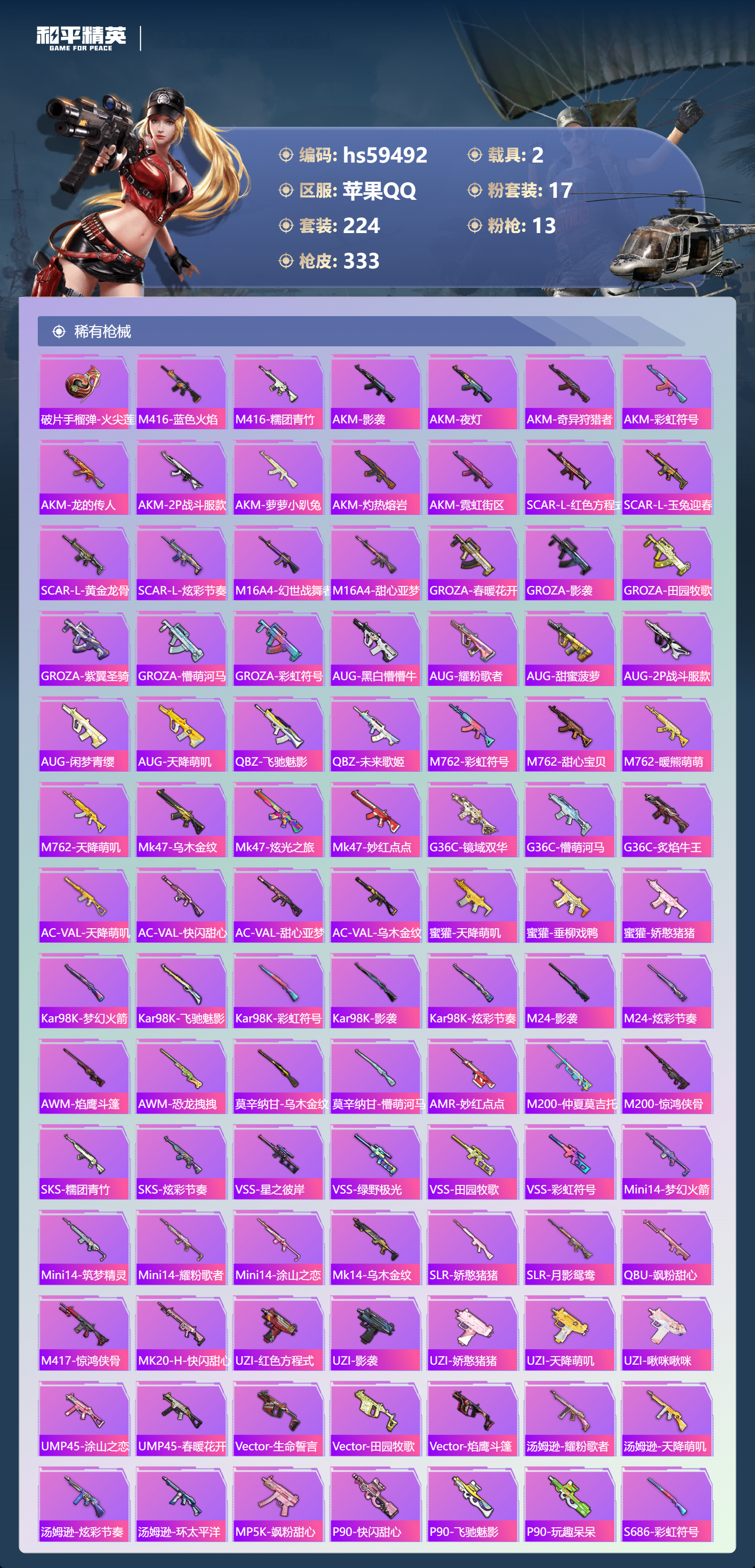 【422644】【可二次】【苹果QQ】龟仙人 S686-奇异狩猎者 雪国梦幻 漫步者 都市猎人 洛天依 宇宙意志-塞卢姆 赤蝎幽灵 沙丘之主-图卡盟 放客神游 恶魔人蛛 M416-暖熊萌萌 缤纷油彩 浪漫假日 激萌小黄鸭 浪漫天命 激萌罗小黑 胖达团团 纯白誓言 胖达圆圆 团圆交子 AKM-奇异狩猎者 星梦玉骢 迅捷狂鲨 奇异狩猎者 潮萌小黄鸭 甜心巧克力 狂沙舞者 SCAR-L-锦绣绵绵 雪国