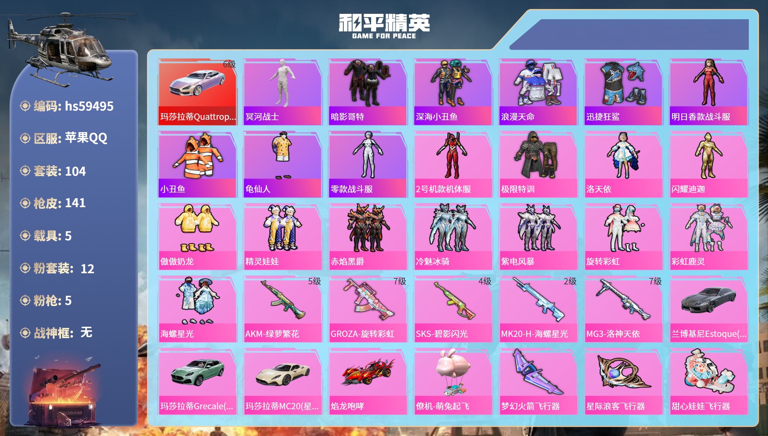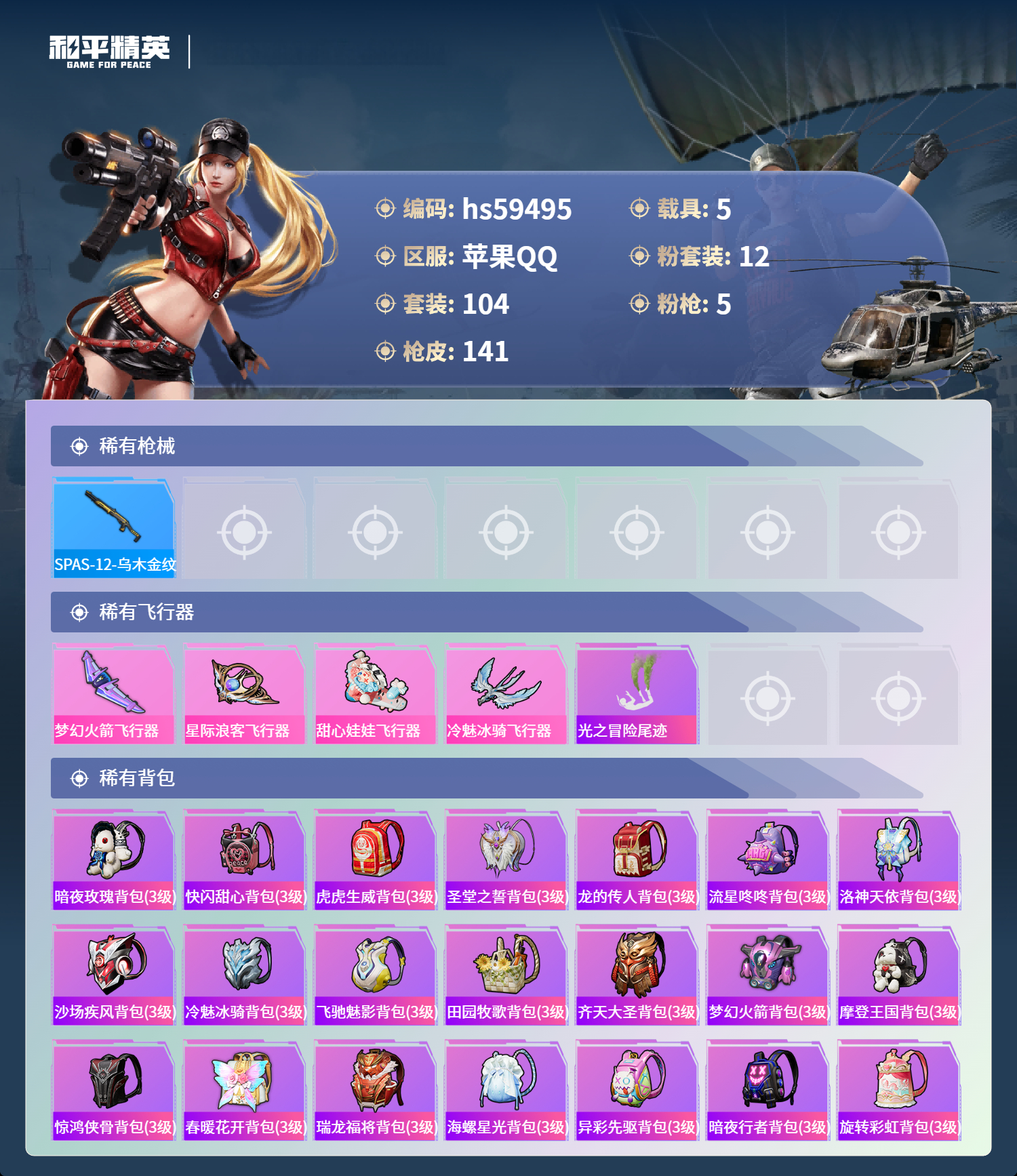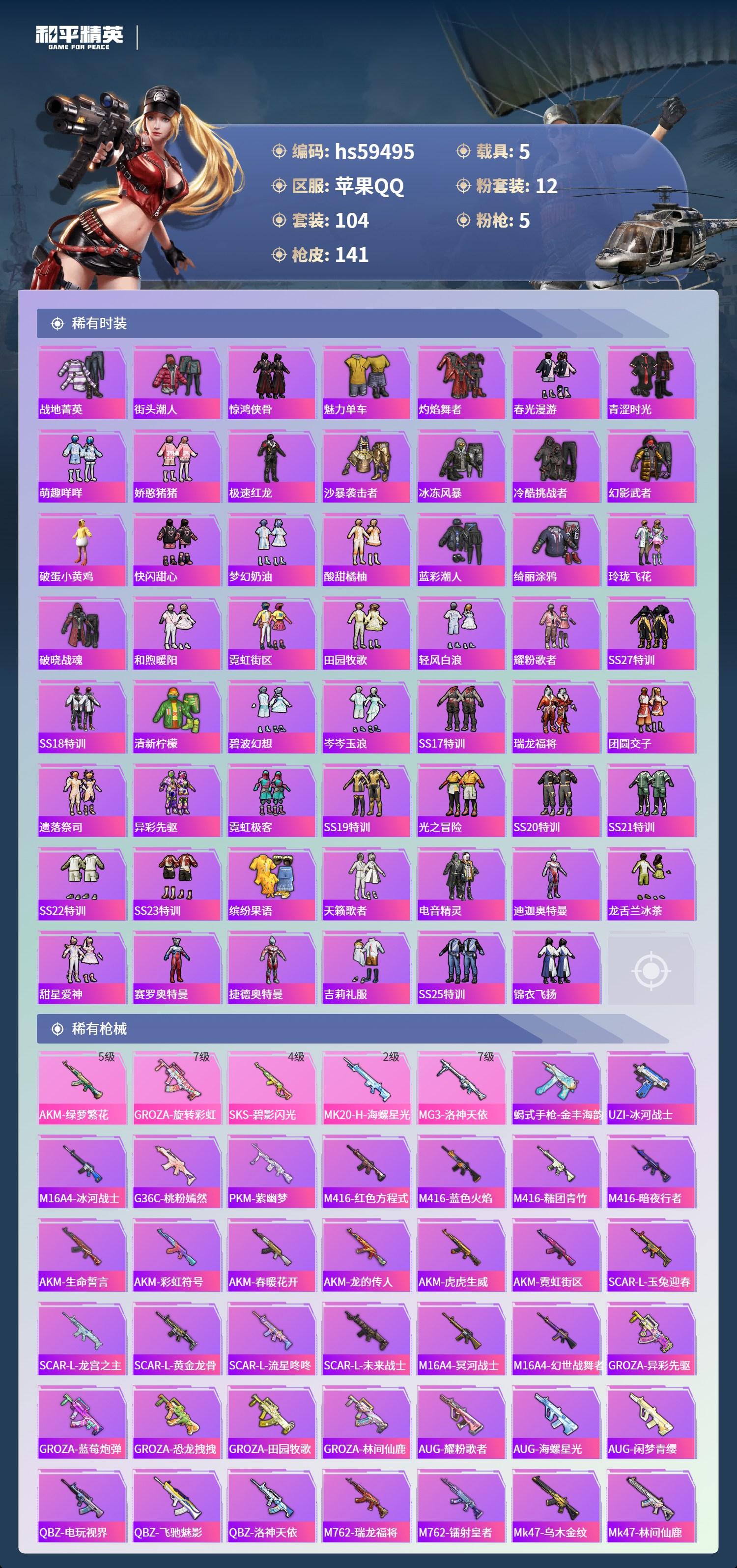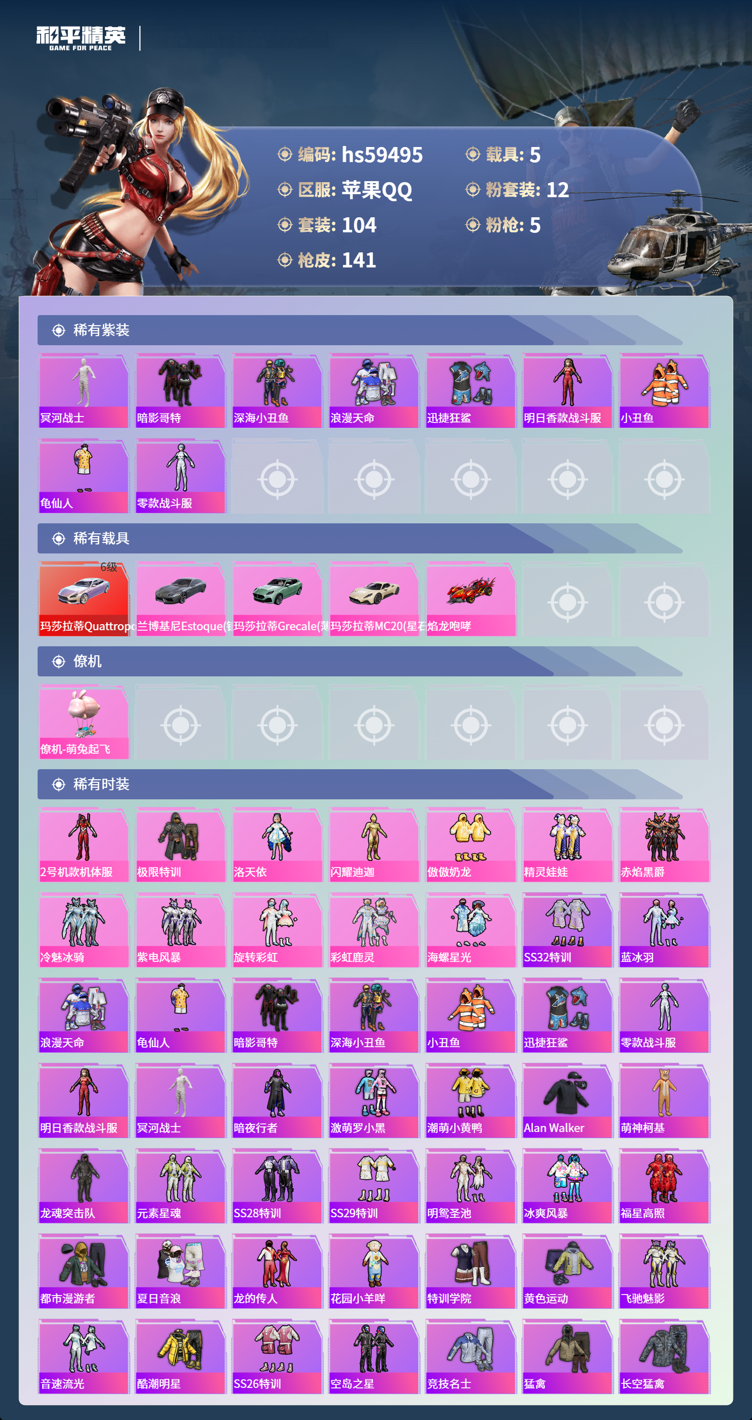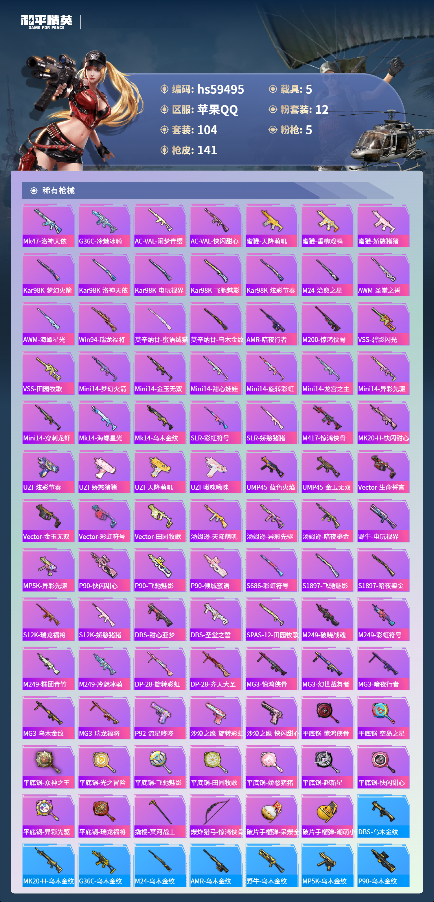 【422652】【可二次】【苹果QQ】龟仙人 AKM-绿萝繁花 木乃伊 焰龙咆哮 萌兔起飞 迪迦奥特曼 星际浪客飞行器 洛天依 极限特训 极速红龙 赤焰黑爵 闪耀迪迦型 MK47-林间仙鹿 GROZA-林间仙鹿 深海小丑鱼 瑞龙福将 激萌小黄鸭 GROZA-旋转彩虹 浪漫天命 梦幻火箭飞行器 甜心娃娃飞行器 激萌罗小黑 团圆交子 紫电风暴 MK20-H-海螺星光 迅捷狂鲨 萌神柯基 M762-瑞