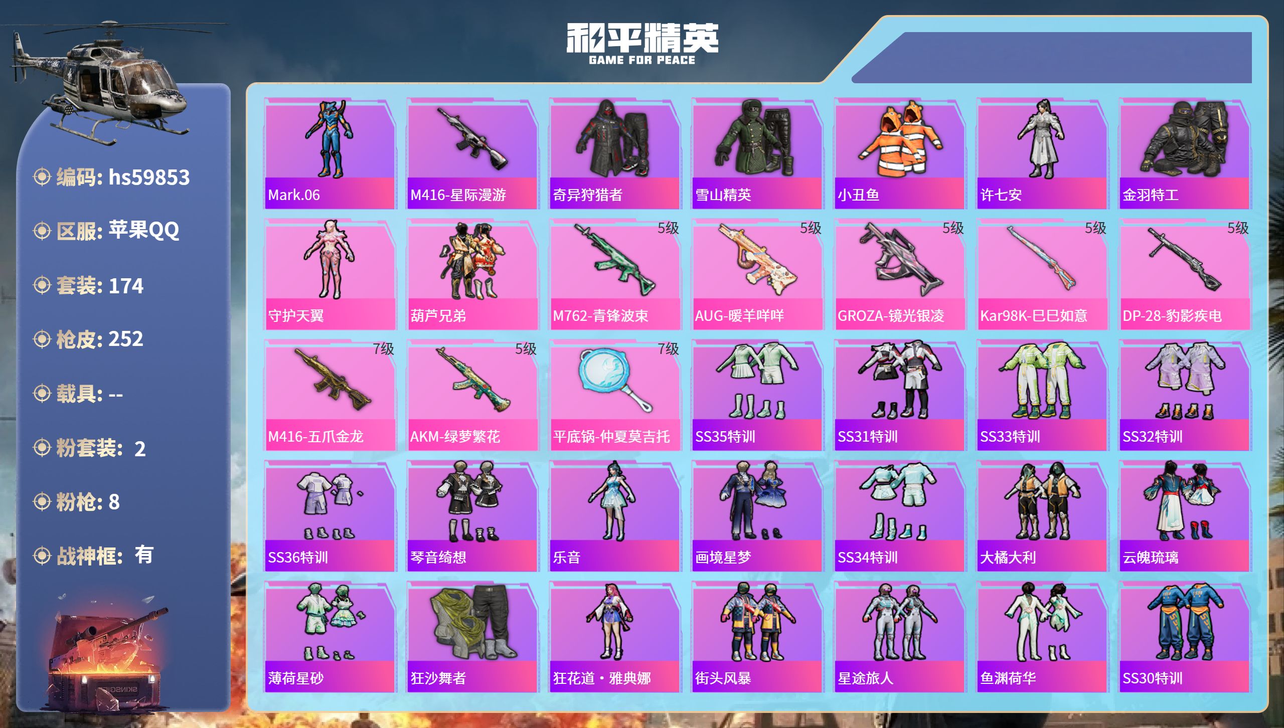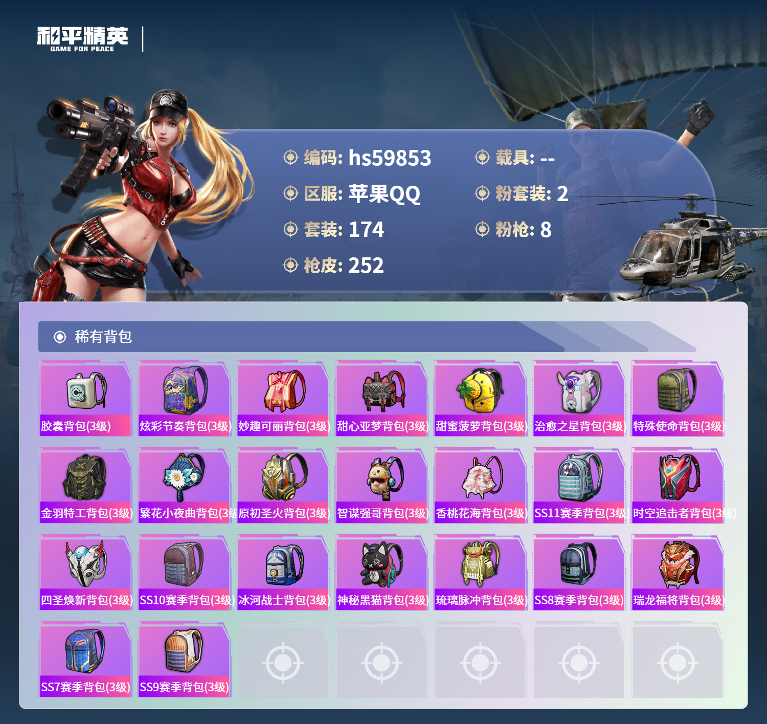 游戏区服:和平精英 / 苹果系统 / QQ帐号