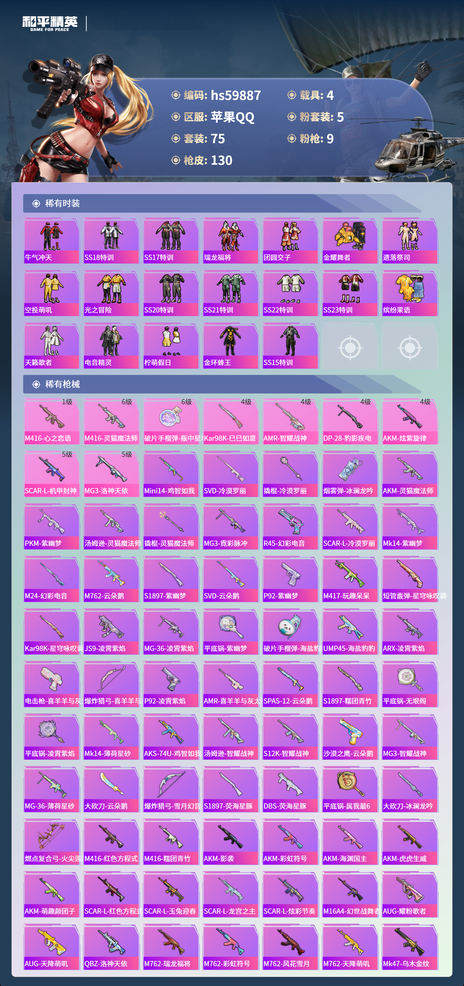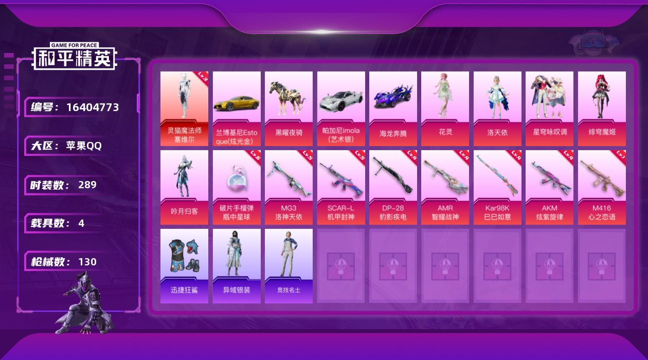 【423305】【不可二次】【苹果QQ】迅捷狂鲨 M762-瑞龙福将 海龙奔腾 SCAR-机甲封神 MG3-洛神天依 洛天依 M762-风花雪月 SCAR-L-机甲封神 兰博轿车金色 AKM-炫紫旋律 吟月归客 M416-心之恋语 瑞龙福将 灵猫魔法师-塞维尔 醒狮腾龙 团圆交子