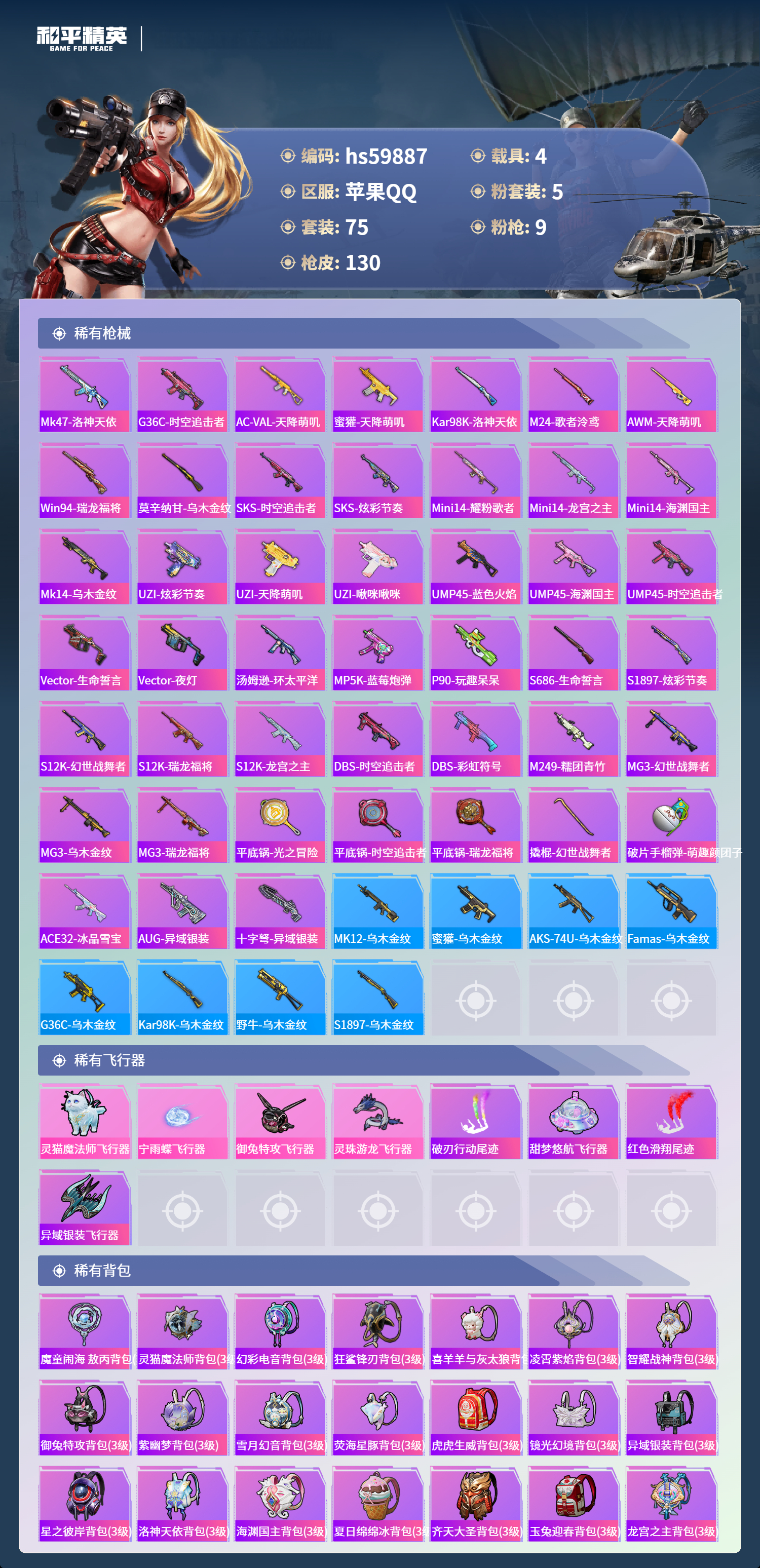 游戏区服:和平精英 / 苹果系统 / QQ帐号