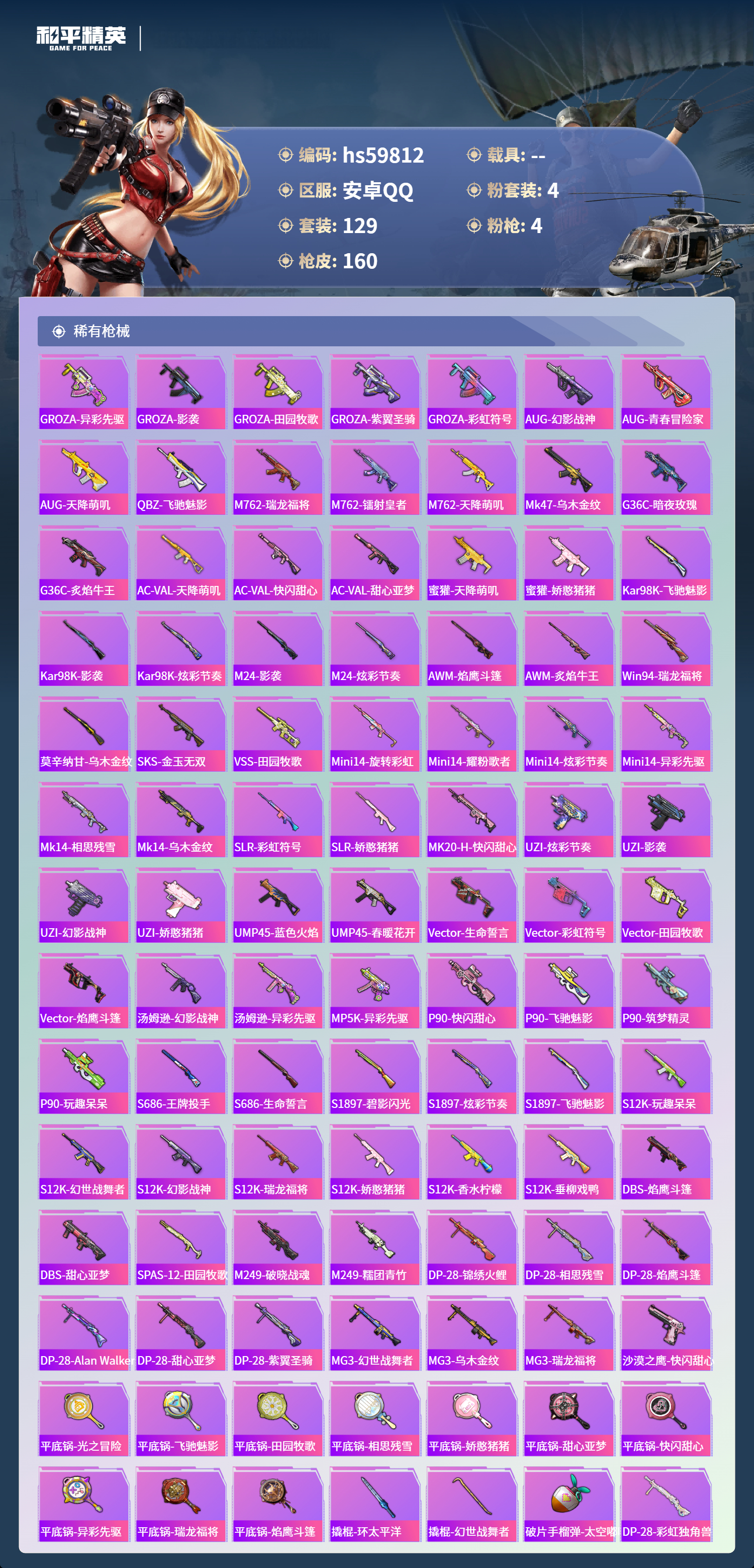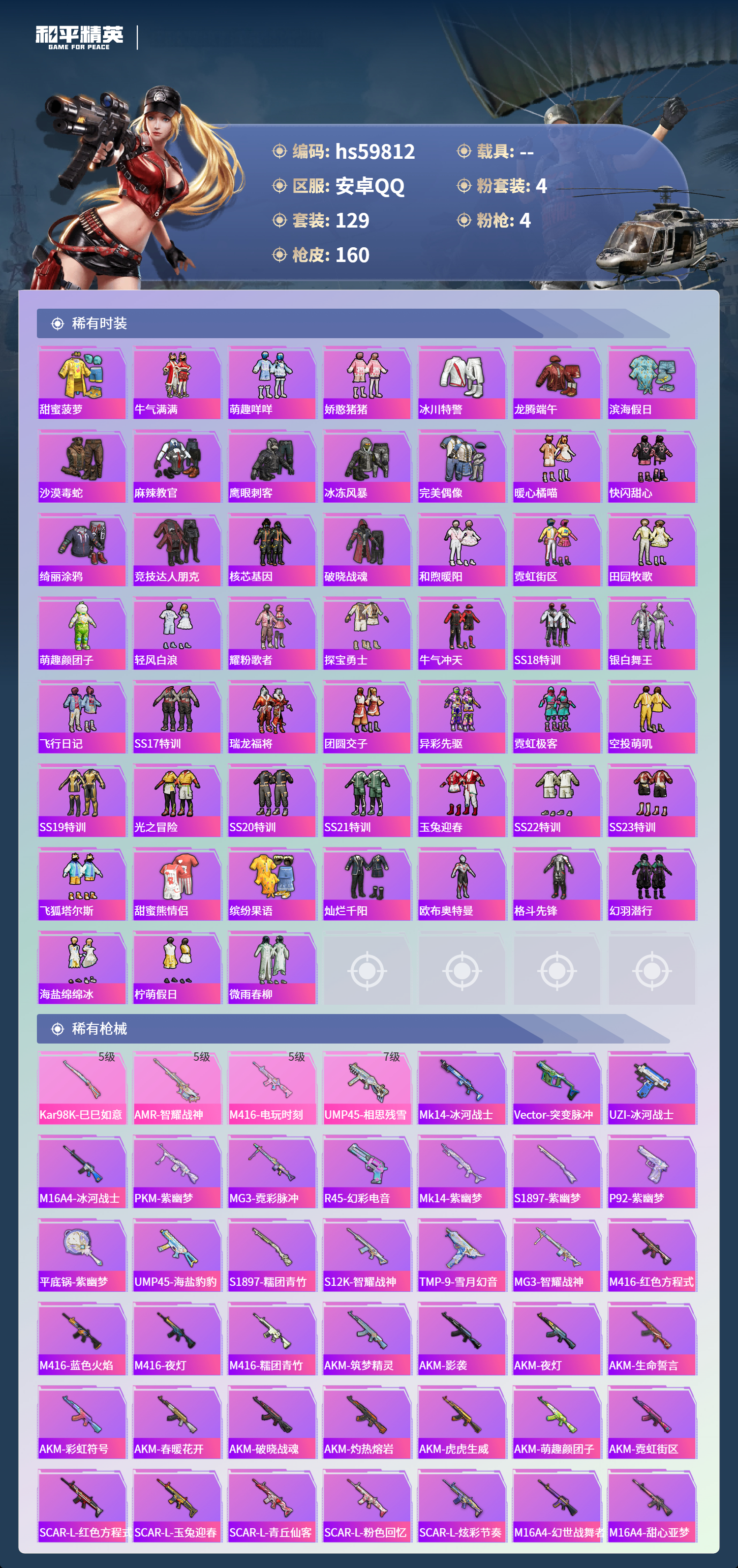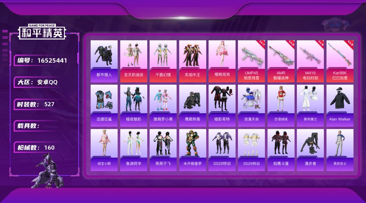 【439491】【不可二次】【安卓QQ】漫步者 都市猎人 迅捷狂鲨 M762-瑞龙福将 M416-电玩时刻 UMP45-相思残雪 宝贝奶油派 瑞龙福将 醒狮腾龙 浪漫天命 暗影哥特 激萌罗小黑 团圆交子