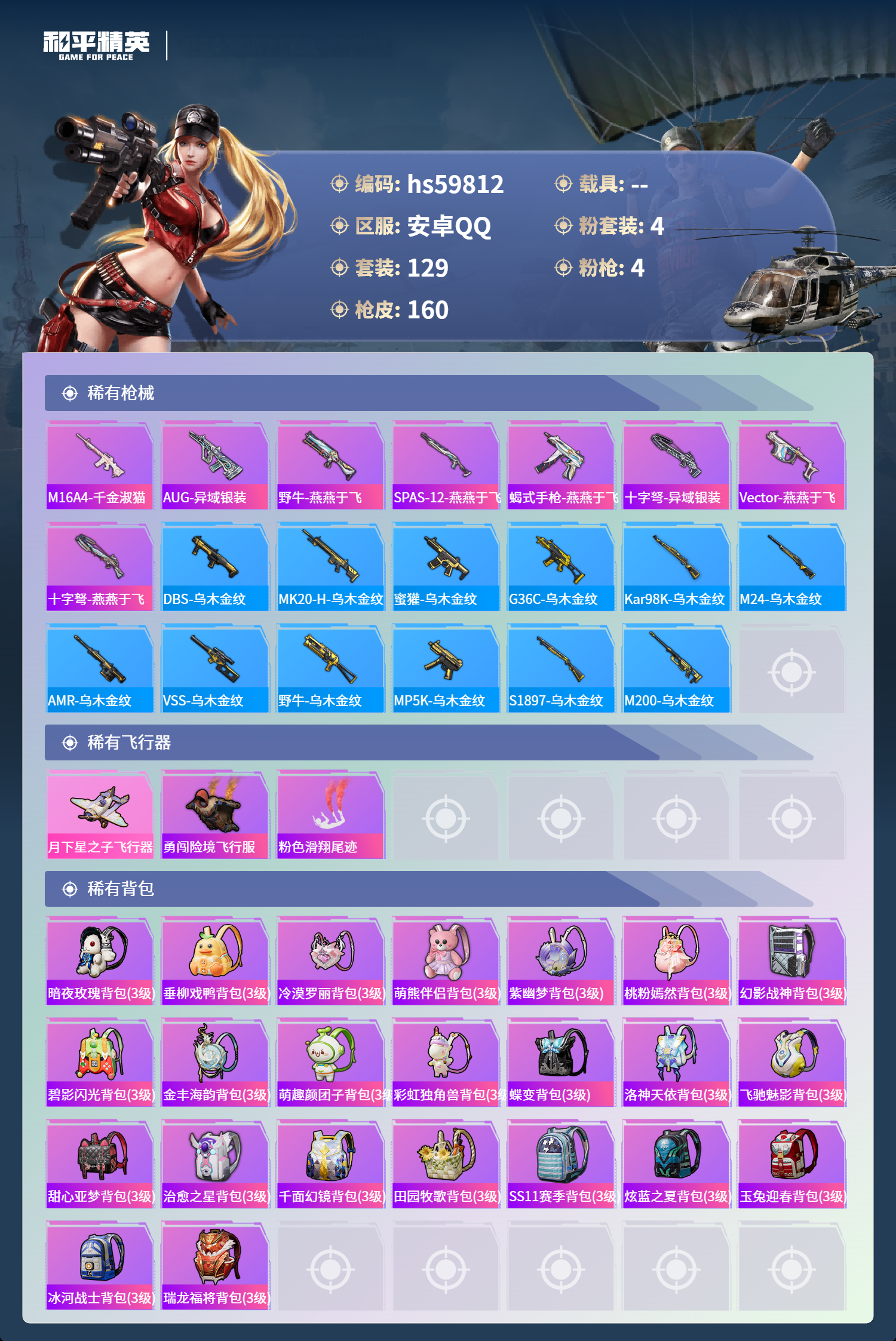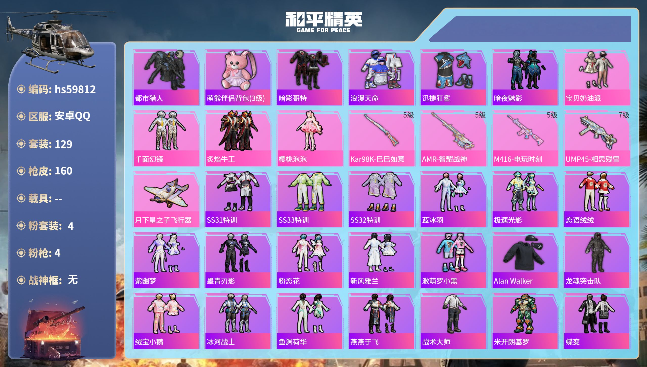 游戏区服:和平精英 / 安卓系统 / QQ账号