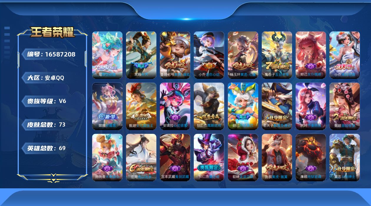 游戏区服:王者荣耀 / 安卓系统 / QQ账号