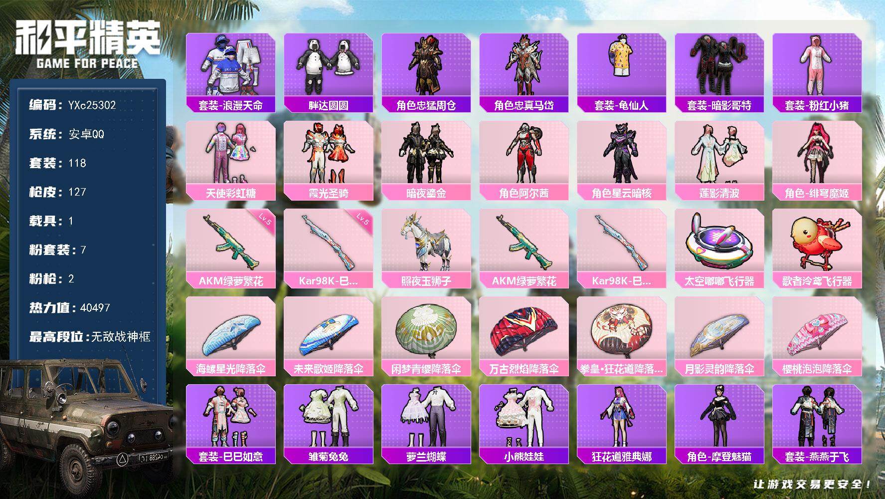游戏区服:和平精英 / 安卓系统 / QQ账号