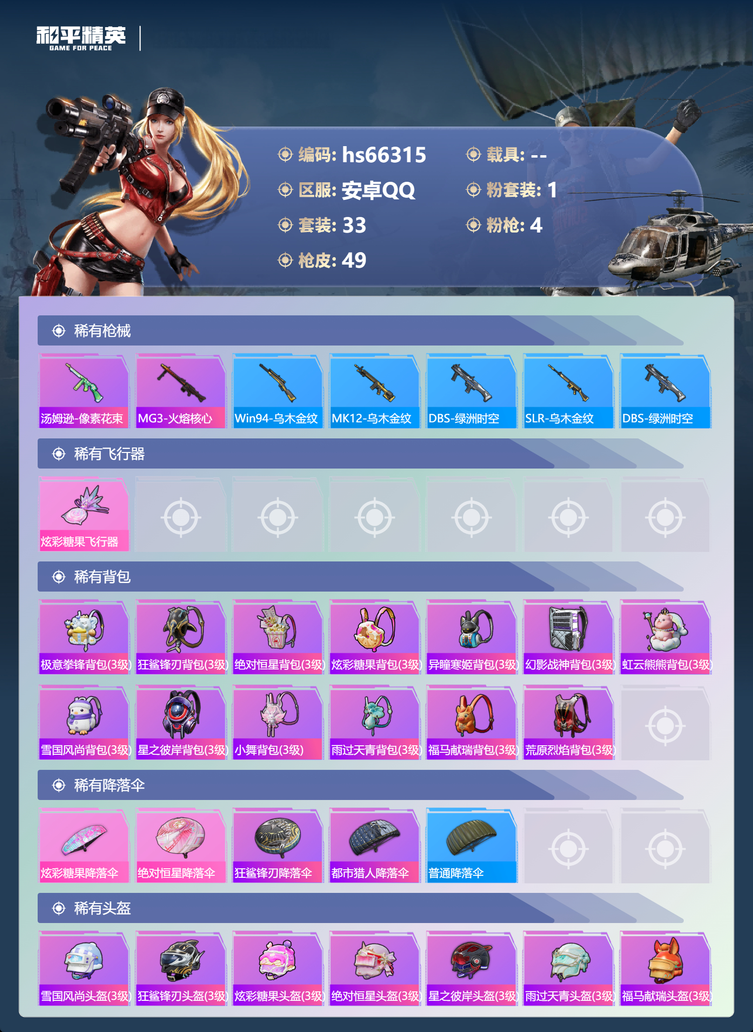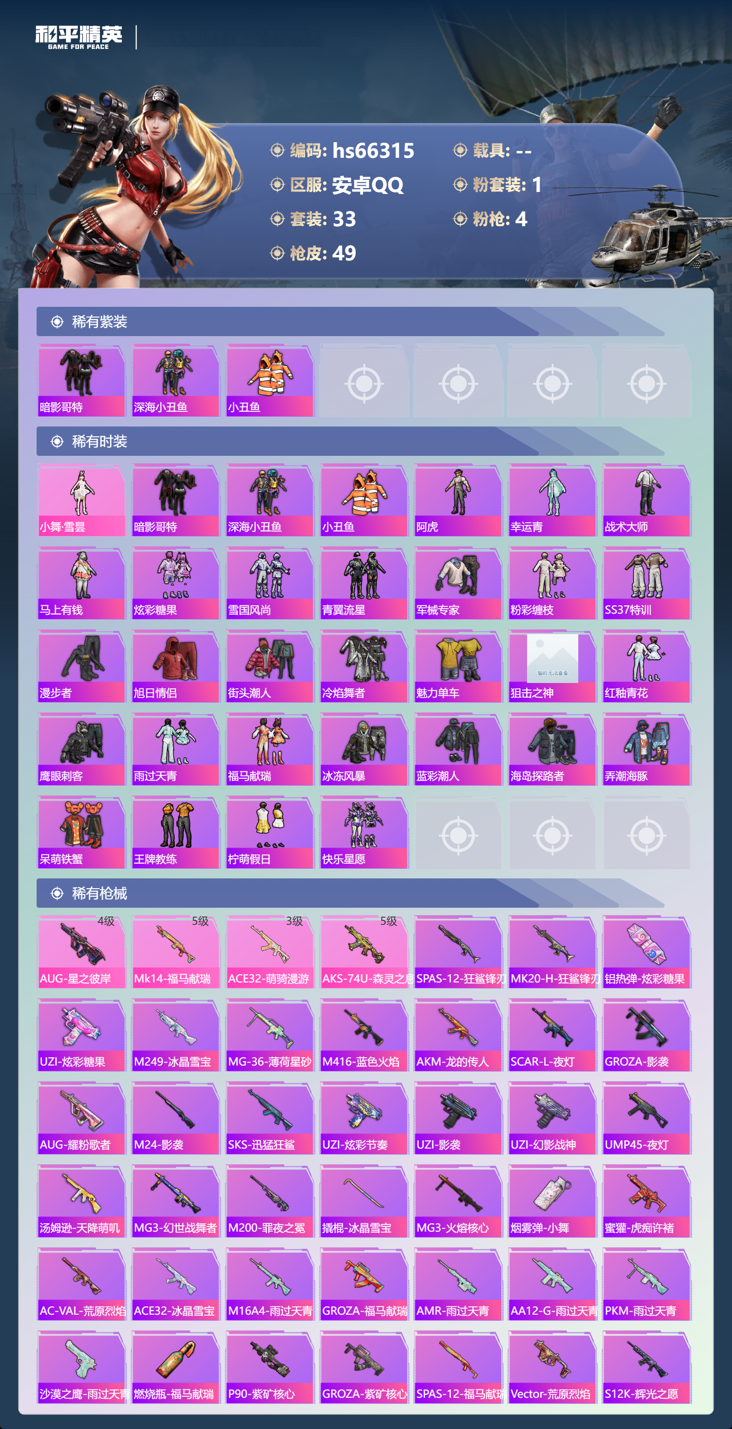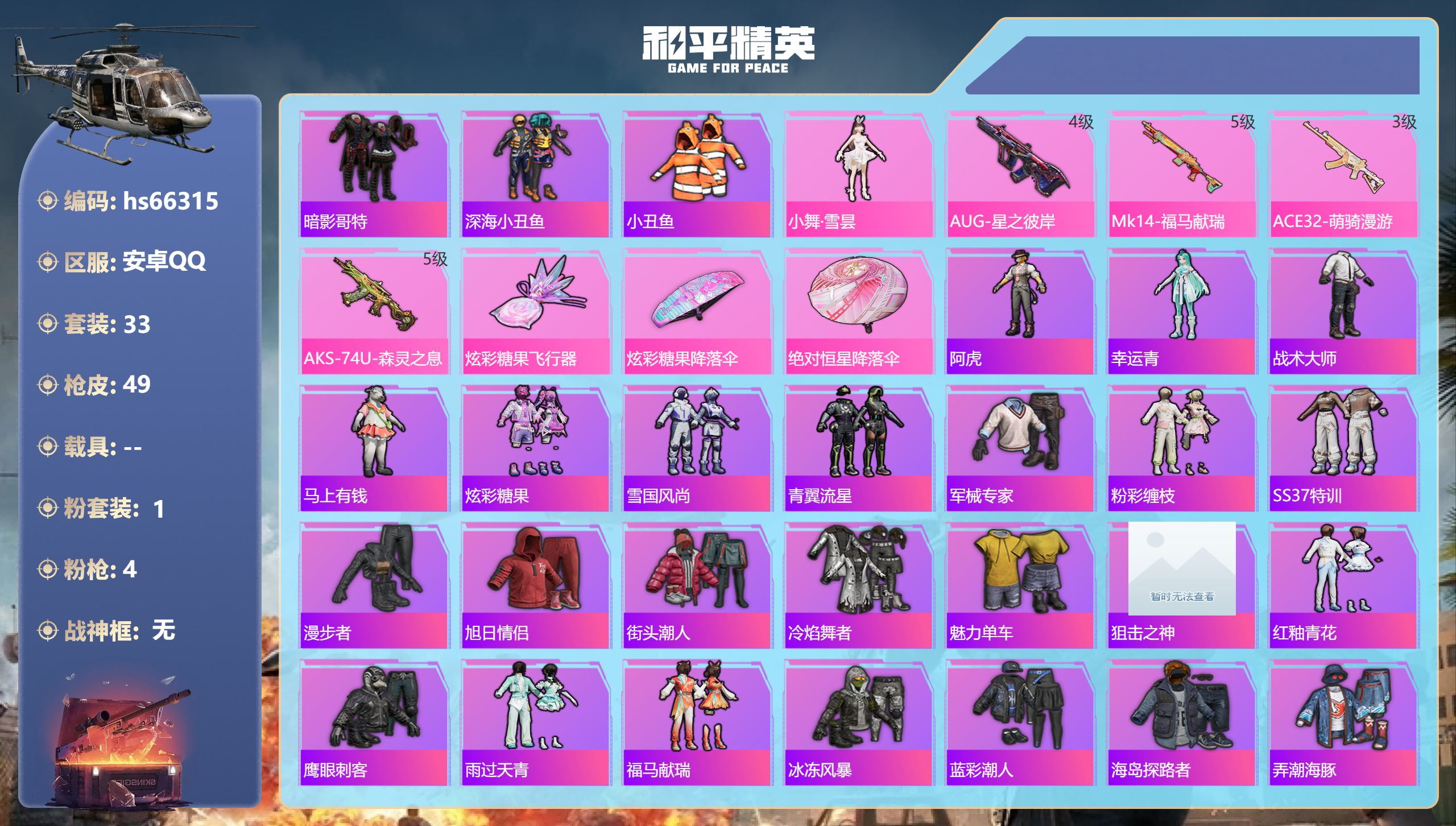 游戏区服:和平精英 / 安卓系统 / QQ账号