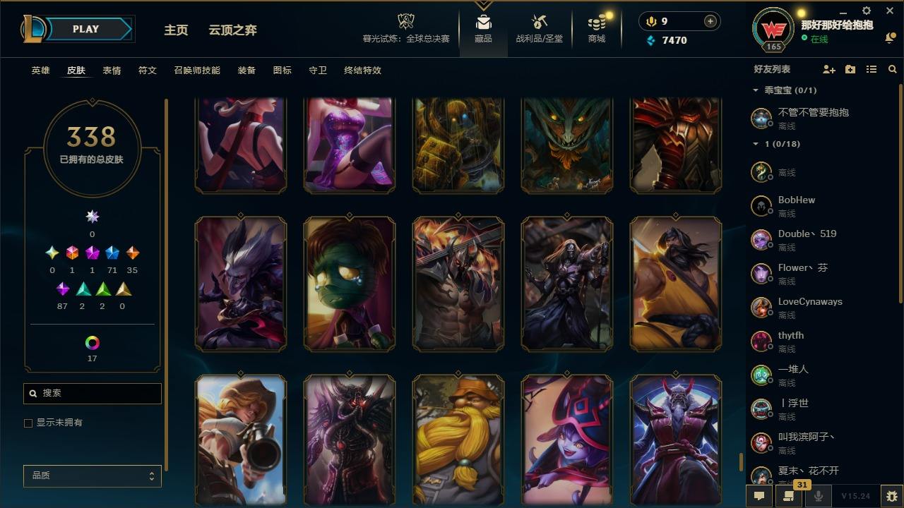 【620710】[18107331]1终极 1神话 71限定 35传说 87史诗 338皮肤 24炫彩 161英雄 可二次 可修改实名 【情人节限定】觅心猎手 薇恩 【赛季限定皮】胜利凤凰 艾尼维亚,胜利之王 泰达米尔,胜利女神 希维尔,胜利之树 茂凯,胜利枪神 格雷福斯,胜利女神 奥莉安娜,胜利之剑 亚托克斯 【冠军限定系列】S1FNC 嘉文四世,S1FNC 卡尔萨斯,S2 暗杀星 发条,S