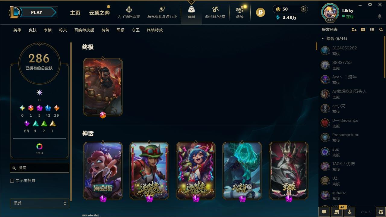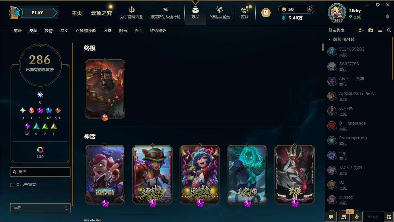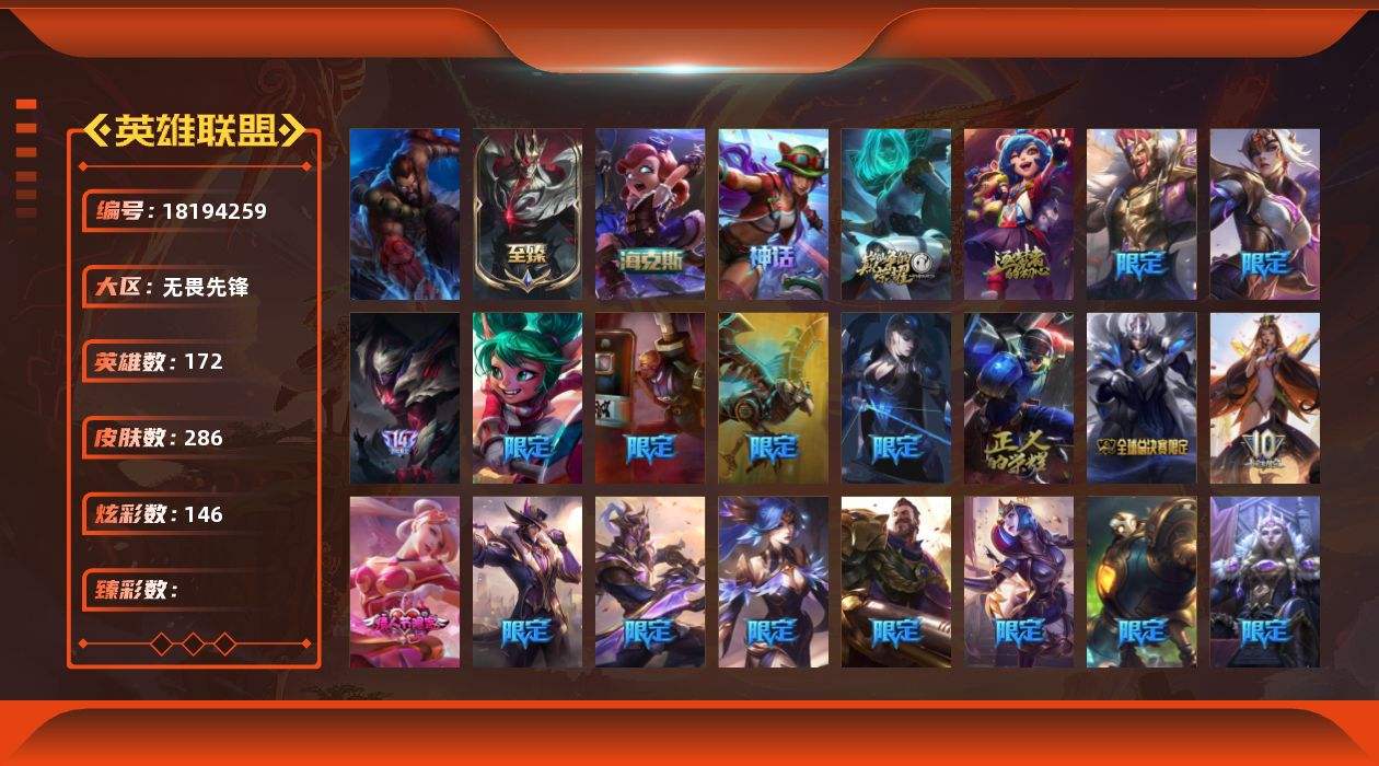 【631517】[18194259]1终极 5神话 43限定 30传说 69史诗 286皮肤 146炫彩 172英雄 可二次 可修改实名 【海克斯】海克斯 安妮【限定】2021 全球总决赛 嘉文四世【情人节限定】甜心宝贝 娑娜【赛季限定皮】胜利行刑官 德莱文,胜利凤凰 艾尼维亚,胜利女神-菲奥娜,胜利之运 崔斯特,胜利剑圣 易,胜利女神 娑娜,胜利巨口 克格莫,胜利之王 泰达米尔,胜利枪神 格雷