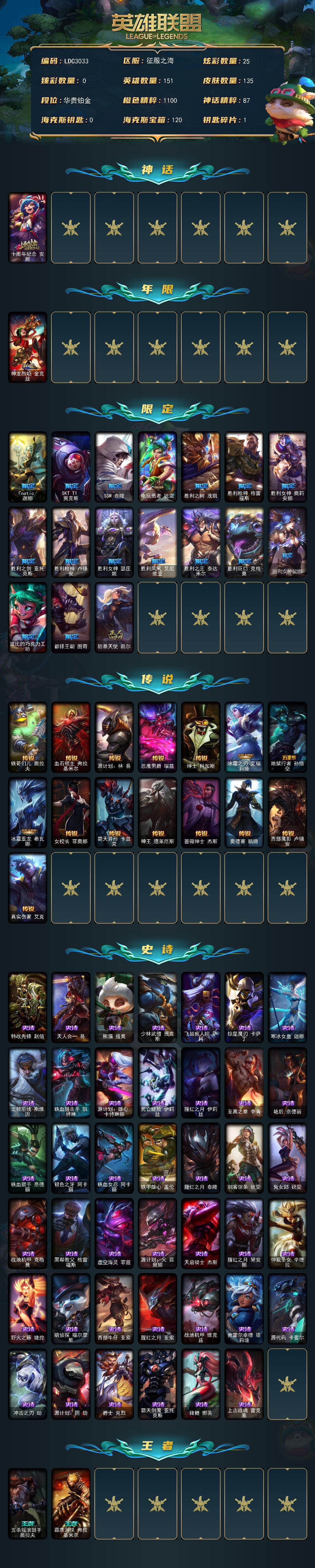 【639021】【LDC3033】151英雄/135皮肤/1神话/18限定/25炫彩/15传说/41史诗/铂金账号等级:406/十周年纪念安妮/神龙烈焰金克丝/Fnatic迦娜/SKTT1贾克斯/SSW泰隆/电玩勇者锐雯/胜利之树茂凯/胜利枪神格雷福斯/胜利女神奥莉安娜/胜利之剑亚托克斯/胜利枪神卢锡安/胜利女神瑟庄妮/胜利凤凰艾尼维亚/胜利之王泰达米尔/胜利巨口克格莫/胜利女神娑娜/波比的巧克