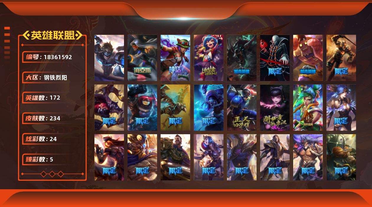【652690】[18361592]【特价出售/店主推荐】未定级段位-172英雄-234皮肤-24炫彩-1终极-3神话-43限定-15传说-61史诗【神话皮肤】:十周年纪念安妮,十五周年纪念希维尔【海克斯皮肤】:新创战纪希维尔【臻彩皮肤】:冠军典狱长锤石凯旋圣装,西部天使赛娜贝利尔之怠,魔女阿卡丽虚荣,魔女阿狸饕餮,净雪之月莫甘娜冬虹【冰雪限定】:冰雪风暴希维尔,圣诞精灵崔丝塔娜,圣诞狂欢基兰,