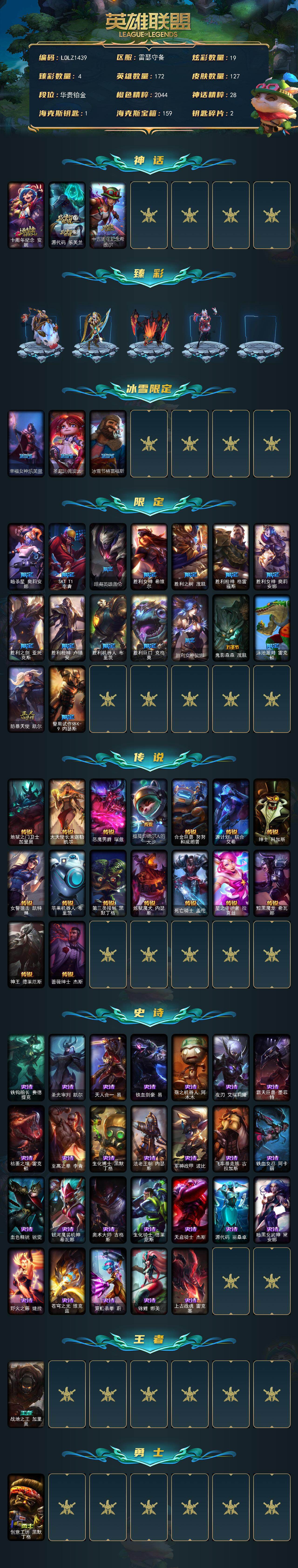 【659451】【LOLZ1439】172英雄/127皮肤/3神话/19限定/4臻彩/19炫彩/16传说/26史诗/铂金账号等级:313/十周年纪念安妮/源代码乐芙兰/十五周年纪念希维尔/无畏骑士瑟庄妮赤子初心/冠军之箭艾希凯旋圣装/山海绘卷科加斯朱红/星之守护者卡莎热情之光/幸福女神乐芙兰/圣诞玩偶波比/冰雪节格雷福斯/暗杀星奥莉安娜/SKTT1李青/暗裔英雄盖伦/胜利女神希维尔/胜利之树茂凯