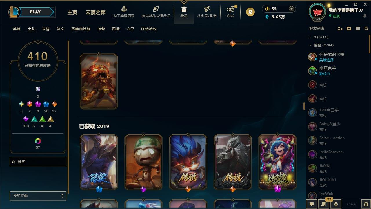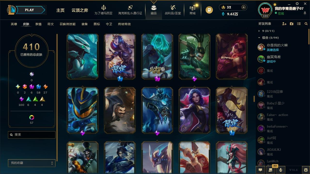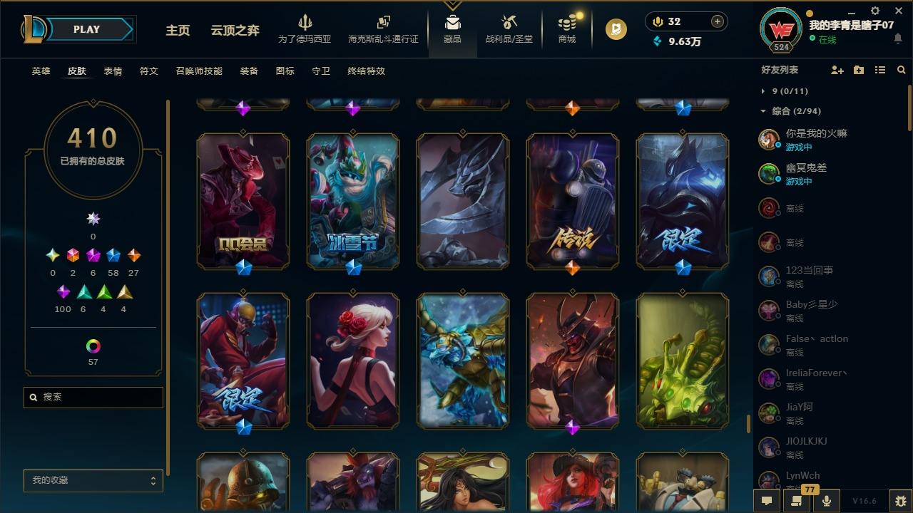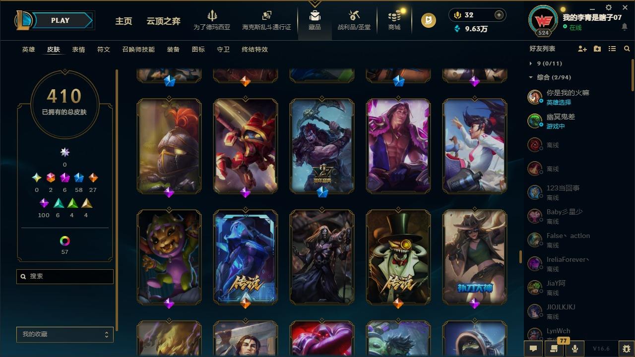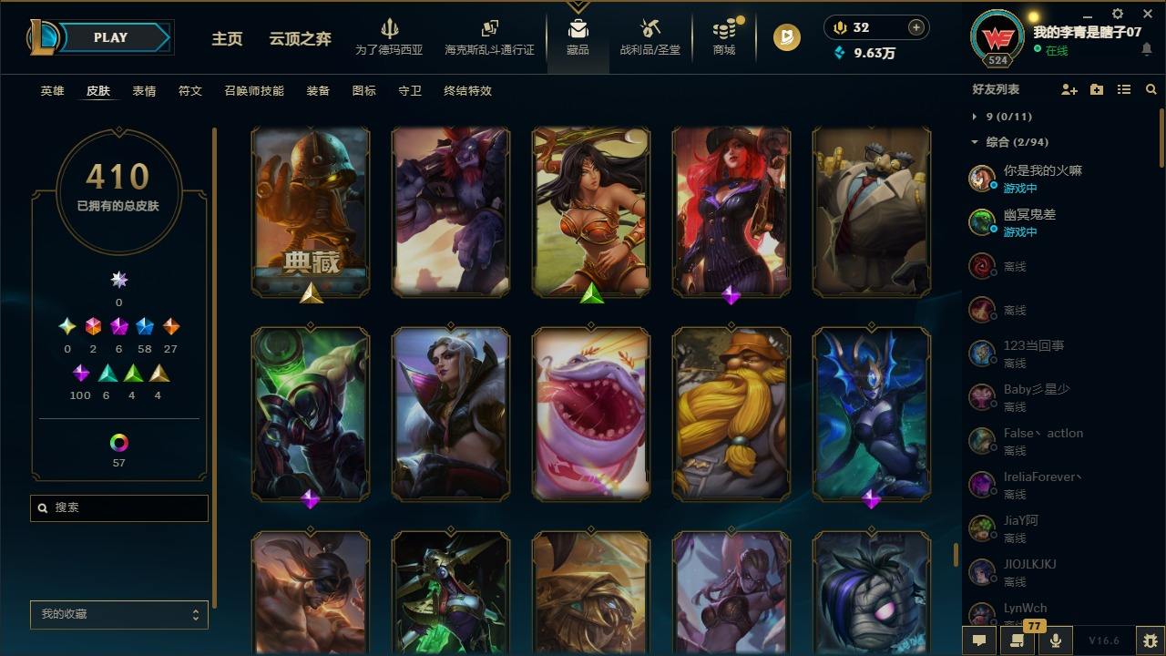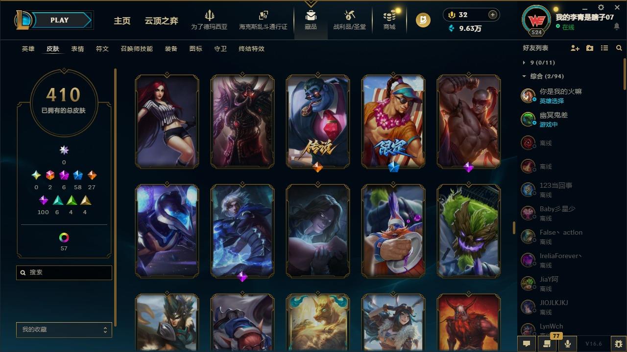 【681252】[18753506]2终极 6神话 59限定 29传说 102史诗 410皮肤 66炫彩 172英雄 可二次 可修改实名 【至臻】至臻 K/DA 卡莎 【海克斯】海克斯 雷克顿 【赛季限定皮】胜利行刑官 德莱文,胜利凤凰 艾尼维亚,胜利女神-菲奥娜,胜利剑圣 易,胜利女神 娑娜,胜利巨口 克格莫,胜利之王 泰达米尔,胜利女神 奥莉安娜,胜利之剑 亚托克斯,胜利枪神 卢锡安,胜利