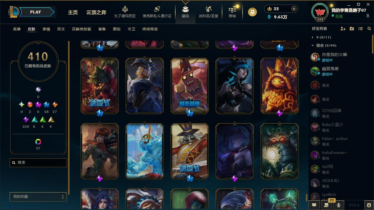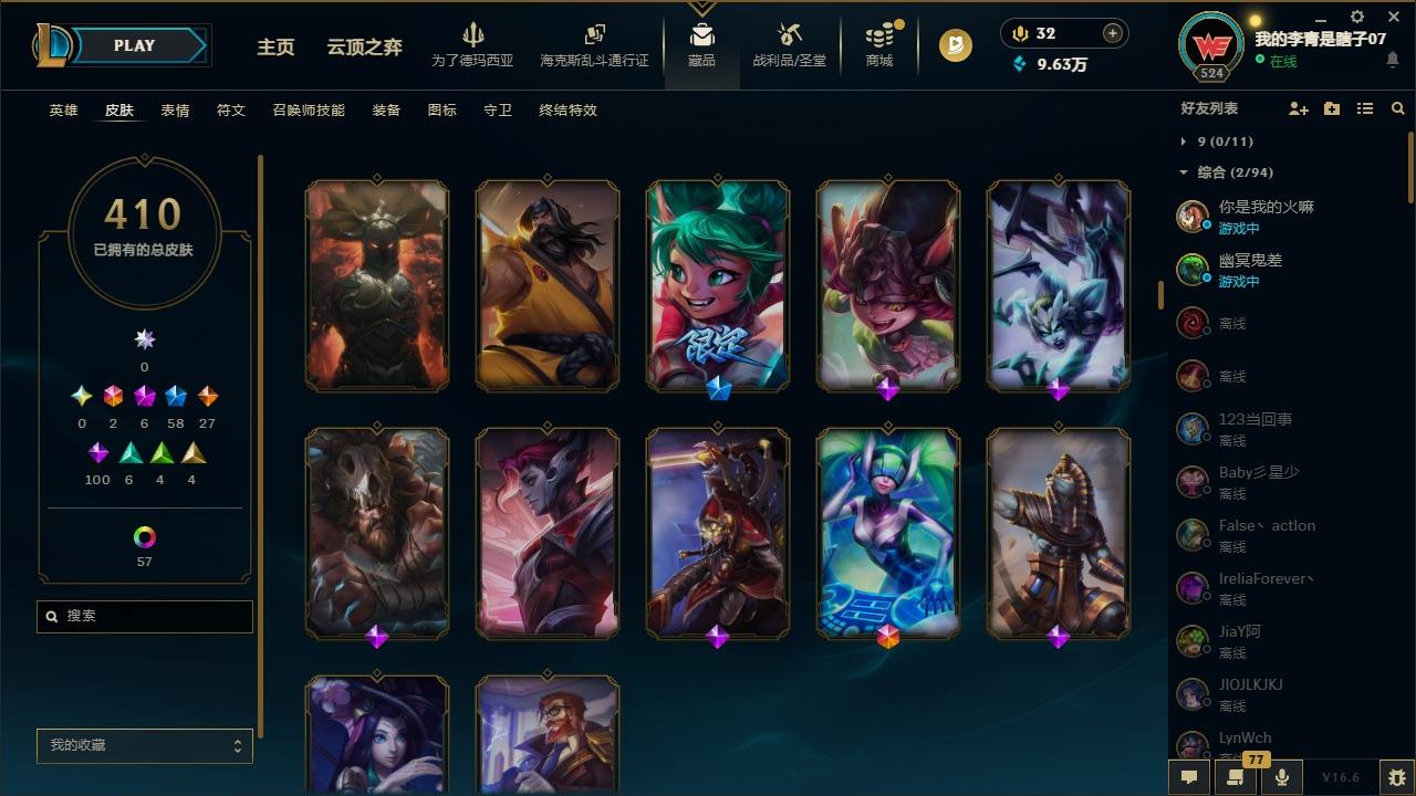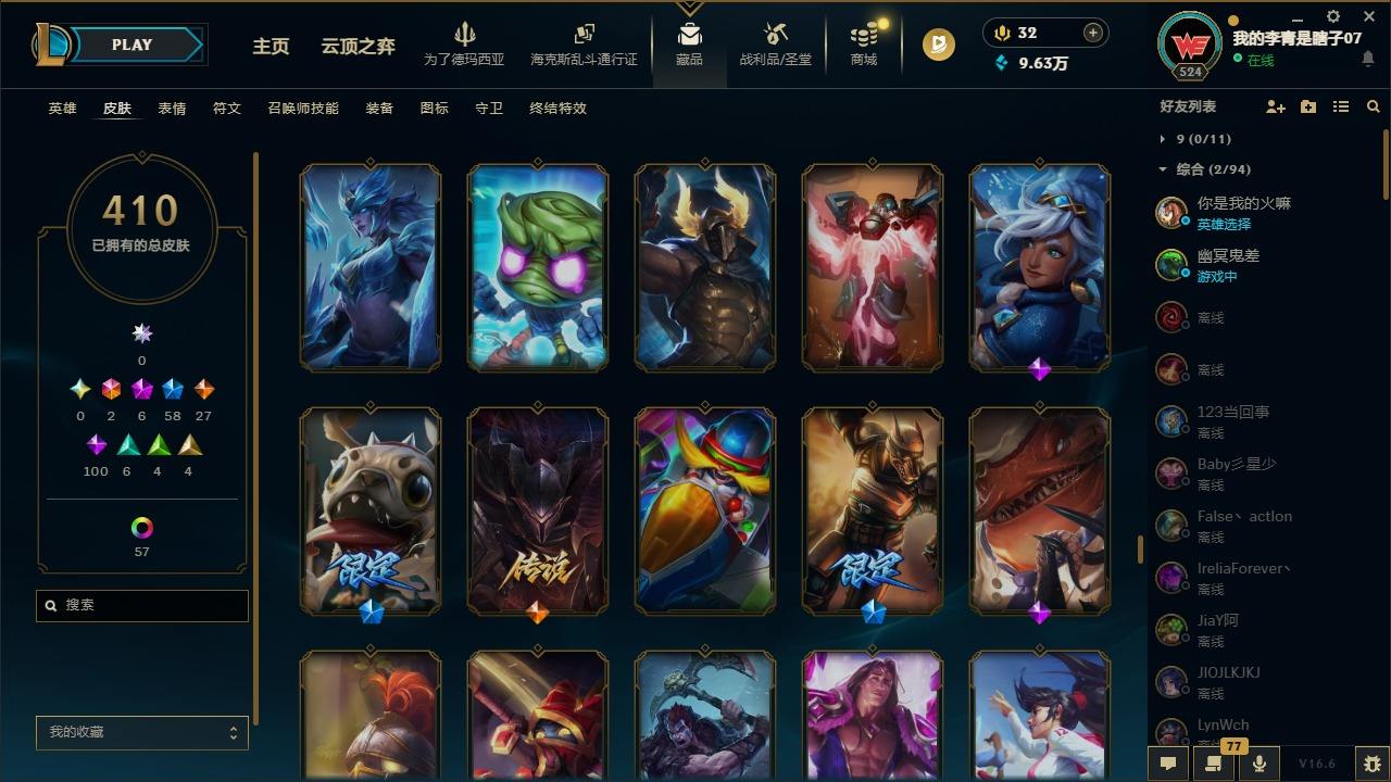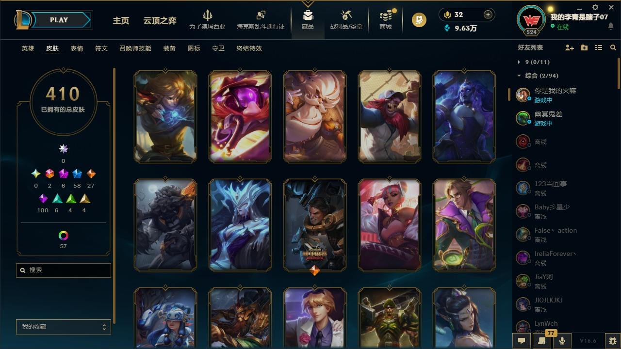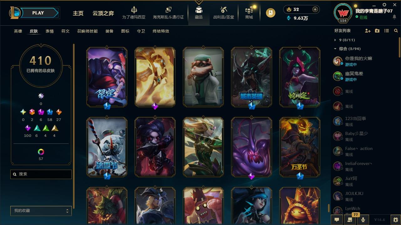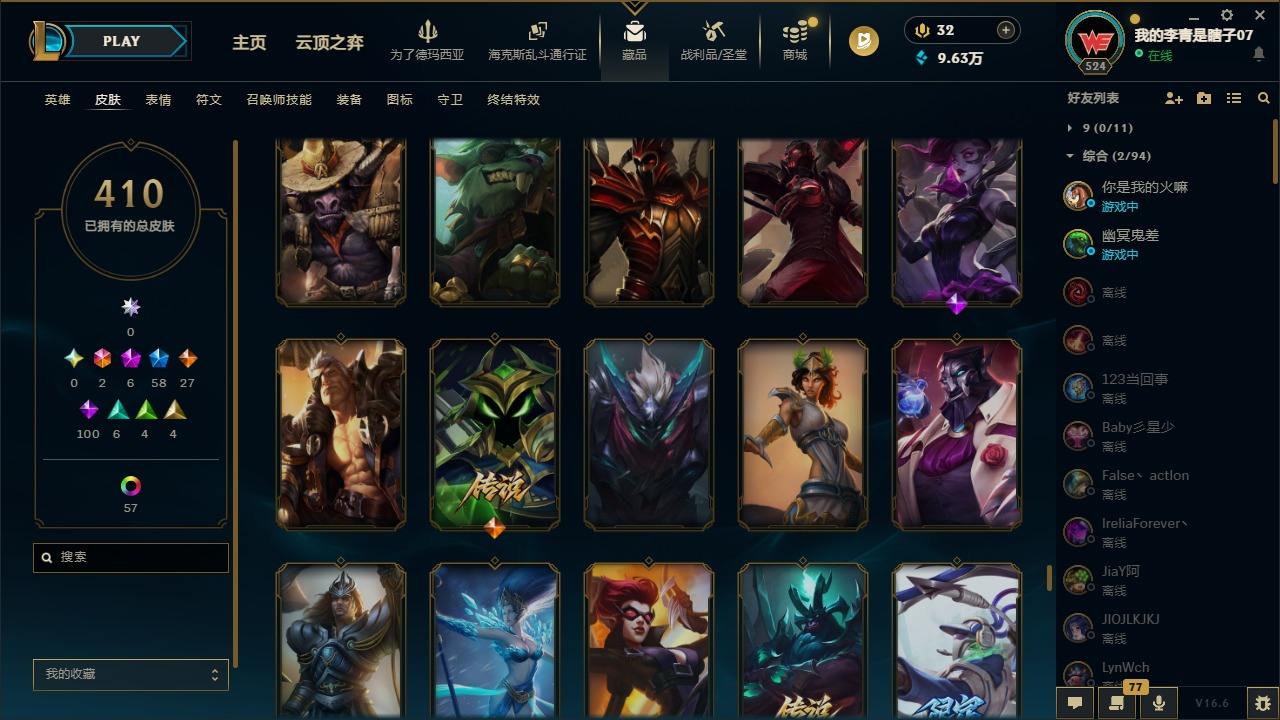 【681252】[18753506]2终极 6神话 59限定 29传说 102史诗 410皮肤 66炫彩 172英雄 可二次 可修改实名 【至臻】至臻 K/DA 卡莎 【海克斯】海克斯 雷克顿 【赛季限定皮】胜利行刑官 德莱文,胜利凤凰 艾尼维亚,胜利女神-菲奥娜,胜利剑圣 易,胜利女神 娑娜,胜利巨口 克格莫,胜利之王 泰达米尔,胜利女神 奥莉安娜,胜利之剑 亚托克斯,胜利枪神 卢锡安,胜利