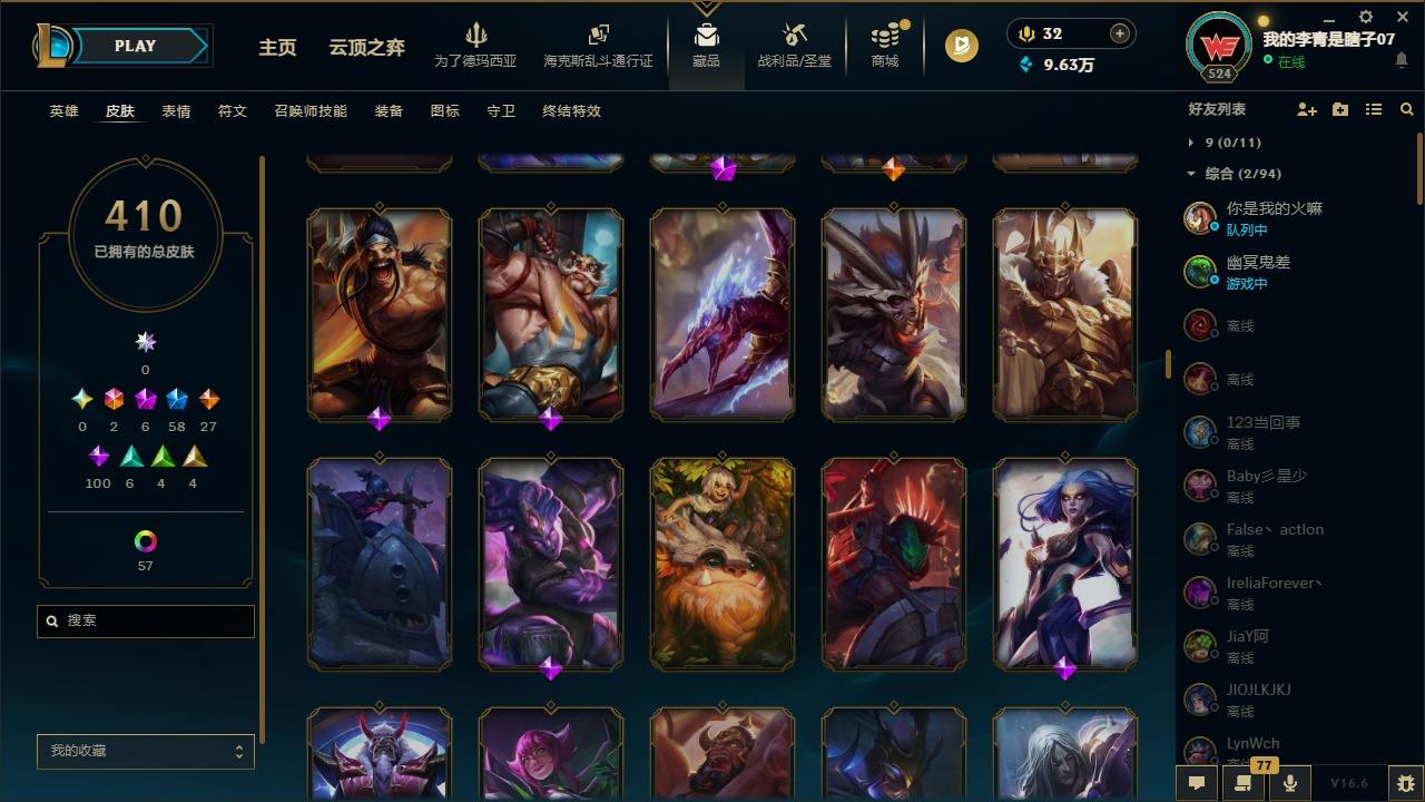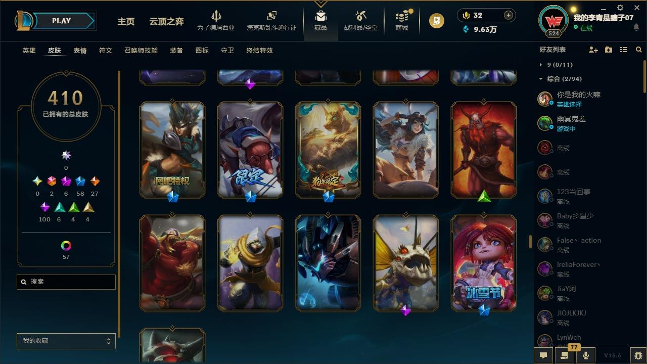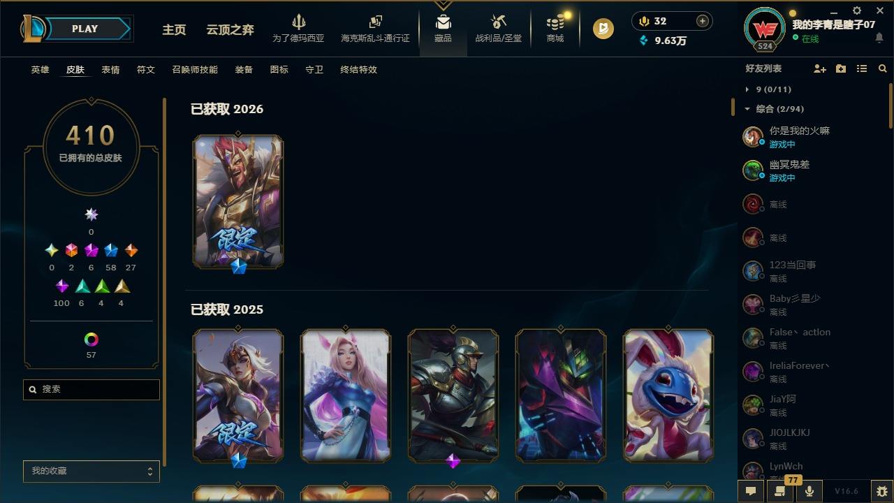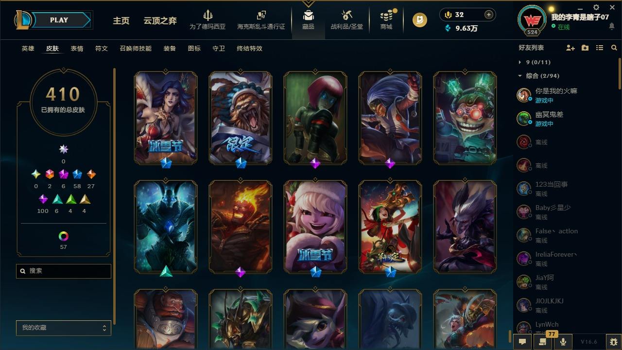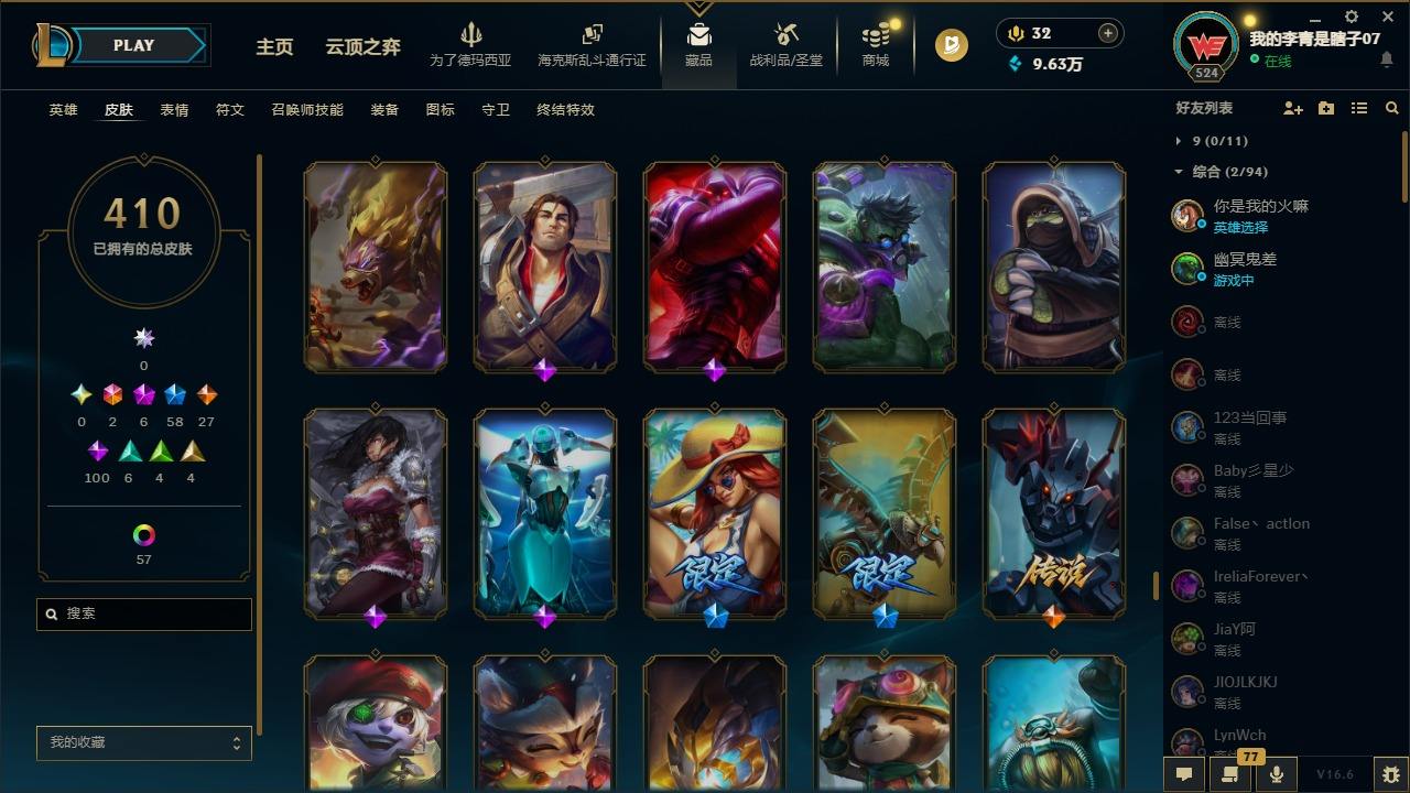 【681252】[18753506]2终极 6神话 59限定 29传说 102史诗 410皮肤 66炫彩 172英雄 可二次 可修改实名 【至臻】至臻 K/DA 卡莎 【海克斯】海克斯 雷克顿 【赛季限定皮】胜利行刑官 德莱文,胜利凤凰 艾尼维亚,胜利女神-菲奥娜,胜利剑圣 易,胜利女神 娑娜,胜利巨口 克格莫,胜利之王 泰达米尔,胜利女神 奥莉安娜,胜利之剑 亚托克斯,胜利枪神 卢锡安,胜利