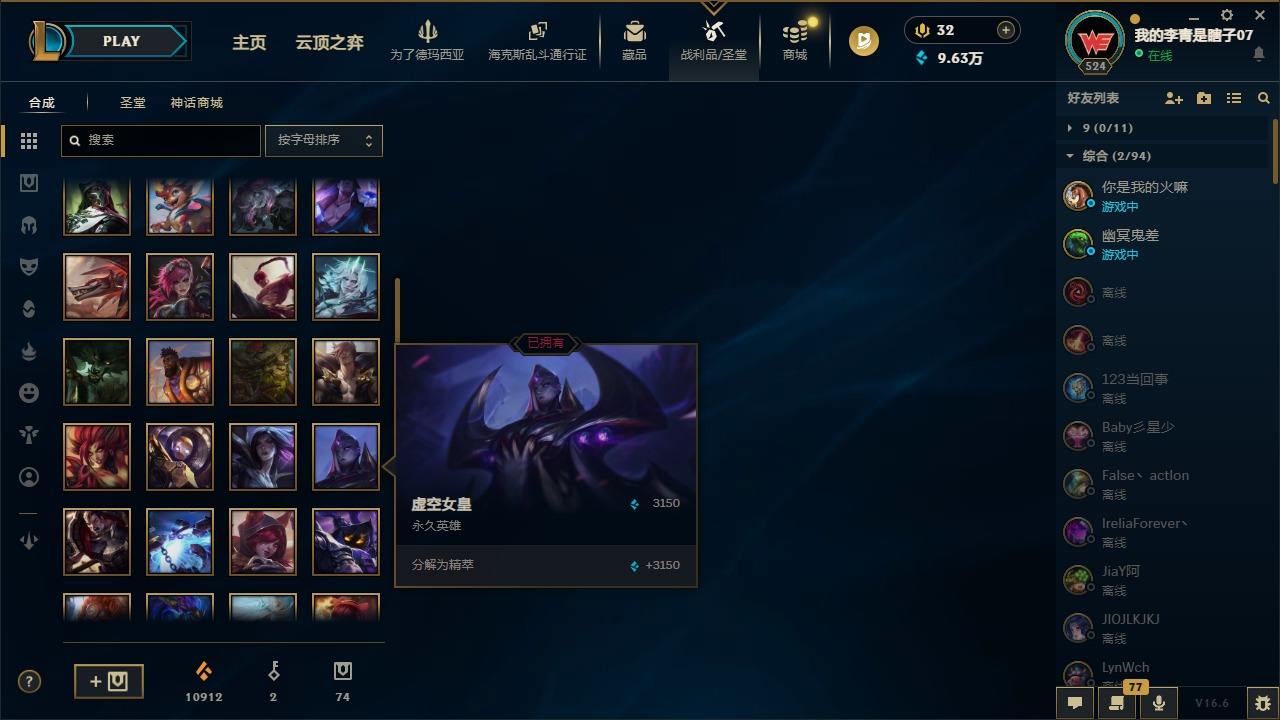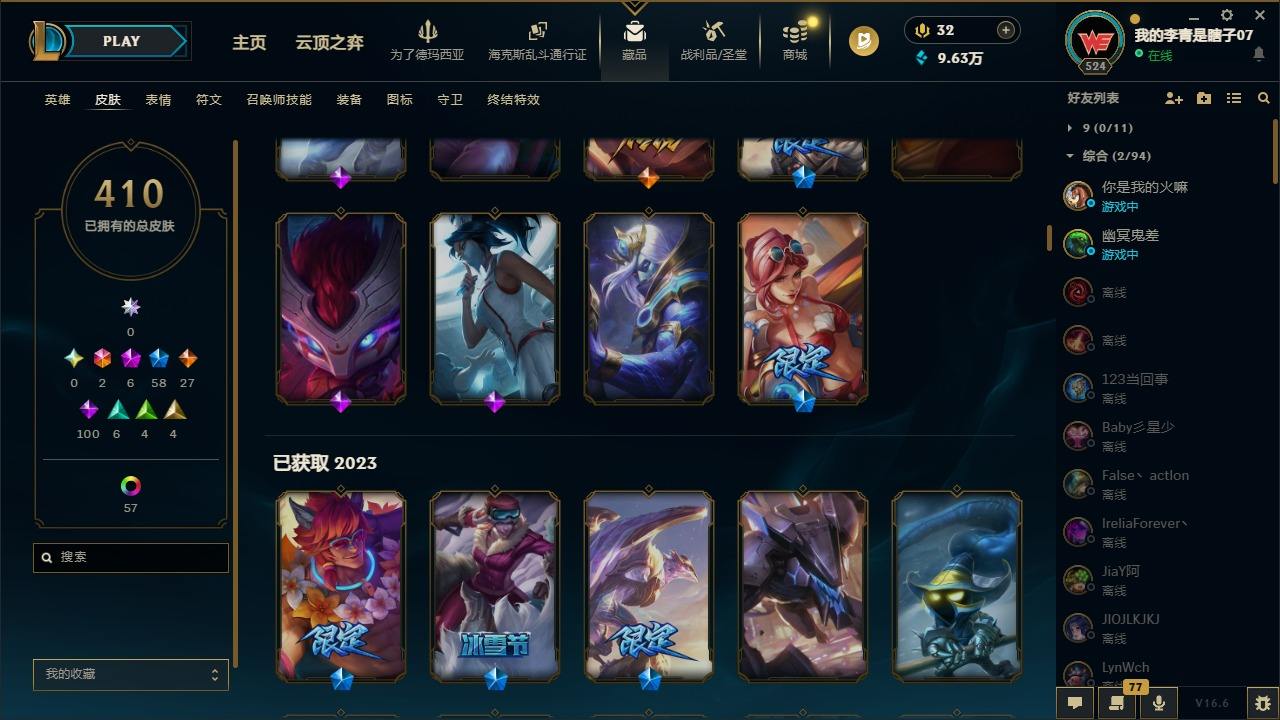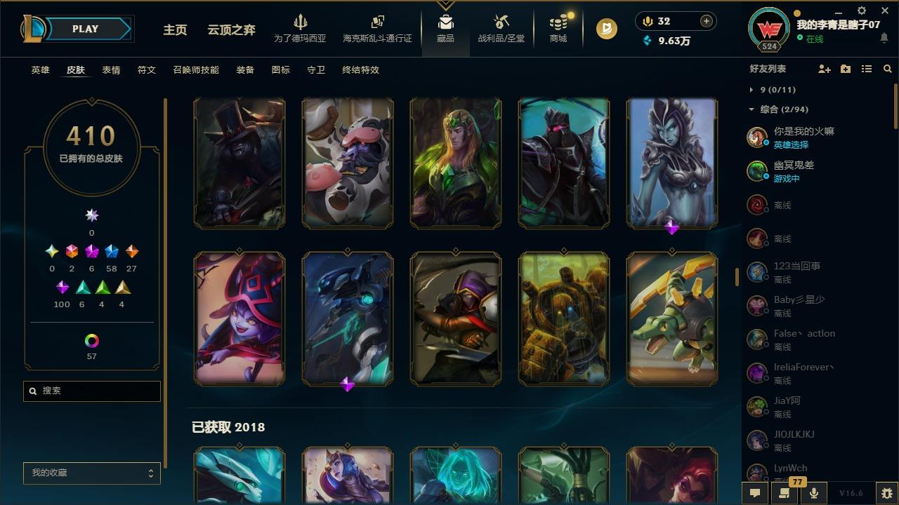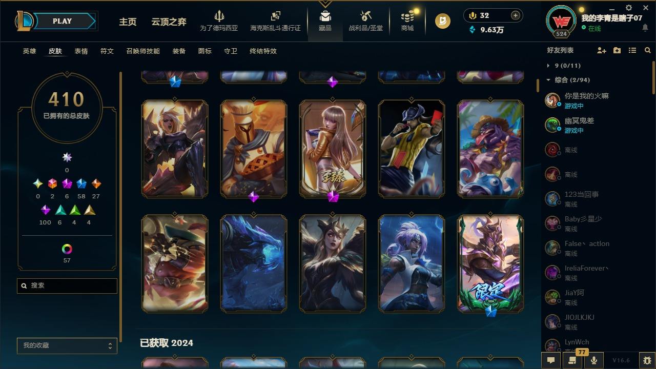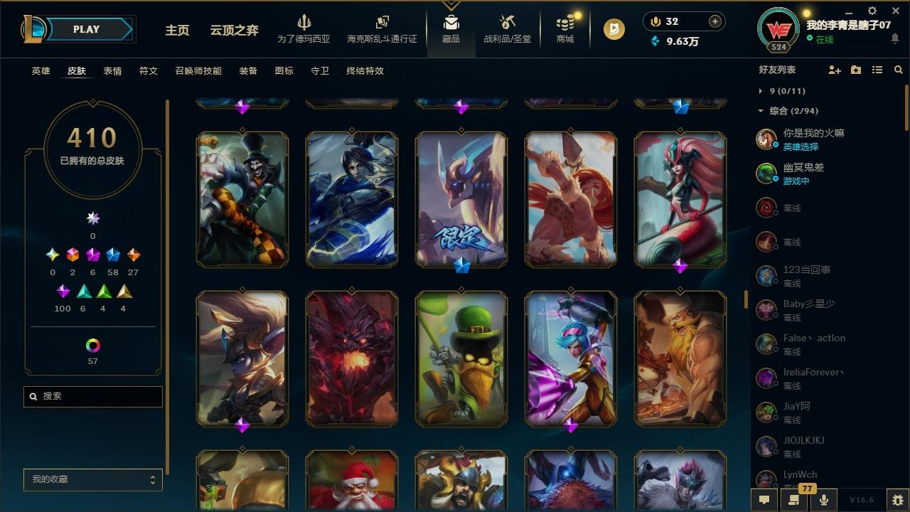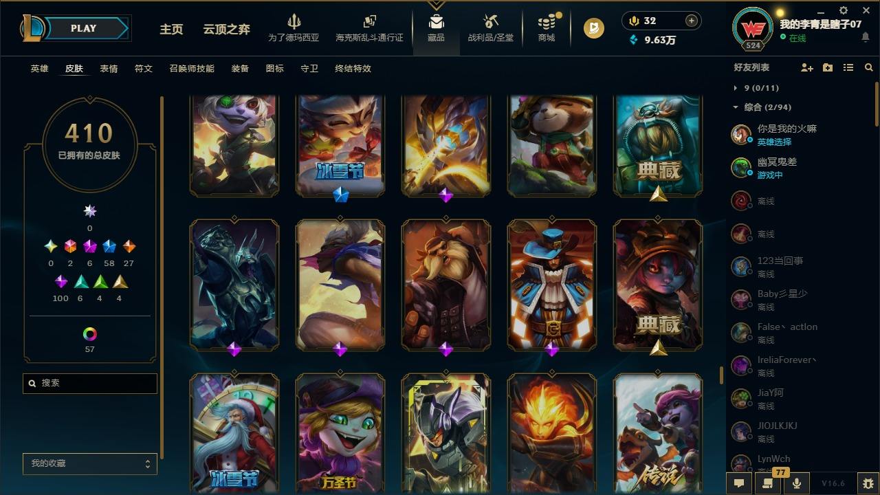 【681252】[18753506]2终极 6神话 59限定 29传说 102史诗 410皮肤 66炫彩 172英雄 可二次 可修改实名 【至臻】至臻 K/DA 卡莎 【海克斯】海克斯 雷克顿 【赛季限定皮】胜利行刑官 德莱文,胜利凤凰 艾尼维亚,胜利女神-菲奥娜,胜利剑圣 易,胜利女神 娑娜,胜利巨口 克格莫,胜利之王 泰达米尔,胜利女神 奥莉安娜,胜利之剑 亚托克斯,胜利枪神 卢锡安,胜利