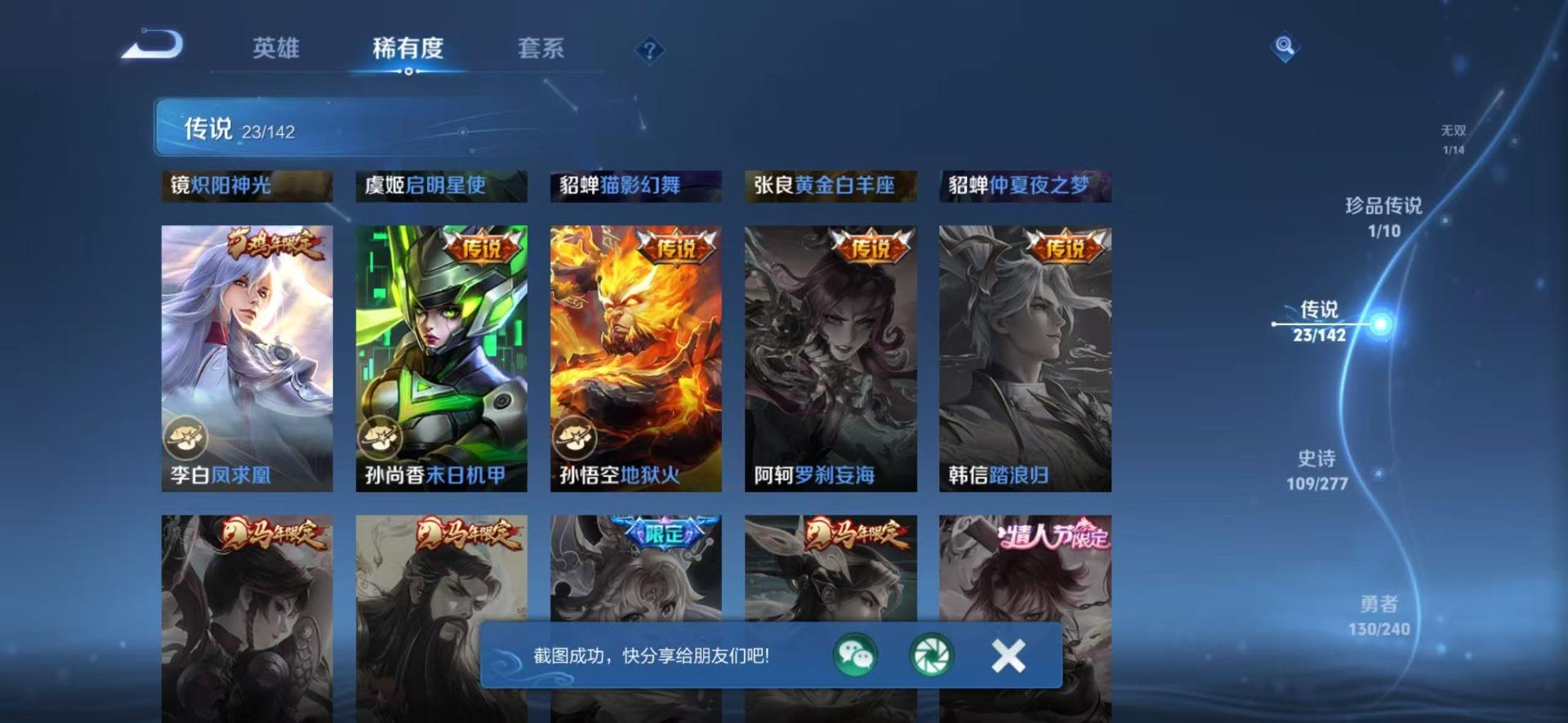 【700477】【可二次】【微信(苹果)】夺宝奇兵 星界游侠 乱世虎臣 晚萤 花朝如约 猎兽之王 偶像歌手 原初探秘者 星夜王子 星界战将 黄金白羊座 沙漠行僧 暗夜猫娘 紫霞仙子 挚爱花嫁 电玩·兔顽号 御霄 遇见神鹿 凤求凰 朔风刀 仲夏夜之梦 音你心动 万华元夜 茶境仙 地狱火 高山流水 御銮 特工魅影 女仆咖啡 疑决卦 醍醐杖 青蛇 魔法小厨娘 古海寻踪 摇滚巨星 小动物乐团 赵云 白昼