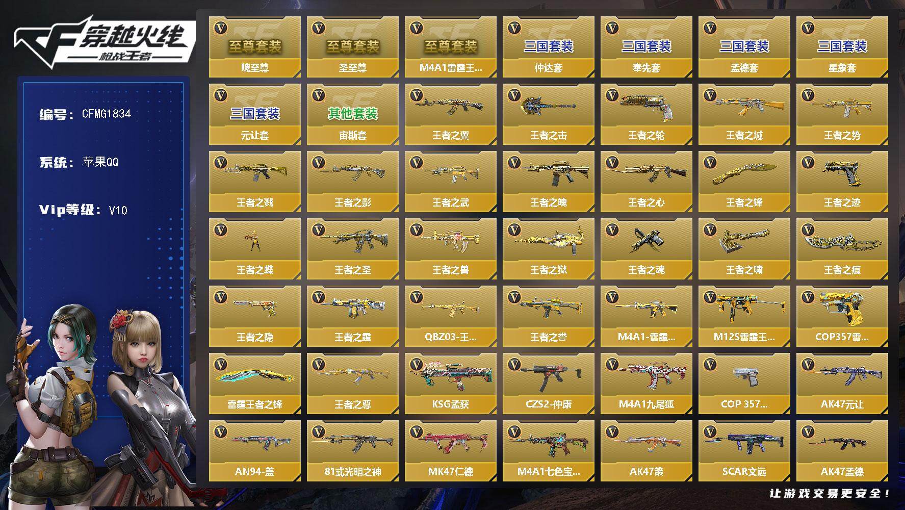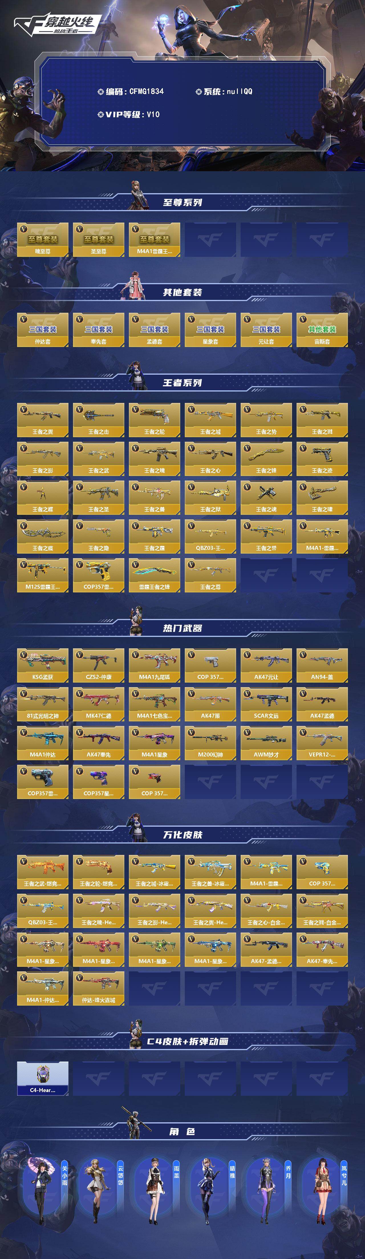 【700897】【CFMG1834】VIP10/199V/魄至尊/M4A1雷霆王者至尊/圣至尊/宙斯套/孟德套/仲达套/星象套/奉先套/元让套/王者之翼/王者之击/王者之轮/王者之城/王者之势/王者之戮/王者之影/王者之武/王者之魄/王者之心/王者之锋/王者之迹/王者之蝶/王者之圣/王者之兽/王者之狱/王者之魂/王者之啸/王者之痕/王者之隐/王者之霆/QBZ03-王者蔷薇/王者之誉/M4A1-雷
