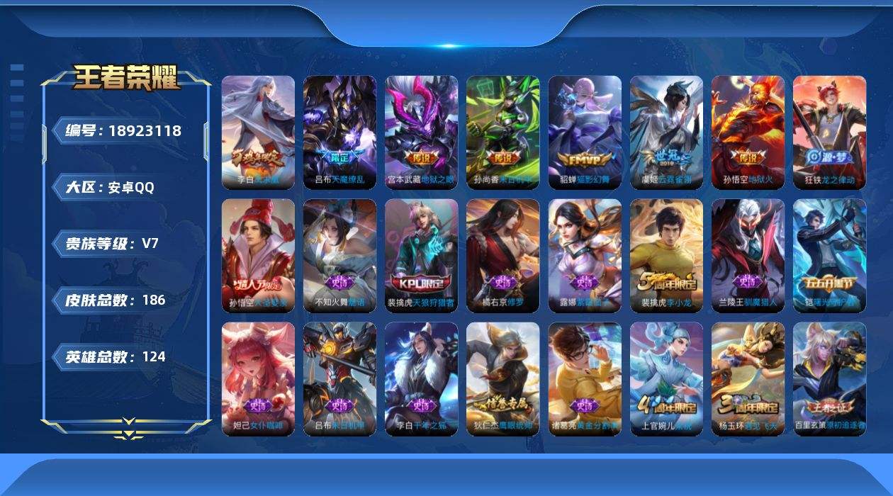 游戏区服:王者荣耀 / 安卓系统 / QQ账号