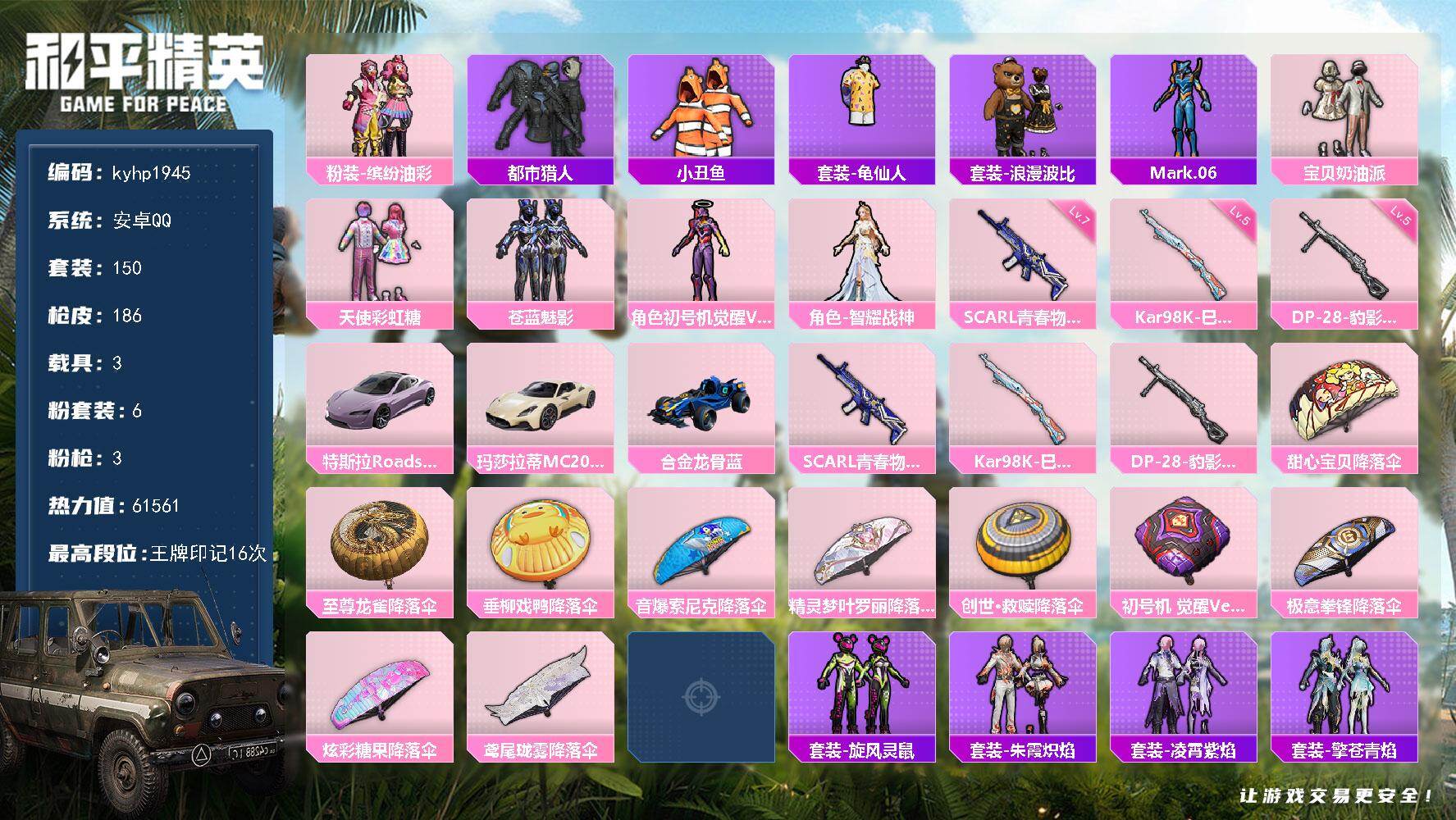 游戏区服:和平精英 / 安卓系统 / QQ账号