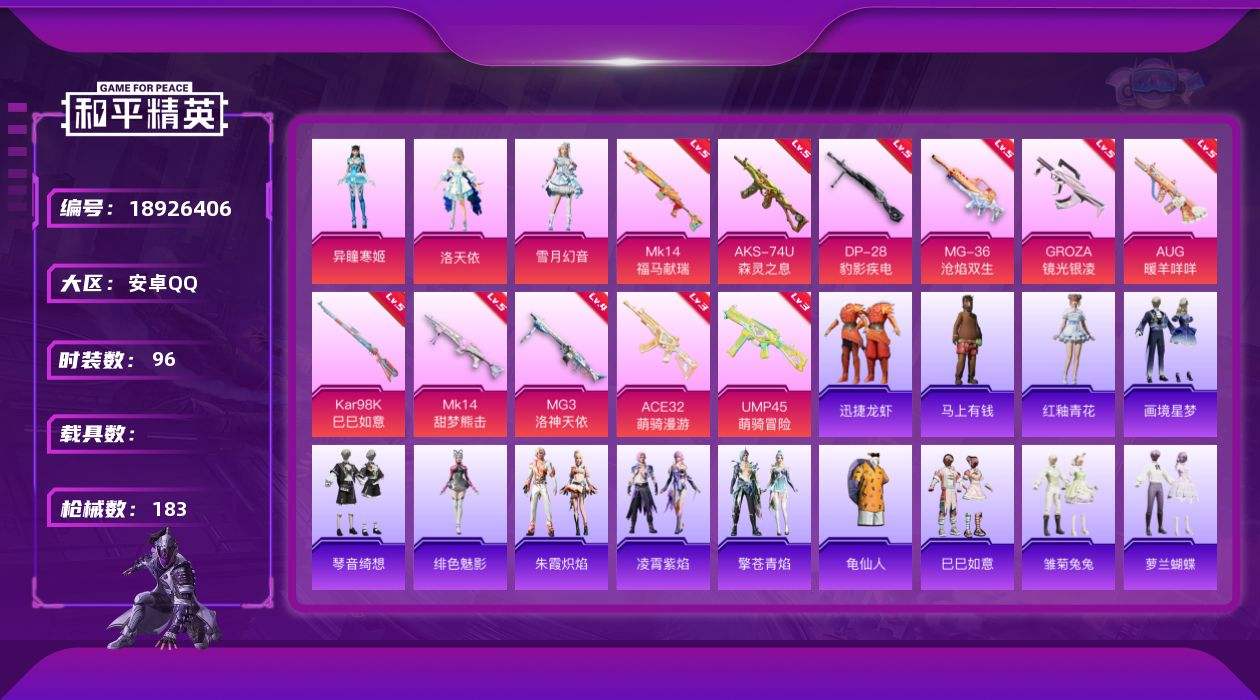 游戏区服:和平精英 / 安卓系统 / QQ账号