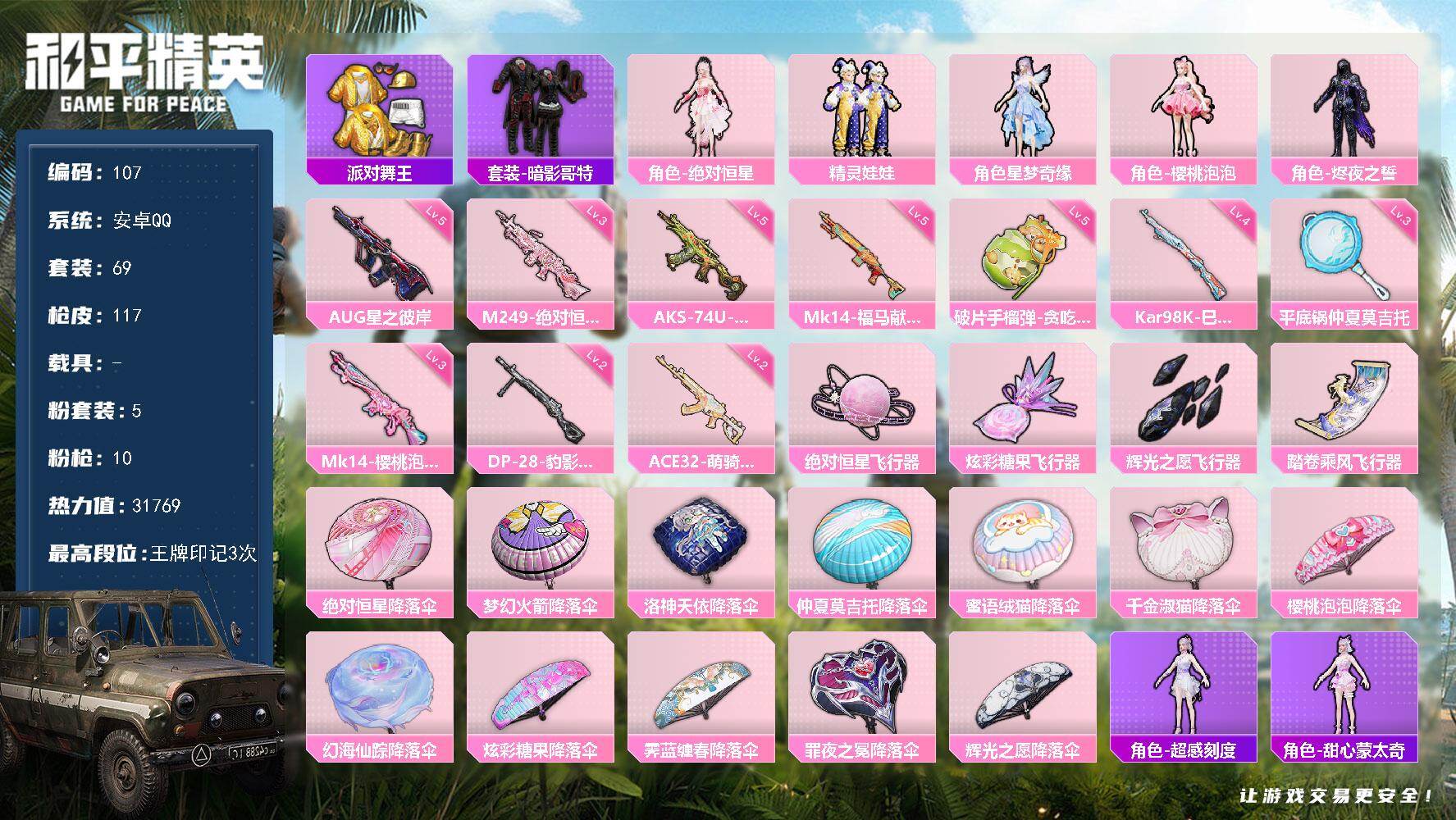 【701860】【可二次】【安卓QQ】精灵娃娃 漫步者 派对舞王 AKM影袭 AUG-星之彼岸 暗影哥特