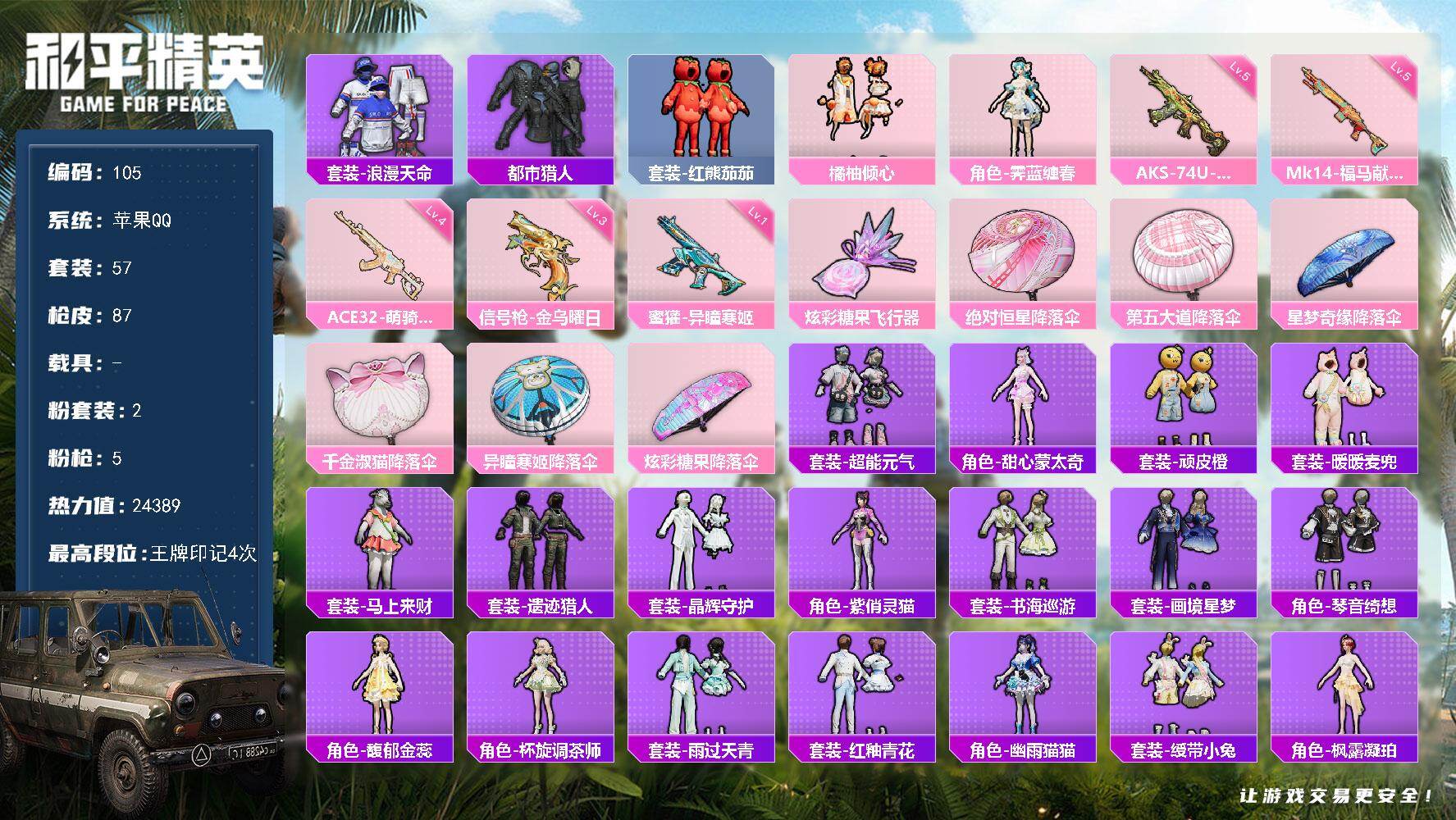 游戏区服:和平精英 / 苹果系统 / QQ帐号