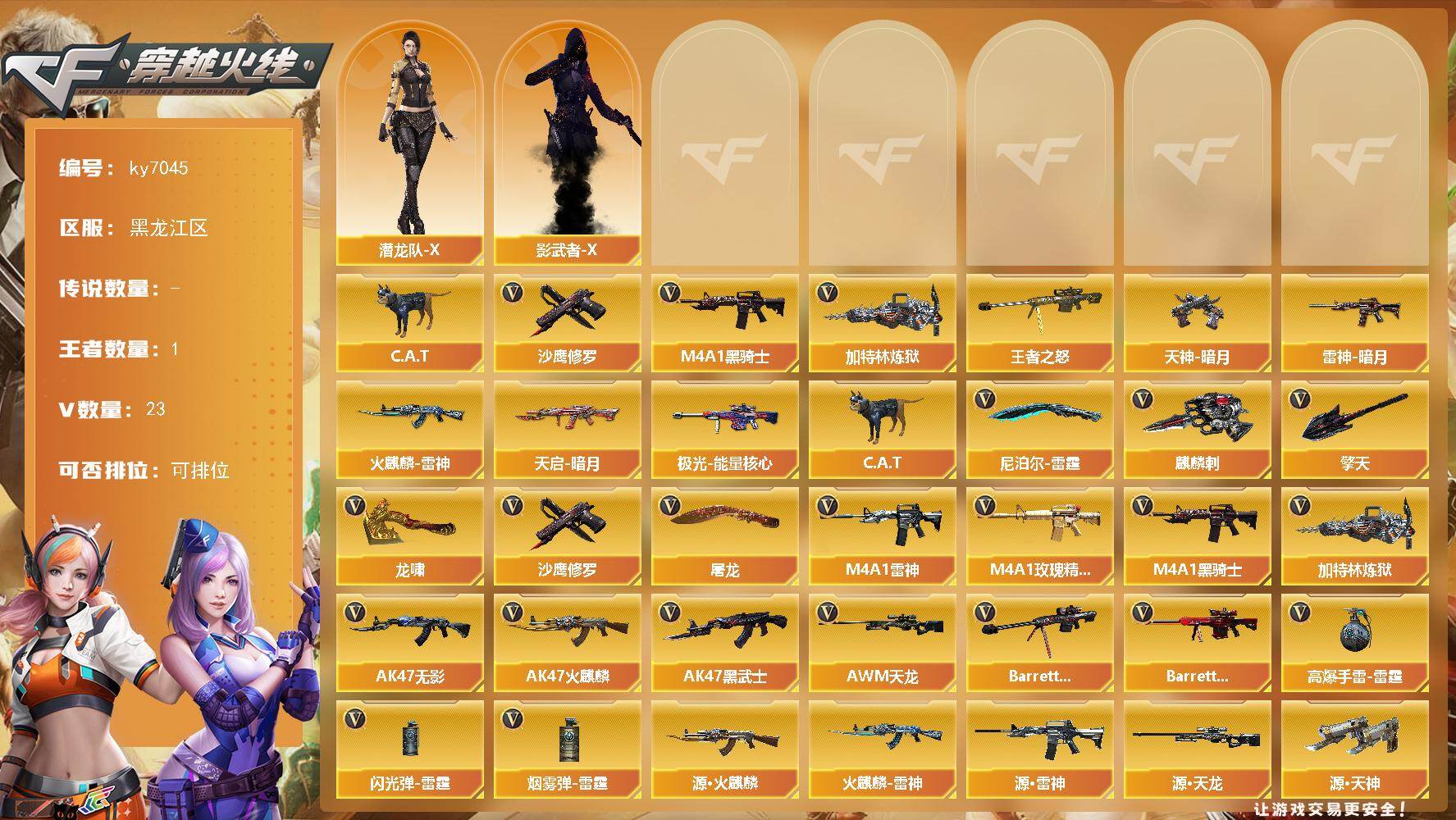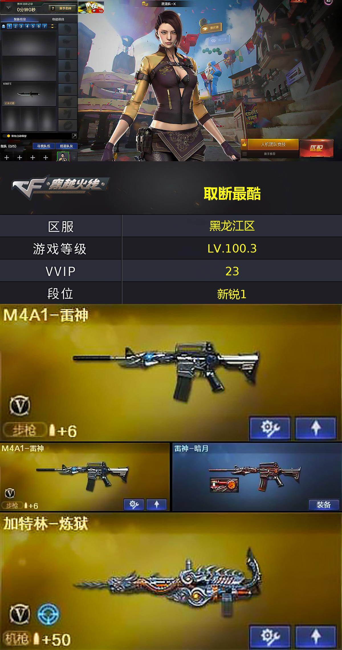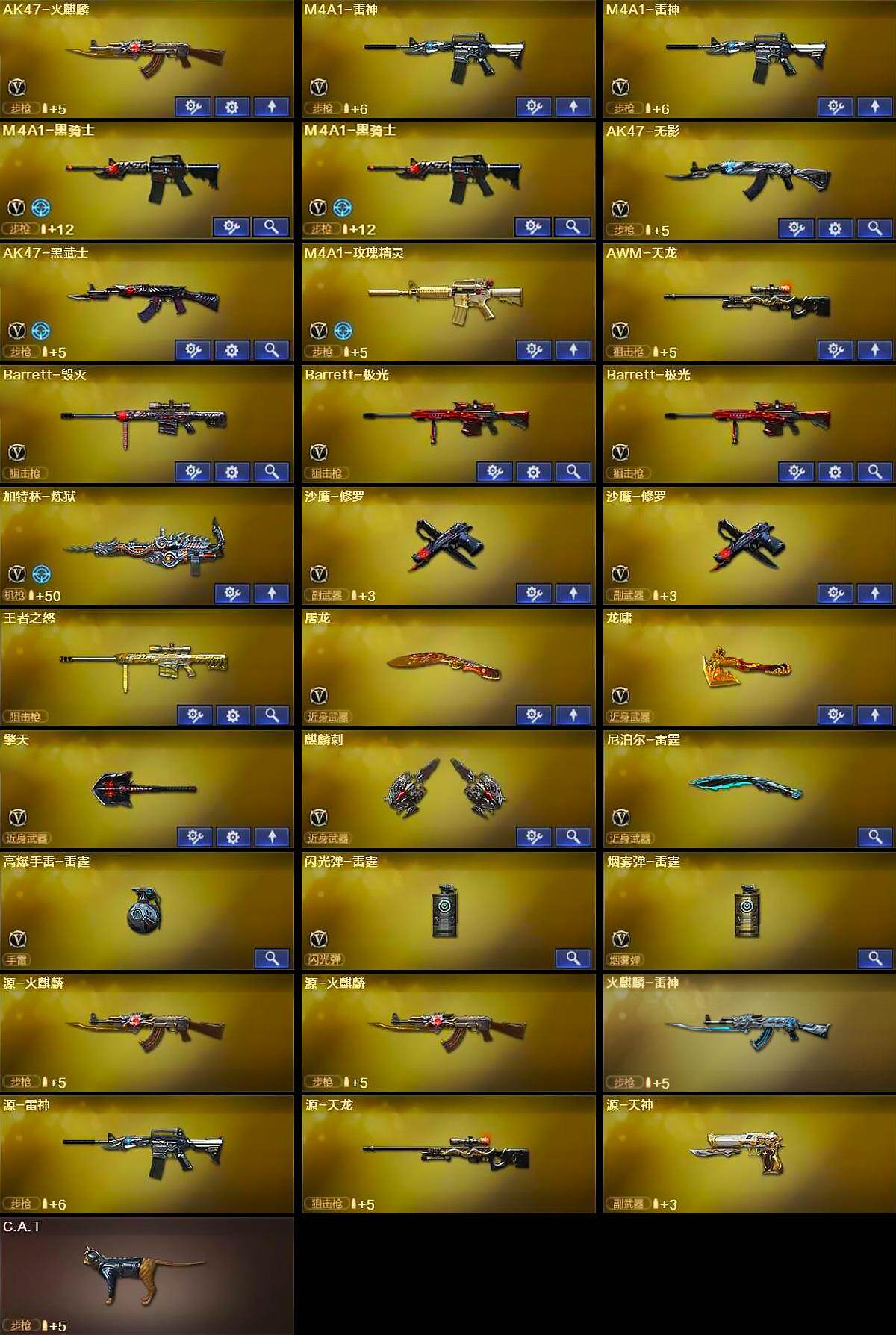 【701870】【701870】[18928060]黑龙江区-23V-1王者武器数-0炫金武器数【热门武器】:C.A.T,M4A1-黑骑士*2,加特林-炼狱,